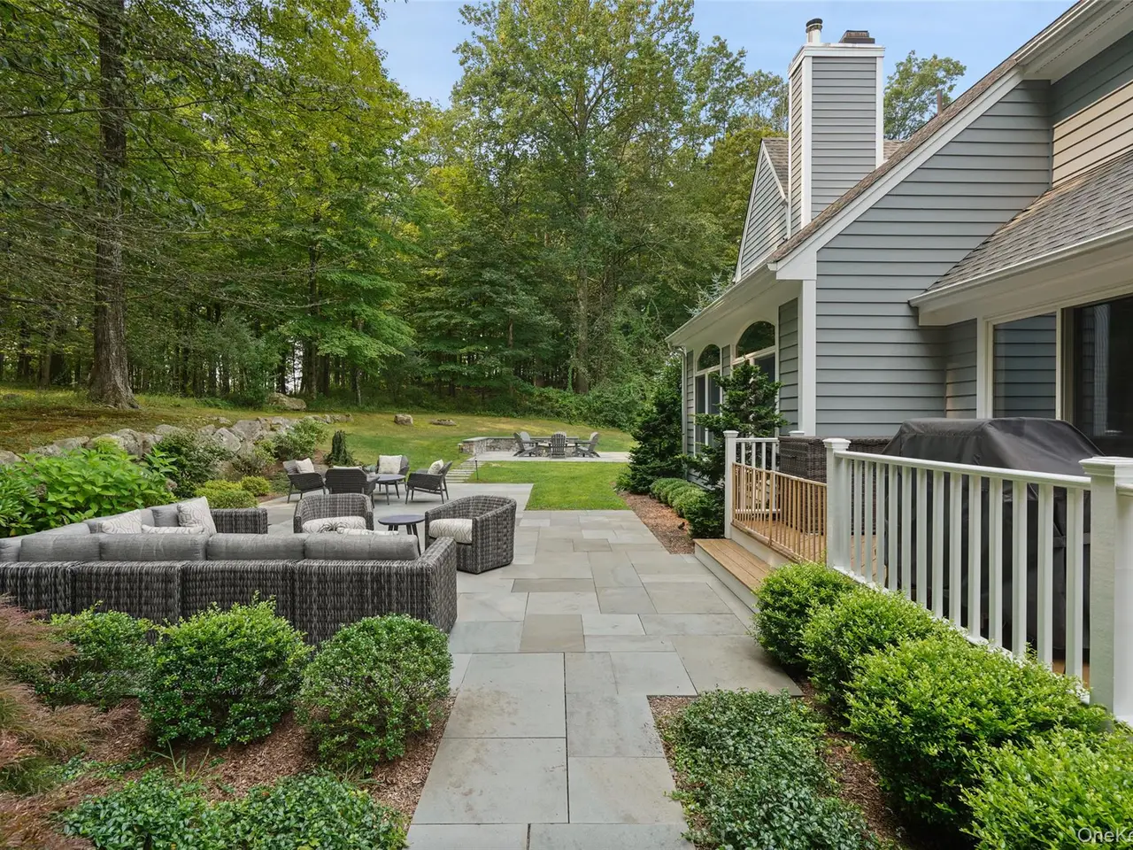 Tucked away on a peaceful cul-de-sac, a long, tree-lined driveway sets the tone as you approach this 4-bedroom, 3.5-bath colonial set on 4 private acres in the award-winning Katonah-Lewisboro School District. This home offers a welcoming front porch, a 3-car garage, and an ideal blend of space, comfort, and privacy. The main level features a large kitchen opening to an expansive family room with open-concept flow, perfect for everyday living and entertaining. Upstairs, the oversized primary suite includes generous closets and renovated primary bath. Three additional bedrooms each feature direct bathroom access, providing comfort, convenience, and privacy. The lower level offers an unfinished basement with potential for customization, whether for recreation, fitness, or home office space. Outdoor living includes a spacious deck and recently completed patio with fire pit and sitting area, all surrounded by natural privacy. Don’t miss this exceptional opportunity to make this beautiful property your next home - schedule your private showing today.