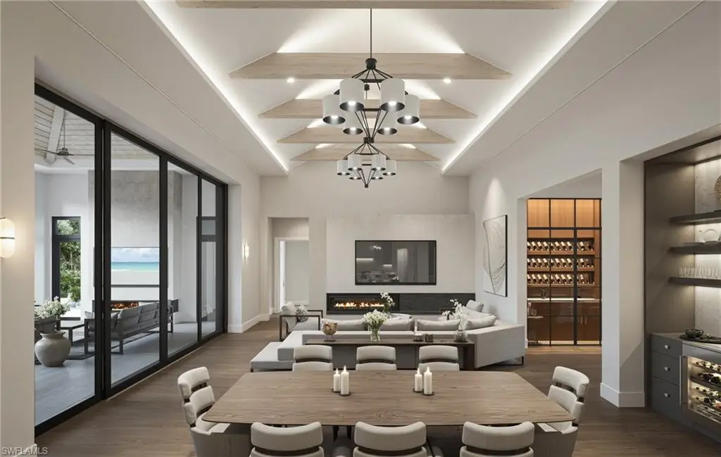 On an oversized half-acre homesite in the coveted Coquina Sands neighborhood, this single-story estate offers over 5,300 square feet of sophisticated living. Crafted by Falcon Design, built by Blue Horizon Construction, and brought to life by the vision of W Design, the home embodies timeless luxury with modern livability. The floorplan features 5 bedrooms plus a den, seamlessly blending open living with private retreats. A showcase designer kitchen anchors the interior, complemented by a full service kitchen for effortless entertaining. Expansive gathering spaces open to a large outdoor living area, designed for hosting friends and family year-round. A massive side yard provides unmatched flexibilityùwhether envisioned as a resort-style lush garden sanctuary or a putting green. All just a short stroll from the upcoming Four Seasons Resort, placing world-class amenities at your doorstep. This residence offers not only impeccable design and craftsmanship, but also a rare lifestyle opportunity in one of Naples' most sought-after neighborhoods.