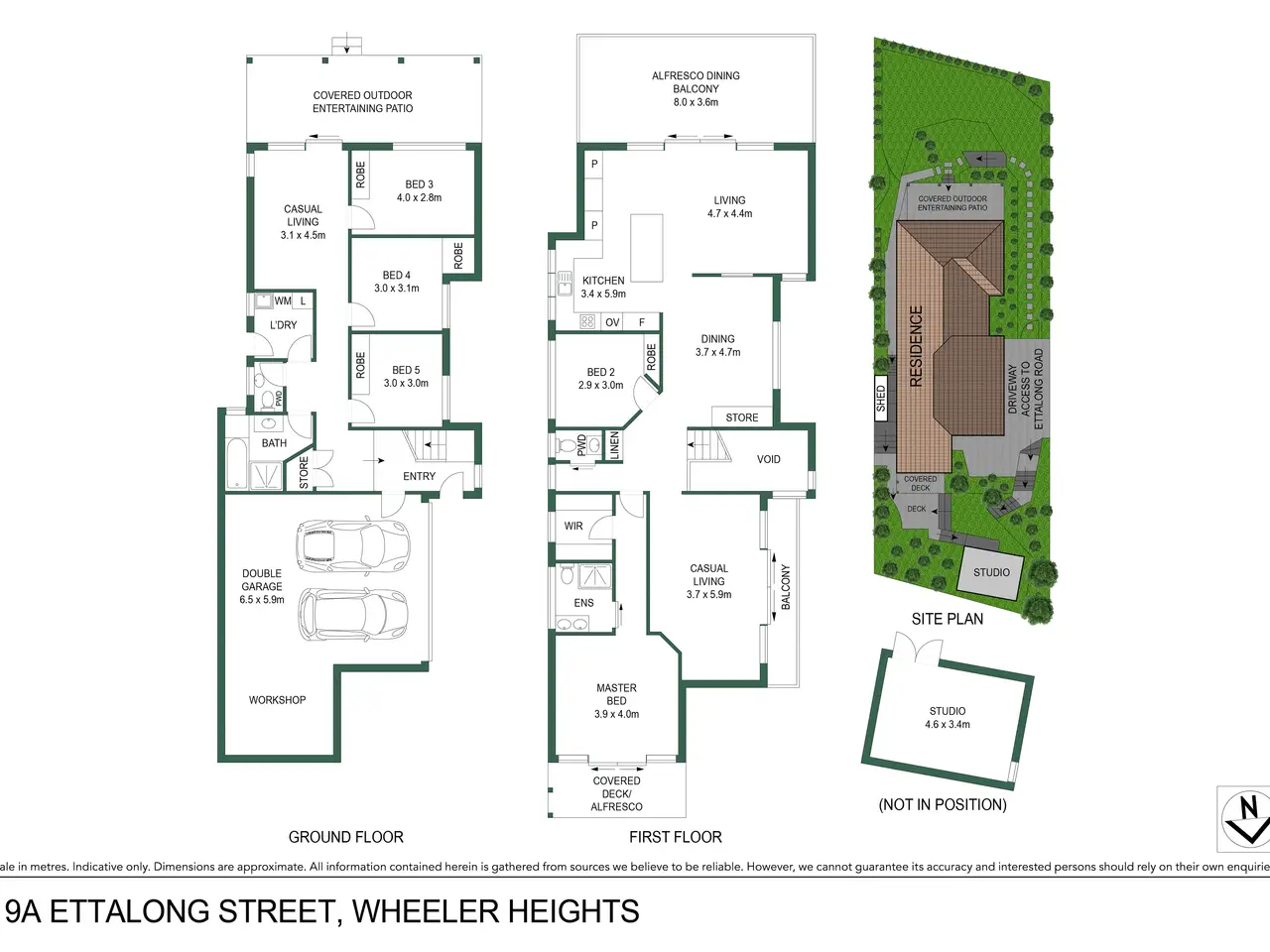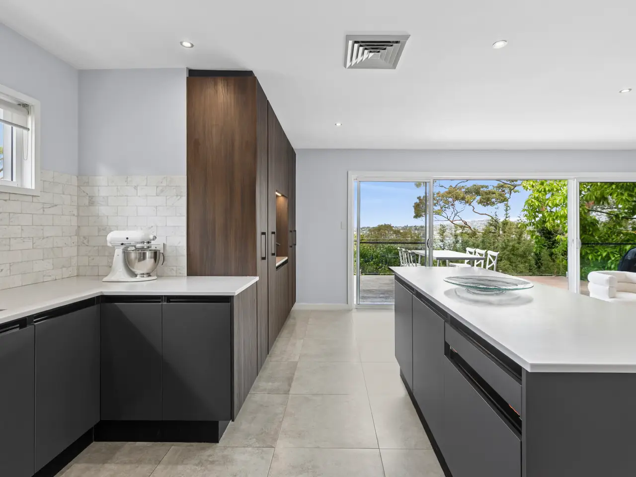 Peacefully positioned down a private driveway, this immaculate family home offers modern comfort and effortless connection to its leafy surrounds. Designed across two spacious levels, it delivers flexibility for family living, with multiple indoor and outdoor spaces that embrace light, air and tranquil outlooks. Upstairs, expansive living and dining areas open to a wide deck capturing open district and ocean views with city glimpses, while the stone-finished kitchen with Miele appliances anchors the home with style and functionality. The master bedroom enjoys an elegant ensuite, walk-in robe and a private garden retreat, joined by a detached studio offering ideal space for a home office or teenagers. Downstairs, a third living zone and three generous bedrooms extend the home's versatility, opening to lush gardens and an entertaining patio. Complete with a double lock-up garage, this is a serene family haven with space for every generation, in a tranquil location that offers easy access to Narrabeen Lake, village shops, quality schools and beaches. - Modern dual-level home quietly placed down a private driveway - Two separate living areas open to alfresco space with long views - Elevated district and ocean glimpses with leafy, open outlooks - Downstairs rumpus opens to covered terrace and landscaped gardens - Detached studio ideal as private home office or teenager's retreat - Premium stone kitchen with Miele appliances and island bench - Corian kitchen bench tops and Carrara marble subway tile splash back - Five bedrooms with built-ins, stylish bathrooms, internal laundry - Main bedroom with walk-in robe, ensuite and private garden retreat - Ducted r/cycle air con upstairs, r/cycle air con unit d/stairs - 14 x solar panels with 5.8kW, battery inverter - Gas bayonets downstairs living and upstairs balcony, plantation shutters - Generously sized lock-up garage with side work space and internal access - 650m to IGA, shops/cafes on Veterans Pde, 1.3km to South Creek Road shops - 450m to public transport, 6.2km to Westfield Warringah Mall - 700m to Wheeler Heights Public School, 2.3km NBSC Cromer Campus - 2.4km to Cromer Golf Club, 2.8km to Pittwater House