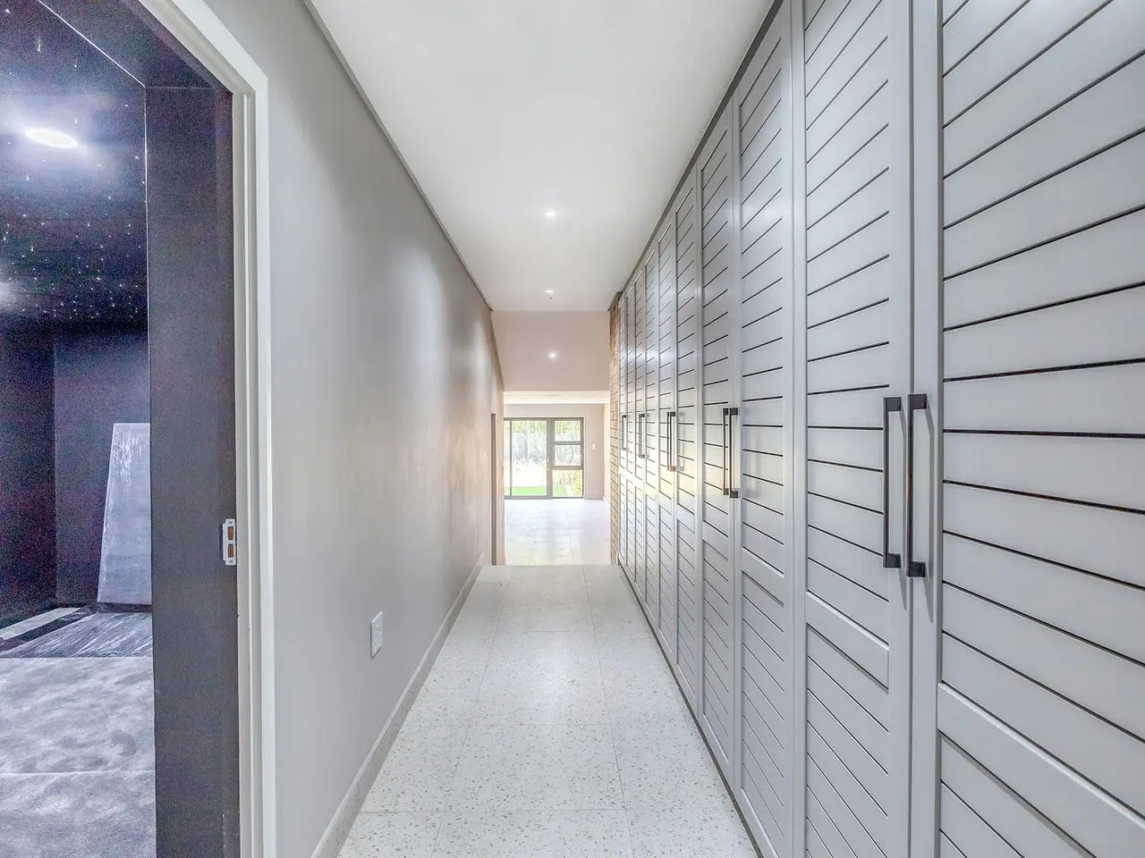 Prestigious Riverfront Residence in Avianto Estate Set along the serene riverfront in the exclusive Avianto Estate, this exceptional 5-bedroom, 6.5-bathroom home epitomises refined family living, offering an unmatched balance of elegance, comfort, and lifestyle. The gourmet kitchen, complete with a central island, gas hob, walk-in pantry, and separate laundry, forms the heart of the home. Flowing entertainment spaces include a formal lounge, dining room, and family room, seamlessly extending to two covered patios with built-in braais - perfect for hosting with style against the backdrop of uninterrupted river views. A guest cloakroom and a private downstairs suite with its own bathroom provide convenience and versatility. Upstairs, a pyjama lounge and dedicated study enhance family living, while four luxurious en-suite bedrooms ensure space and privacy. Designed for leisure and wellness, the home also features a private cinema and fully equipped gym. Additional features include three automated garages, staff accommodation, solar panels with inverter backup, and high-speed fibre connectivity. Residents of Avianto Estate enjoy access to world-class amenities, including the estate clubhouse, state-of-the-art MiFitness gym, and the scenic Syringa Park. The estate also offers unrivalled security, ensuring peace of mind, while its prime location provides effortless access to Lanseria International Airport and the N14, connecting you seamlessly to Sandton, Pretoria, and beyond. This is more than a home - it is an address of distinction.