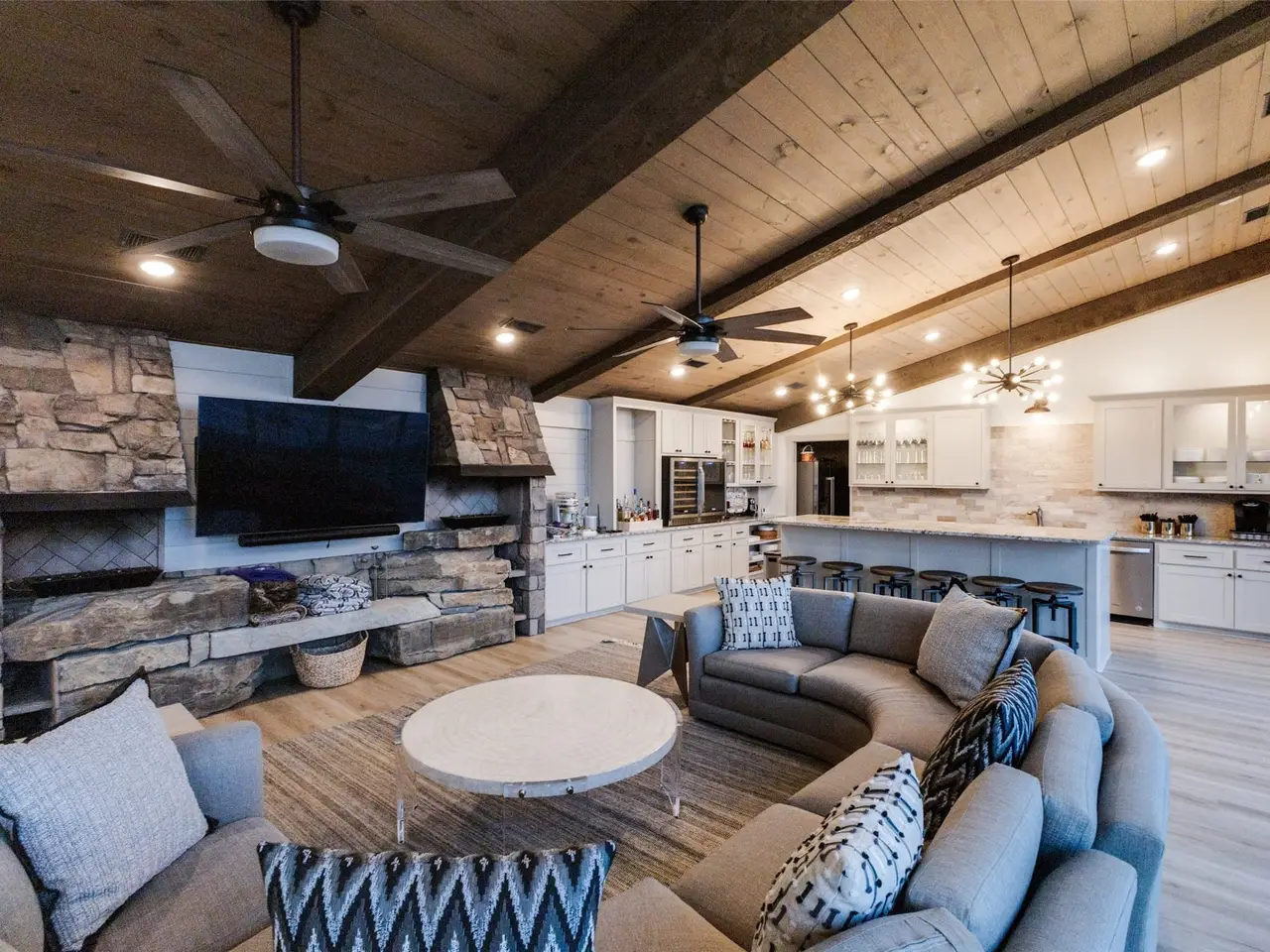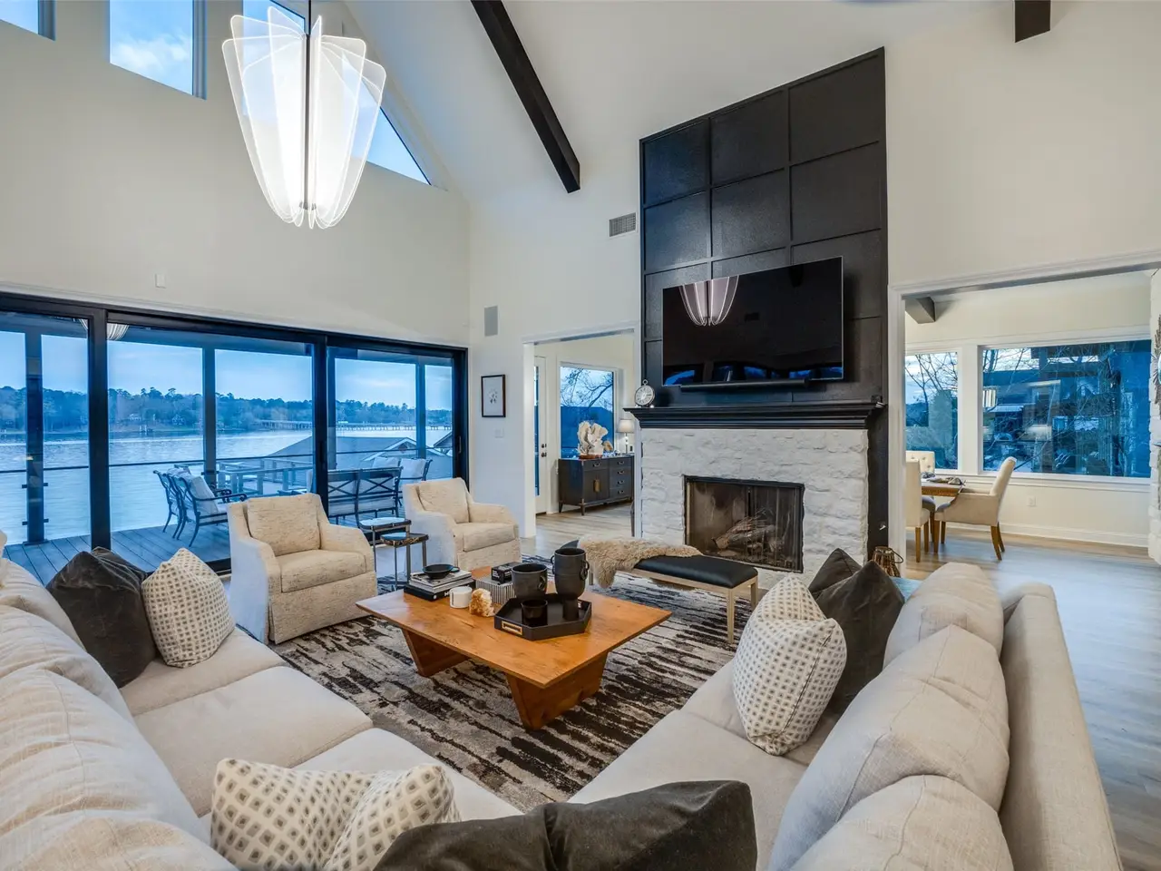 STUNNING & BEAUTIFULLY UPDATED multi-generational property HAS IT ALL & is on 1 acre of gated lakefront accommodating 20+ family & friends! Over 6400 sq ft of living space includes Main House (3602), Pool House-Great Room (1077), 2 Story Guest Carriage House (1236) & Guest Room over garage (499)! Main house has gorgeous kitchen and living room with lake view, 3 bedrooms, game room, loft & wrap around porch! Amazing pool house with wall of windows has full kitchen, plus bath & is perfect for entertaining & opens to amazing pool & outdoor fireplace! 2 story Carriage House has kitchenette, living, full bath & bedroom on first floor. Second floor offers king bedroom, two sets of full sized built in bunk beds, full bath, & beautiful cathedral ceiling & windows with lake view! Guest room & bath over 2 car garage! Boat house for 2 boats-2 jet skis has a sitting & sun deck! Minutes to charming restaurants & shops in Mt Vernon & Winnsboro, The Cove Marina & Restaurant. Quick access from I30.