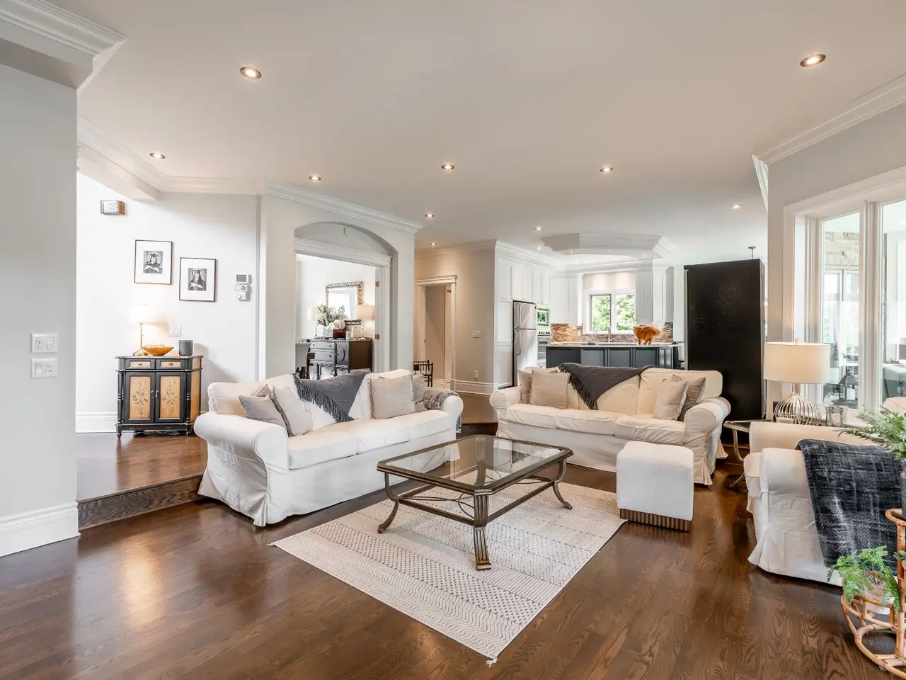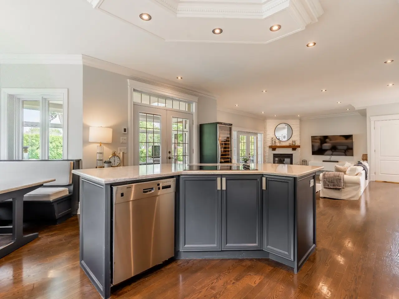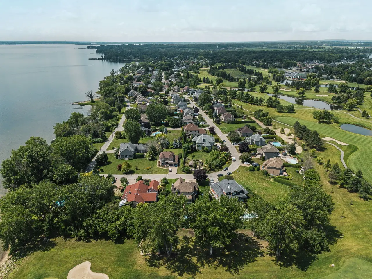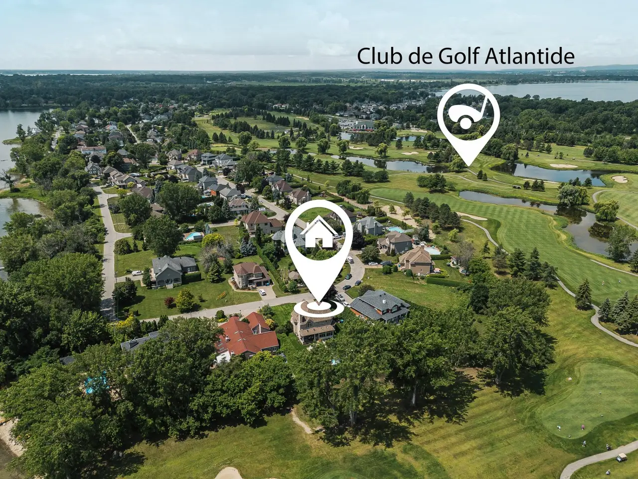 Imposing and timelessly elegant 5-bed residence with the ultimate open floorplan, set on a crescent backing the 7th hole of renowned Atlantide Golf Course,with partial water views and boasting:grand oak staircase & floors,9-18 ft ceilings (1st fl), oversized baseboards/moldings, wood & propane fireplaces, large formal dining room and living room (overlooking the garden),solarium/2nd dining room,custom wood kitchen (quartz) with luxury dinette,spacious primary suite,renovated basement with garage access,oversized double garage (epoxy),a private backyard oasis with fenced salt inground pool,patio,veranda,shed,and municipal boat-launch access.