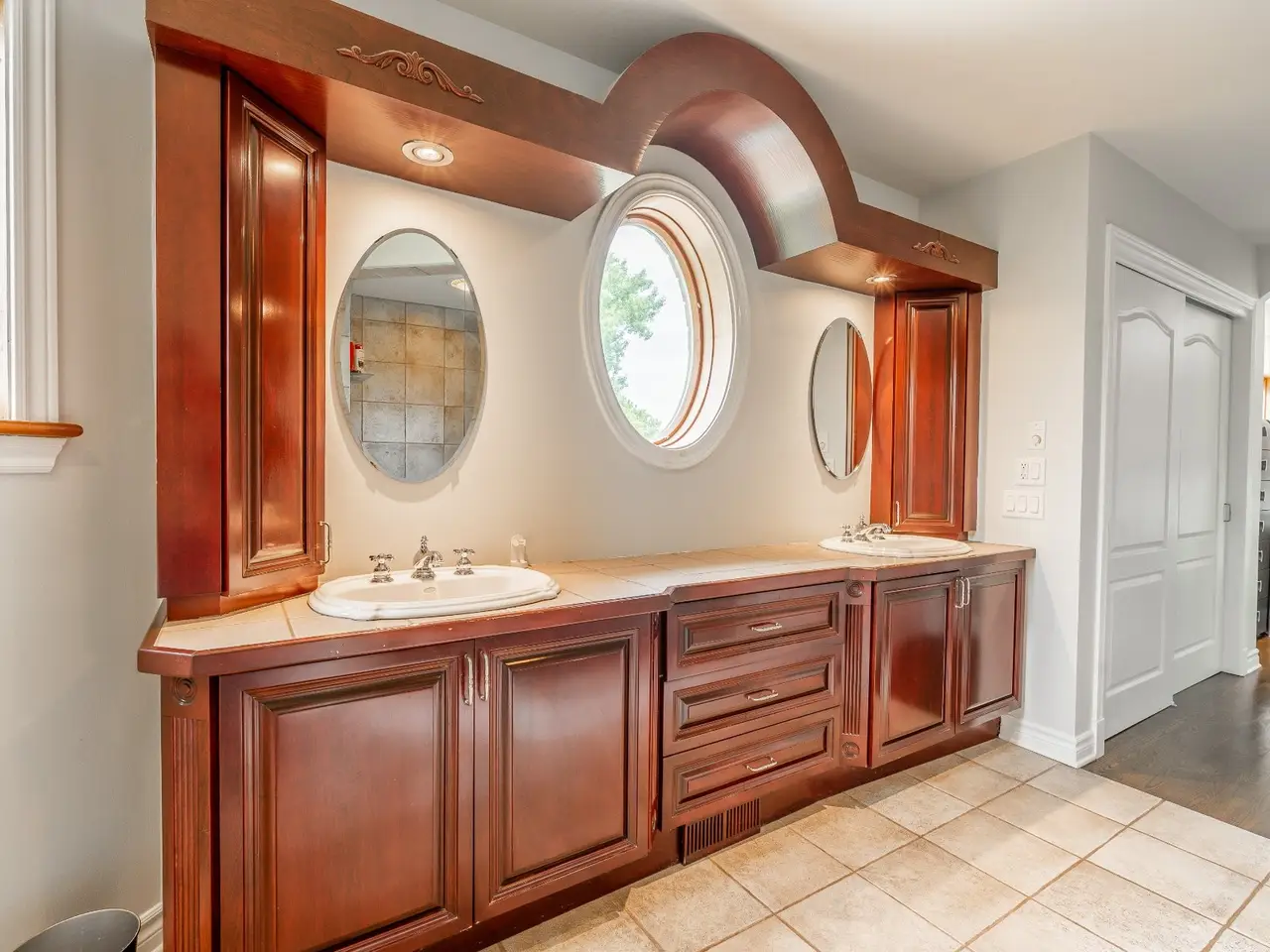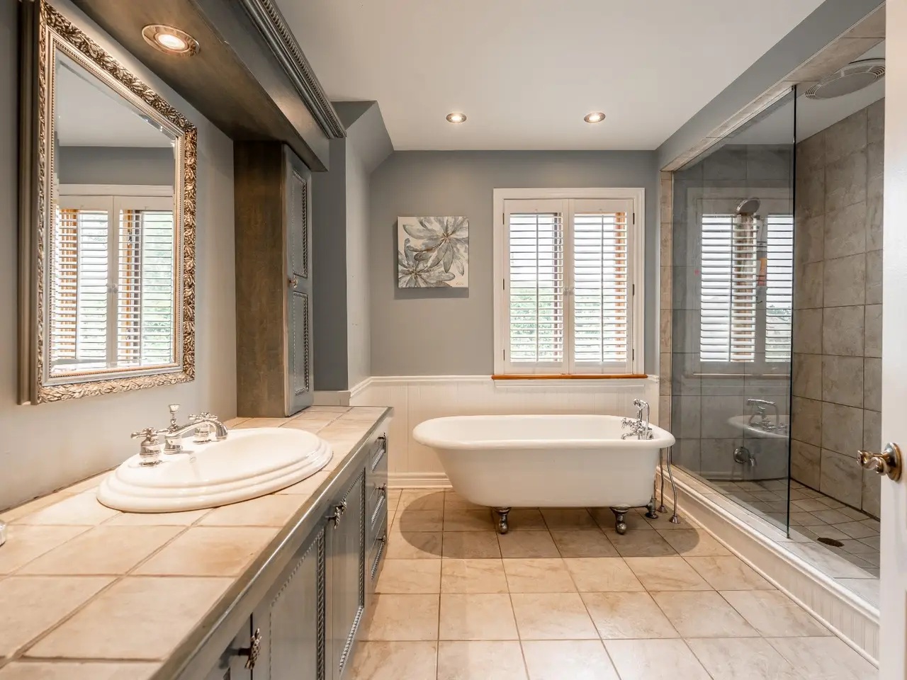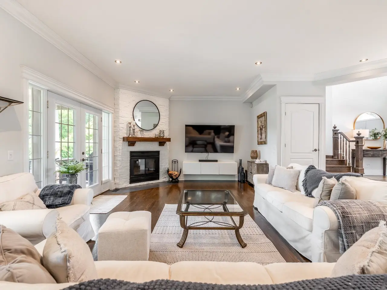 Imposing and timelessly elegant 5-bed residence with the ultimate open floorplan, set on a crescent backing the 7th hole of renowned Atlantide Golf Course,with partial water views and boasting:grand oak staircase & floors,9-18 ft ceilings (1st fl), oversized baseboards/moldings, wood & propane fireplaces, large formal dining room and living room (overlooking the garden),solarium/2nd dining room,custom wood kitchen (quartz) with luxury dinette,spacious primary suite,renovated basement with garage access,oversized double garage (epoxy),a private backyard oasis with fenced salt inground pool,patio,veranda,shed,and municipal boat-launch access.