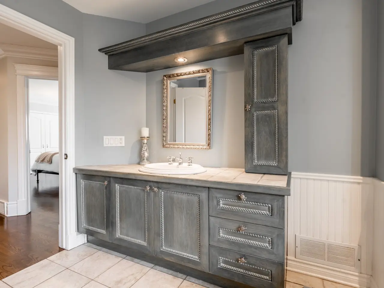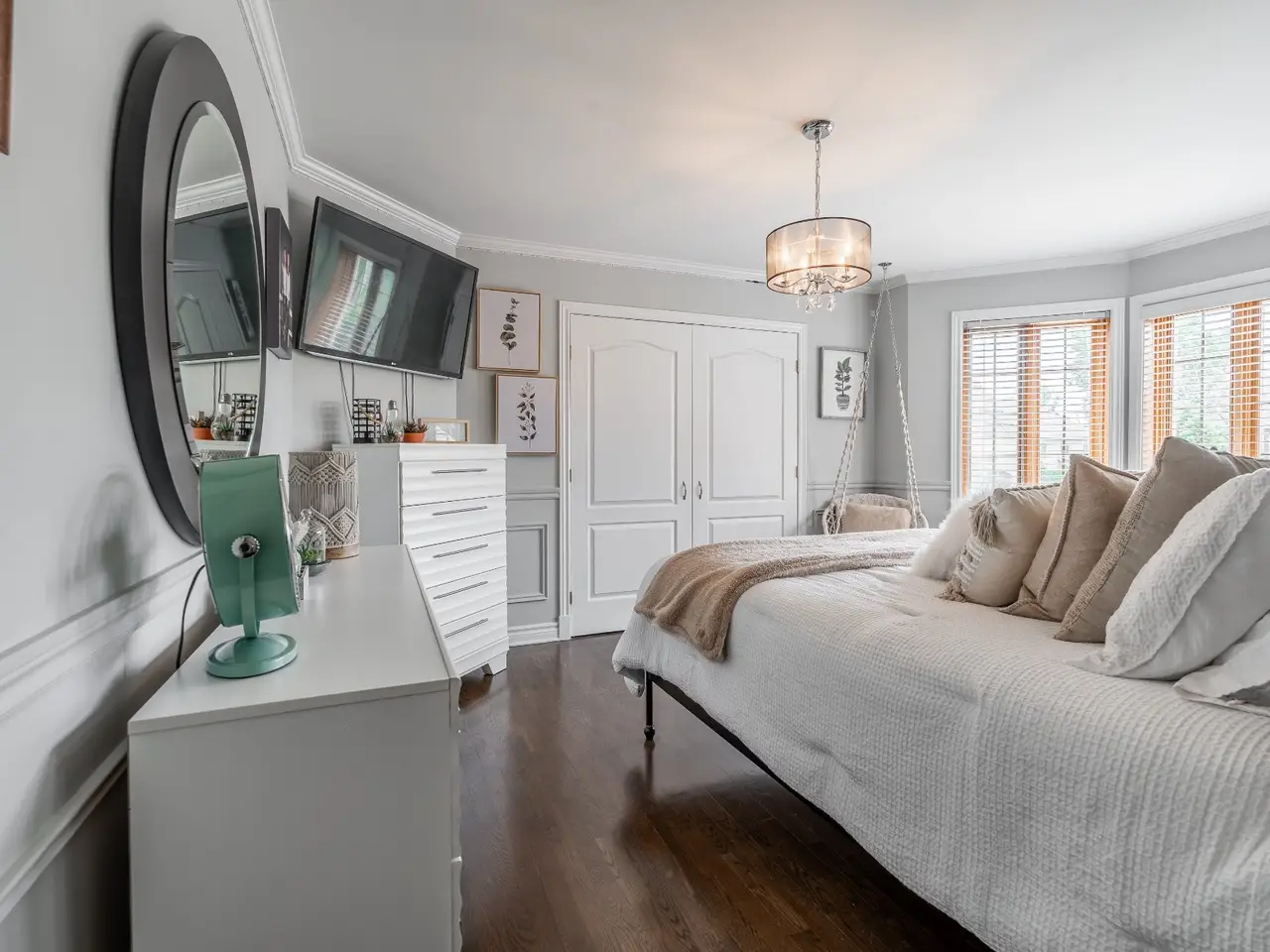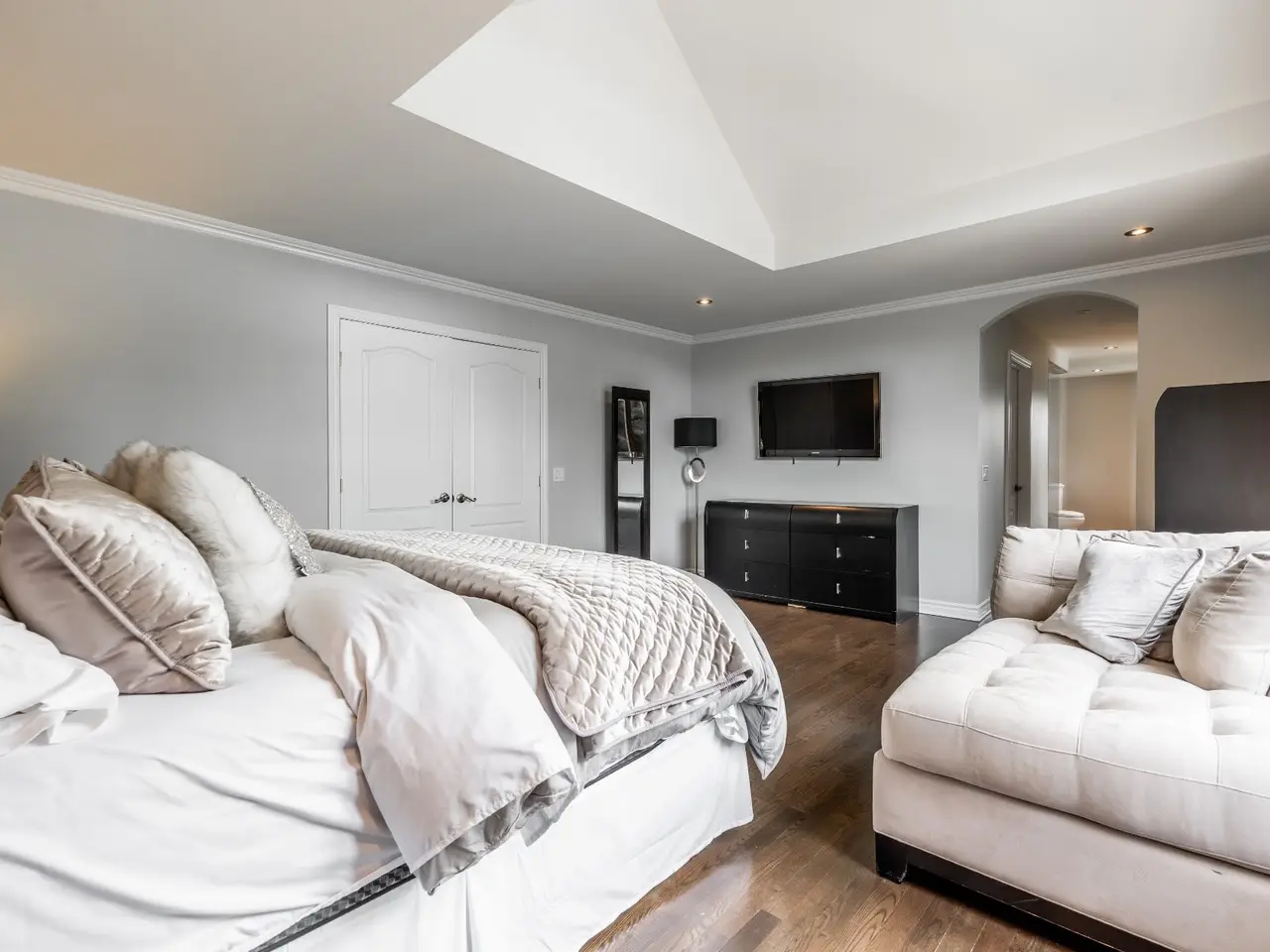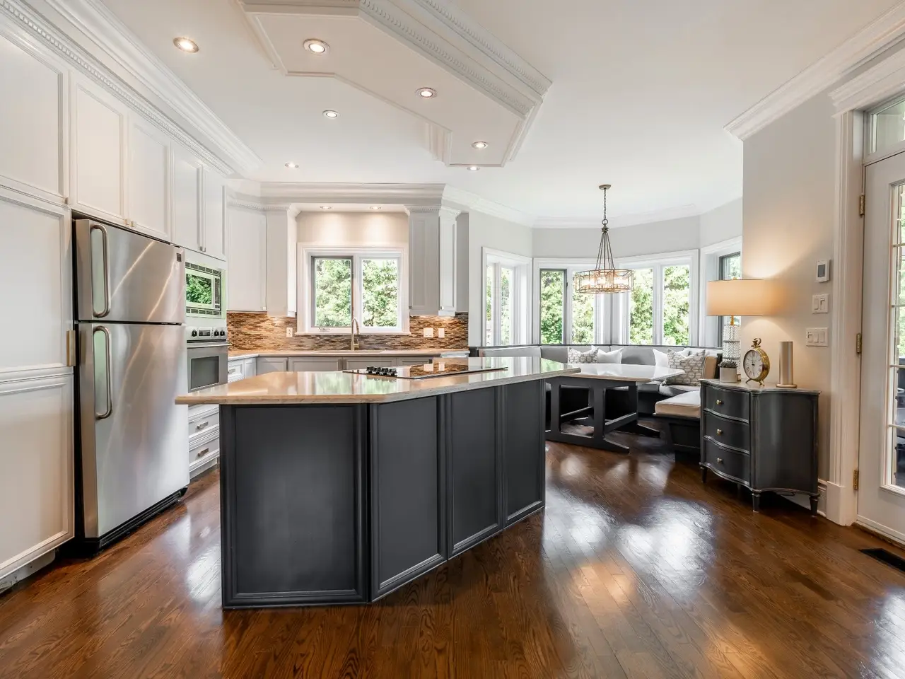 Imposing and timelessly elegant 5-bed residence with the ultimate open floorplan, set on a crescent backing the 7th hole of renowned Atlantide Golf Course,with partial water views and boasting:grand oak staircase & floors,9-18 ft ceilings (1st fl), oversized baseboards/moldings, wood & propane fireplaces, large formal dining room and living room (overlooking the garden),solarium/2nd dining room,custom wood kitchen (quartz) with luxury dinette,spacious primary suite,renovated basement with garage access,oversized double garage (epoxy),a private backyard oasis with fenced salt inground pool,patio,veranda,shed,and municipal boat-launch access.