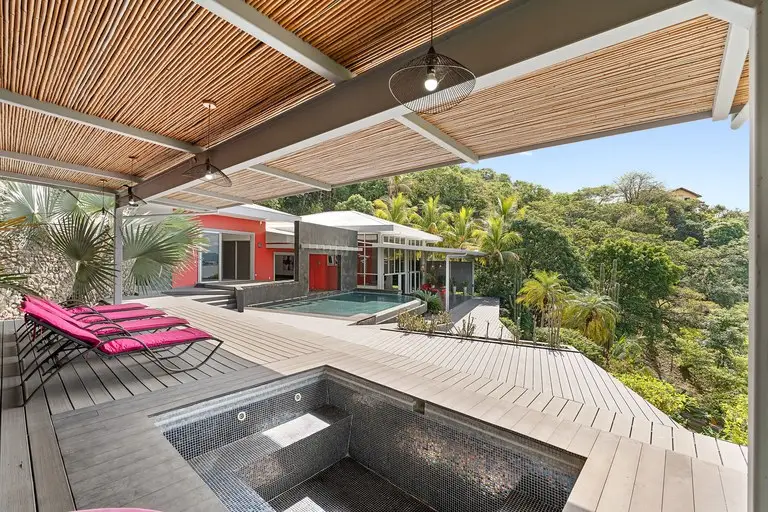 Nestled in a serene hillside overlooking the pristine Playa Prieta, this 4-bedroom, 4-bathroom main house offers an unparalleled blend of comfort, elegance, and breathtaking ocean views. Located less than a 10-minute walk from the beach, this property boasts one of the most coveted locations in the area, where you can hear the waves year-round and enjoy sunsets over the Pacific from your private terrace. The main house features a spacious covered terrace with a built-in jacuzzi, perfect for unwinding while soaking in the spectacular ocean views. The infinity pool is the centerpiece of the outdoor area, offering ample space to relax, sunbathe, and entertain guests. Inside, the master bedroom provides a private retreat with its own en-suite bathroom, complete with dual sinks for added luxury. The home is partially furnished, allowing you the creative freedom to add your personal style. Adding to the appeal is the 2-bedroom, 1-bathroom guest house, which also enjoys stunning ocean views. Ideal for hosting friends, family, or as a potential rental, this space offers comfort and privacy for all. This property provides endless opportunities for expansion, whether you're dreaming of additional guest accommodations, outdoor entertainment areas, or lush gardens. It’s truly a one-of-a-kind opportunity to own a home with some of the best views in the region. With its unbeatable location, you’ll be within close proximity to the area's top beaches, local restaurants, and amenities, while still enjoying the tranquility and natural beauty that make this property so special. Don’t miss the chance to call this spectacular ocean-view home your own!