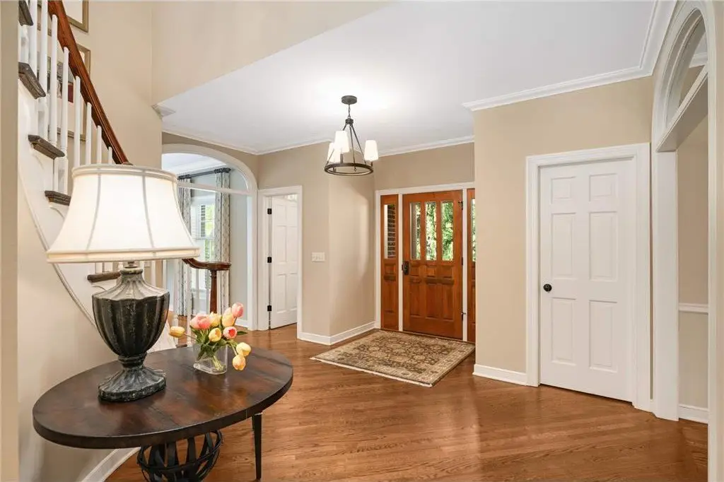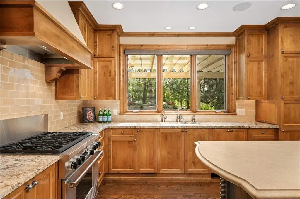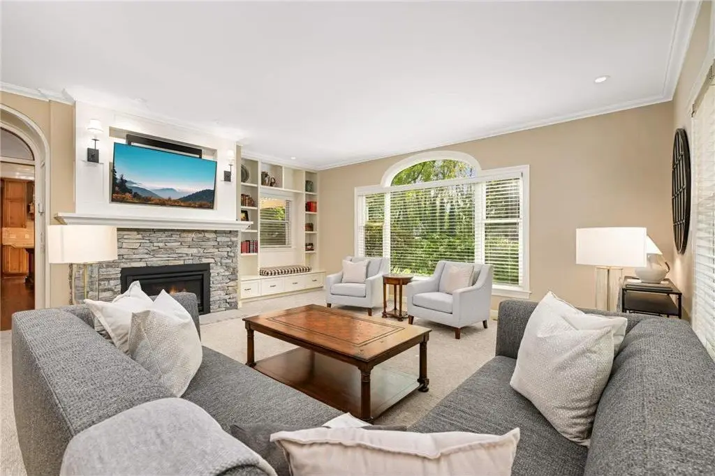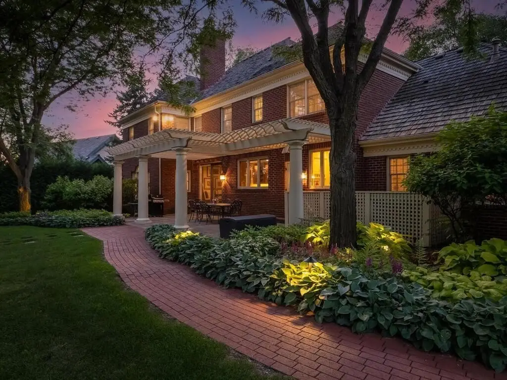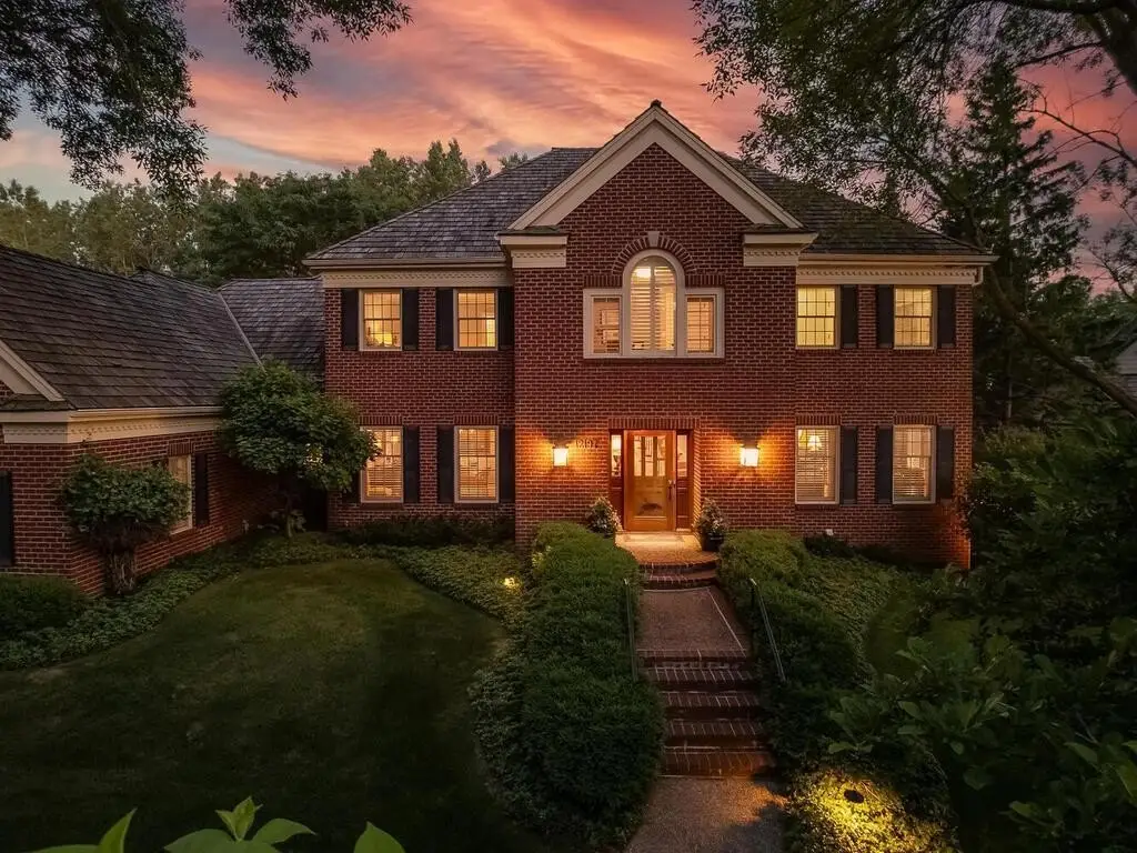 Welcome to this impeccably maintained grand red brick Colonial, offering timeless elegance and modern luxury in a truly spectacular setting. Nestled among lush gardens, this home boasts an inviting in-ground pool, expansive patio space—perfect for entertaining—and a layout designed for both comfort and sophistication. Step inside the grand foyer with its sweeping staircase and discover a spacious open floor plan featuring gleaming hardwood floors, a stunning center island kitchen with high-end finishes, and a cozy stone fireplace anchoring the main living area. A dedicated main-floor office and formal dining room add function and elegance. Upstairs, you’ll find four generously sized bedrooms, including a luxurious primary suite with a walk-in closet and conveniently located laundry. The lower level offers incredible bonus living space with a built-in media center, wet bar, billiards room, exercise area, and abundant storage. This home blends classic Colonial charm with top-tier amenities, making it an exceptional opportunity for refined living and entertaining.