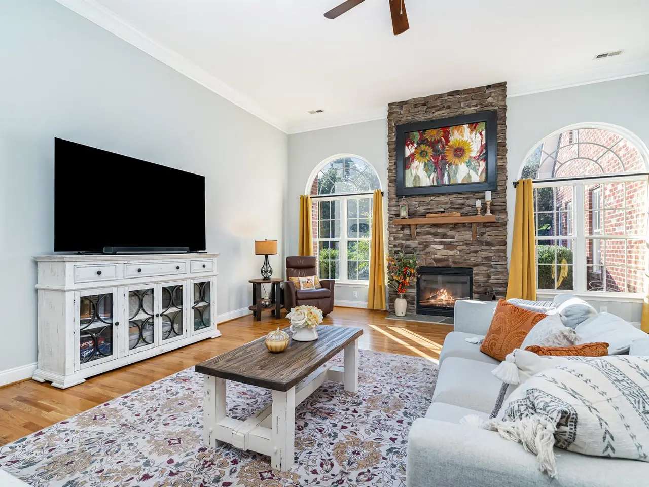 • Stone fireplace