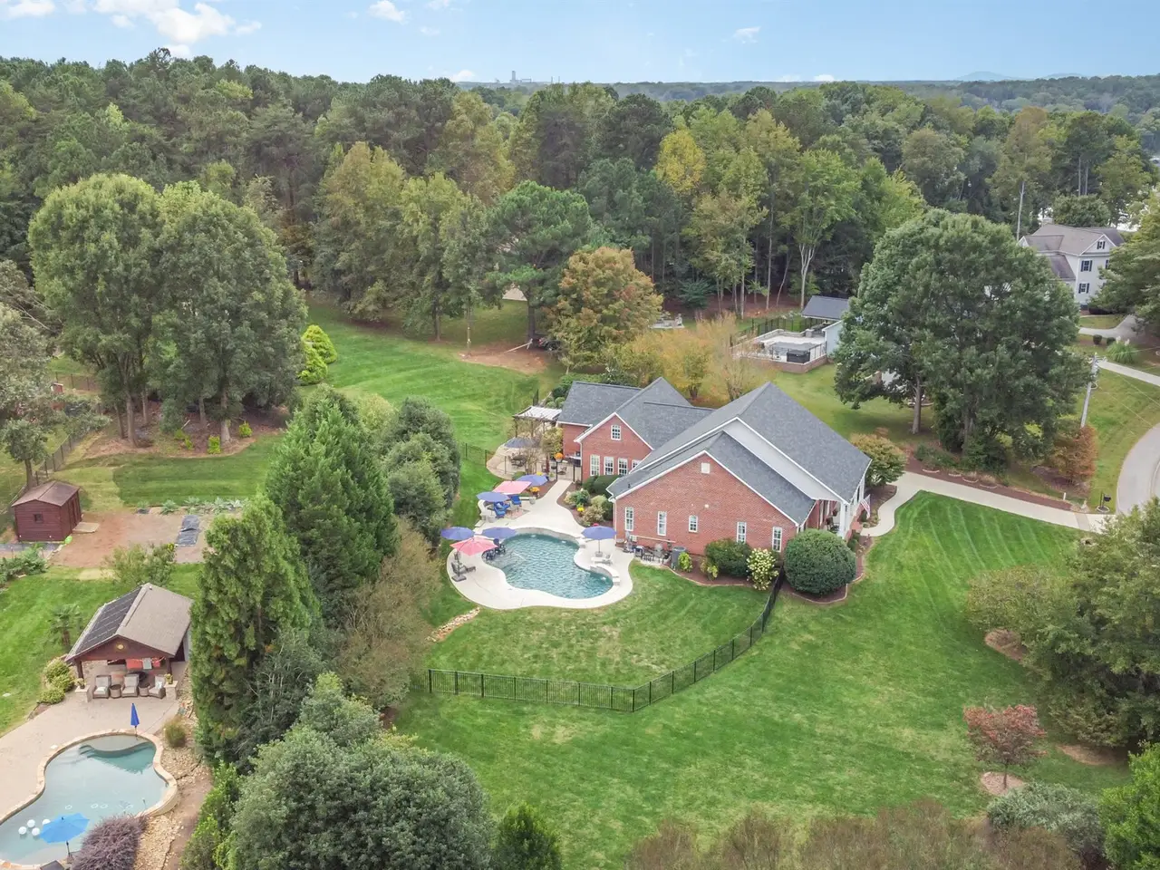Discover your private Lake Norman retreat! This beautiful 4BR/2BA all-brick ranch sits on nearly 1.4 acres with peaceful lake views, a brand-new resort-style pool with waterfalls and lighting, and your own deeded boat slip just moments away. Designed for entertaining, the home features a bright open floor plan, soaring ceilings, floor to ceiling stone fireplace is oversized great room, relax in the sunroom overlooking the pool, and enjoy multiple patios for outdoor living. The kitchen shines with quartz countertops, a gas stove, walk-in pantry, and sunny breakfast nook. The primary suite offers a spa-like bath with dual closets, soaking tub, and oversized shower. Enjoy quiet mornings watching deer roam your garden or evenings by the pool under the soft glow of landscape lighting. With two upstairs bonus rooms for future expansion, this home combines everyday comfort with endless possibilities.Experience lake living at its best space, privacy, and style all in one. Call today to schedule your private showing. Homes like this rarely come available in this sought-after Lake Norman community!