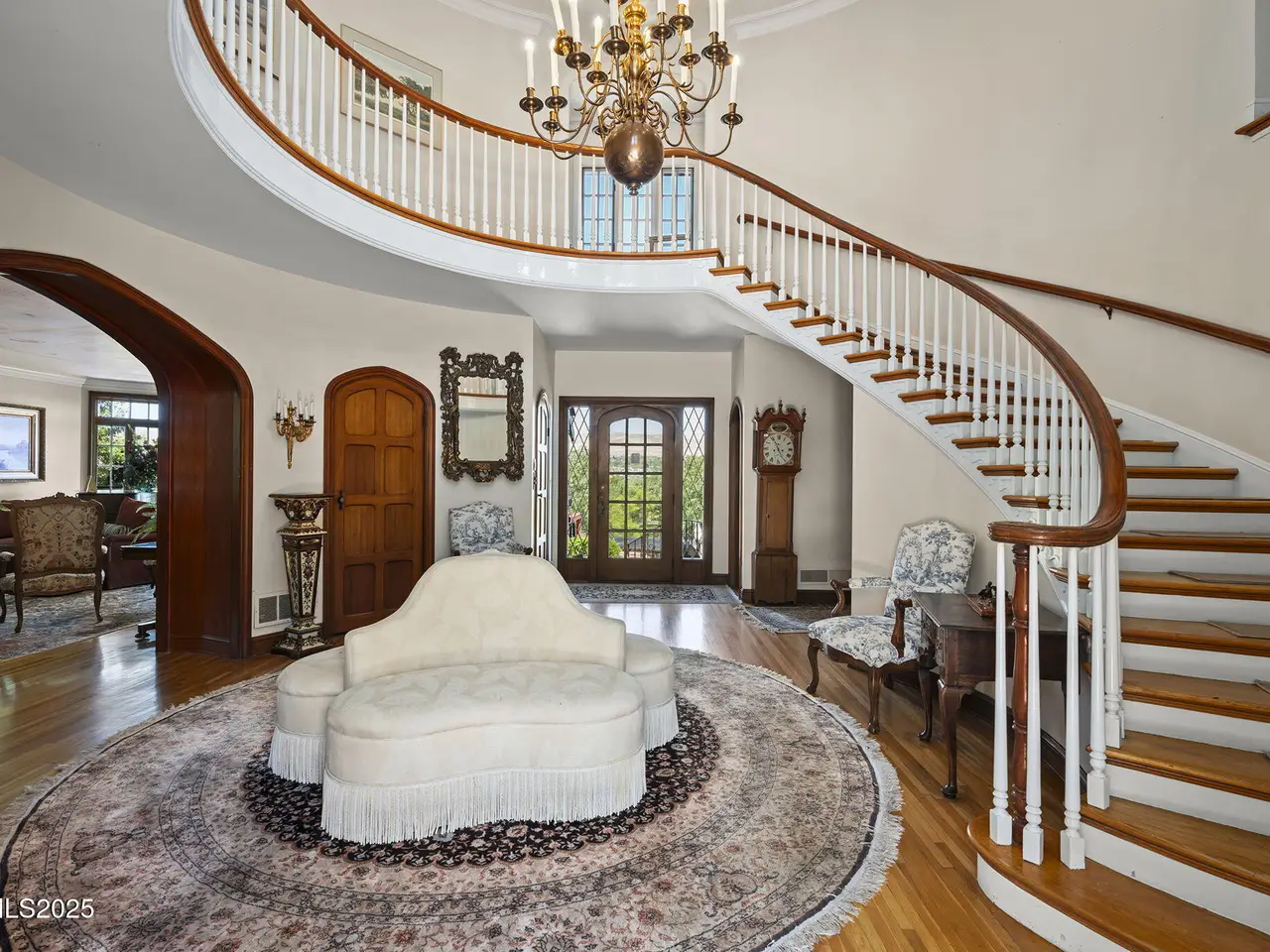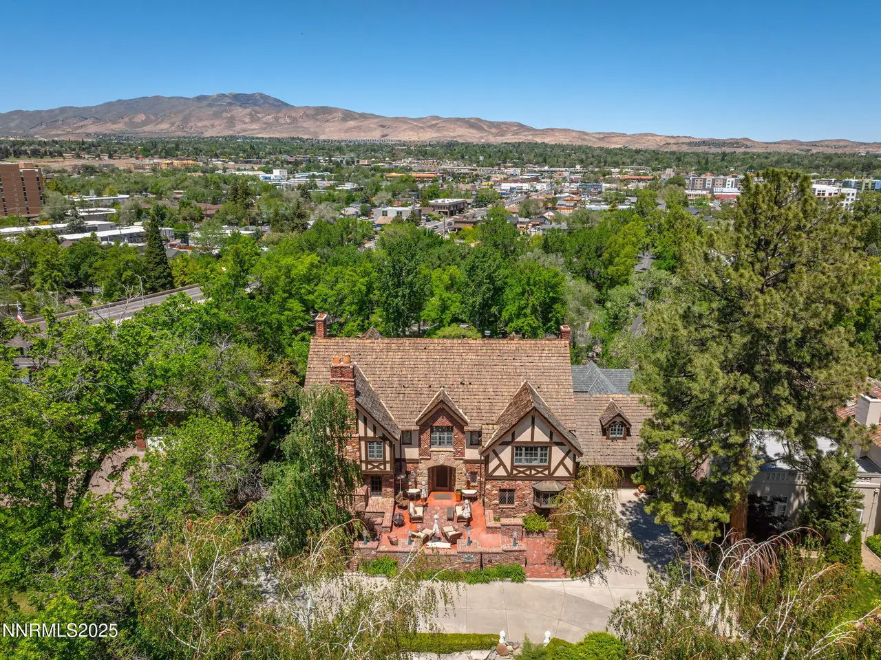 Make Reno's history into your future at 745 California Avenue, a 7,722 sq ft, 6 bd/5.5 bath English Tudor Revival home. Known as the Payne House and designed in the late 1930s, it features a 20-foot circular entry hall connecting formal and cozy living areas. Its prime location offers stunning views of the Truckee River and downtown Reno through expansive windows, a terraced yard, and a gazebo. With its rich history, detailed restoration, and modern amenities, this house is ready for its next era and owner. Discover a distinctive property that blends architecture and history on Reno's iconic bluff overlooking the Truckee River at 745 California Avenue. This 7,722 sq ft English Tudor Revival estate was designed in the late 1930s by famed Nevada architect Edward Parsons, who called it "rather a thrill." The home makes a lasting impression with decorative brickwork, half-timbering, steeply pitched symmetrical gables, leaded glass windows, and massive chimneys. Its form is most striking from above, where terraced gardens and mature trees blend seamlessly into the home's architecture, offering privacy, beauty, and a deep sense of permanence. More than 50 years after its construction, the Payne House's current owner undertook a thoughtful restoration. Key original features—hardwood flooring, hand-finished brickwork, and bespoke architectural details—were preserved. Modern upgrades include central air conditioning, forced-air gas heating, updated plumbing and electrical systems, and security. A restored vintage elevator provides convenient access across all levels of the home. The home includes 6 bedrooms and 5.5 bathrooms. The primary suite features a vintage fireplace, mountain views, dual vanities, a jetted soaking tub, a walk-in shower, and a spacious closet. The kitchen pairs classic charm with modern function, with built-in appliances and a garden-view breakfast nook. The formal dining room features oversized windows that frame panoramic views of the Truckee River and Sierra foothills. A painted ceiling mural floats above the living and game room. Wood-burning and freestanding fireplaces add warmth and character throughout the home. Additional rooms include a library, office, bonus space, and a fully finished walk-out basement with its own recreation area and workshop. The finished basement opens to the yard and adds flexible space for hobbies, guests, or extra living. The 0.79-acre lot includes a custom stone wall along California Avenue, a private driveway, a detached two-car garage, and a playhouse designed to echo the main residence. A tranquil pond anchors the front yard, while the terraced backyard unfolds to a deck, patio, and a gazebo perched above the river—perfect for gatherings, balloon watching, or quiet river moments. Located about a mile from downtown Reno, the home offers convenient access to parks, schools, and cultural venues. The Newlands Historic District is known for its concentration of other historic homes, tree-lined streets, and a landscape shaped by the City Beautiful movement. The Payne House offers more than architectural beauty—it holds a story. From its distinguished origins to its careful restoration, this home reflects vision, character, and legacy. It's ready for its next era—and for someone who values history, design, and the timeless experience of living in a truly remarkable place.