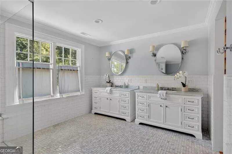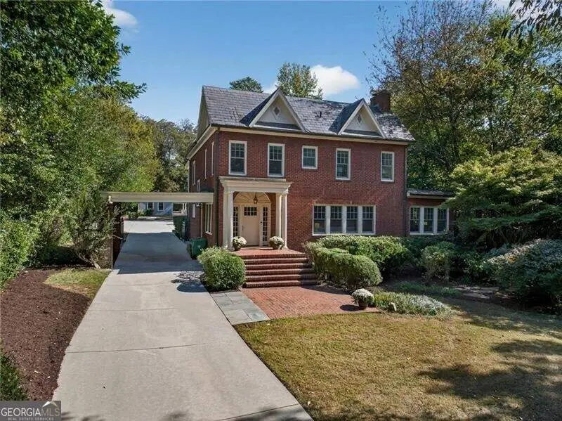A rare offering in the heart of historic Druid Hills, this stately residence embodies the grace, scale, and quiet sophistication that define the neighborhood's most admired homes. Set far back from the avenue on over an acre of private, park-like grounds, its slate roof and timeless fa ade stand as a testament to enduring architecture and impeccable stewardship. Every element feels intentional - from the tree-lined approach behind an automatic gate to the ample parking that welcomes with understated luxury. Inside, light and proportion take center stage. The grand foyer opens to beautifully scaled rooms that flow effortlessly from one to the next, creating a sense of ease and refinement that unfolds naturally throughout the home. Tall ceilings, rich millwork, and gleaming hardwoods honor the home's historic soul, while thoughtful updates infuse it with warmth and livability. At the heart of it all, the chef's kitchen is both refined and functional - appointed with Sub-Zero refrigeration, soapstone and marble surfaces, and custom cabinetry that balance elegance with purpose. The adjoining gathering spaces invite connection, whether for quiet mornings or lively evenings among friends. Upstairs, the primary suite offers a sense of retreat and repose, with a marble-accented bath that feels both classic and indulgent. Secondary bedrooms are generous and light-filled, complemented by a dedicated laundry room and extensive basement storage. Beyond the main residence lies one of the property's most exceptional features - a beautifully finished guest house complete with a full kitchen, large bedroom, full bath, and half bath - perfect for guests, extended family, or a private studio retreat. Outdoors, the experience becomes extraordinary. A spectacular heated pool with spa and cascading waterfall anchors the landscape - large enough for true lap swimming and surrounded by tranquil privacy. The setting feels worlds away, yet moments from Emory, Fernbank, and the city's finest dining and cultural destinations. This is Druid Hills at its most refined: architecture with presence, grounds with purpose, and a lifestyle that balances historic beauty with modern grace. A home that honors the past while living effortlessly in the present - elegant, enduring, and unmistakably rare.