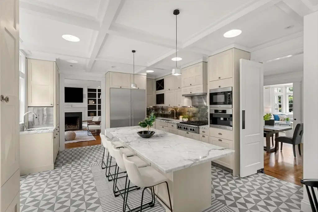 Exquisite 2005 Arts & Crafts style home in Historic Pill Hill by noted architect Tom Catalano, unique in every regard, offers luxurious custom elements at every turn. Beautiful gardens and hardscaping set the scene from the street. An over-the-top kitchen w/large center island and spacious FP'd family room anchor the home and offer glass slider access a lovely rear bluestone patio, heated lap pool w/water features and walled garden- with hand-made historical brick, gas lamp lighting, arched entries, wrought iron gates and intricate plantings. Upstairs are 5 BRs, a covered sleeping porch, 3rd floor play space, 2 add'l designer baths, laundry & a fab Primary w/ 4-piece marble bath, walk-in closet & city views. Lower level, with private entrance, kitchenette, full bath, & huge living space provides options - large gym, au pair suite, home office! Allerton is a popular treelined street walkable to Lincoln and BHS, the T, shops+ restr's of Brkl Village, Longwood Medical, Emerald Neckl