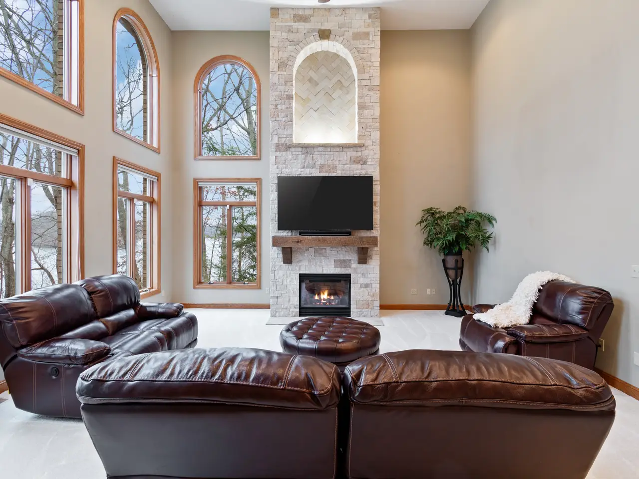 • Natural stone fireplace