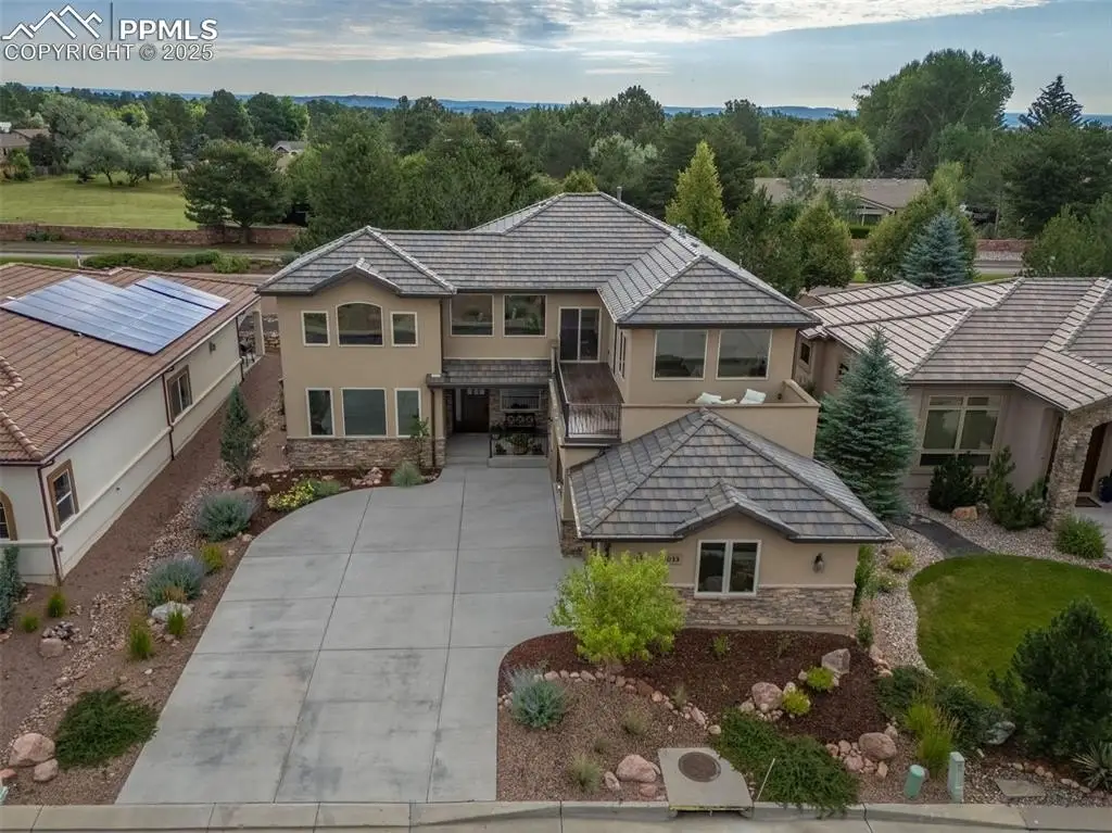 VIEWS, VIEWS, AND MORE VIEWS!!! You will be delighted by this beautiful custom built 2-story home located in the gated community of Cathedral Ridge at Garden of the Gods. This home offers a custom designed floor plan that maximizes the views of Pikes Peak and Garden of the Gods. Enjoy living in one of the most prestigious communities in Colorado Springs with attractive surrounding homes and resort amenities within walking distance. Offering generous guest rooms and an upper deck that will impress, this home is perfect for working from home in an office that looks directly at Pikes Peak. Main level features a living room w/ gas fireplace, large windows for big views, a dining room, gourmet kitchen w/ quartz countertops, stainless steel appliances, pantry, island w/ seating, and breakfast nook that walks out to a 16x12 covered back patio. Also on this level is a large primary bedroom w/ vaulted ceilings, attached 5-piece bath, and walk-in closet, as well as a 1/2 bath & spacious laundry room that adjoins a mudroom off the garage. The upper level is highlighted by stunning mountain views as you walk up the staircase and settle into a 2nd living area that walks out to the expansive deck. Completing this level are two additional bedrooms w/ attached baths, an Office/4th bedroom, 1/2 bath and 2nd laundry room. Home amenities include central air, engineered wood flooring, a 3-car attached garage, and 12x8 covered front porch, which looks right at Pikes Peak. HOA dues include gated security, snow removal on private streets & trash removal. Walking distance to the Garden of the Gods Club and Resort, which offers numerous amenities including spa, gym, swimming pools, hot tubs, pickleball & tennis courts, and fine dining, with club membership. Plentiful hiking & biking trails close by. Excellent location only minutes from downtown, Manitou Springs, & Kissing Camels Golf Club. Rare opportunity to acquire a view property in exclusive Cathedral Ridge. Don't let this gem get away!