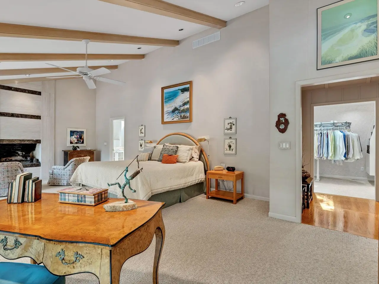 • Vaulted wood-beamed ceilings with cozy fireplace