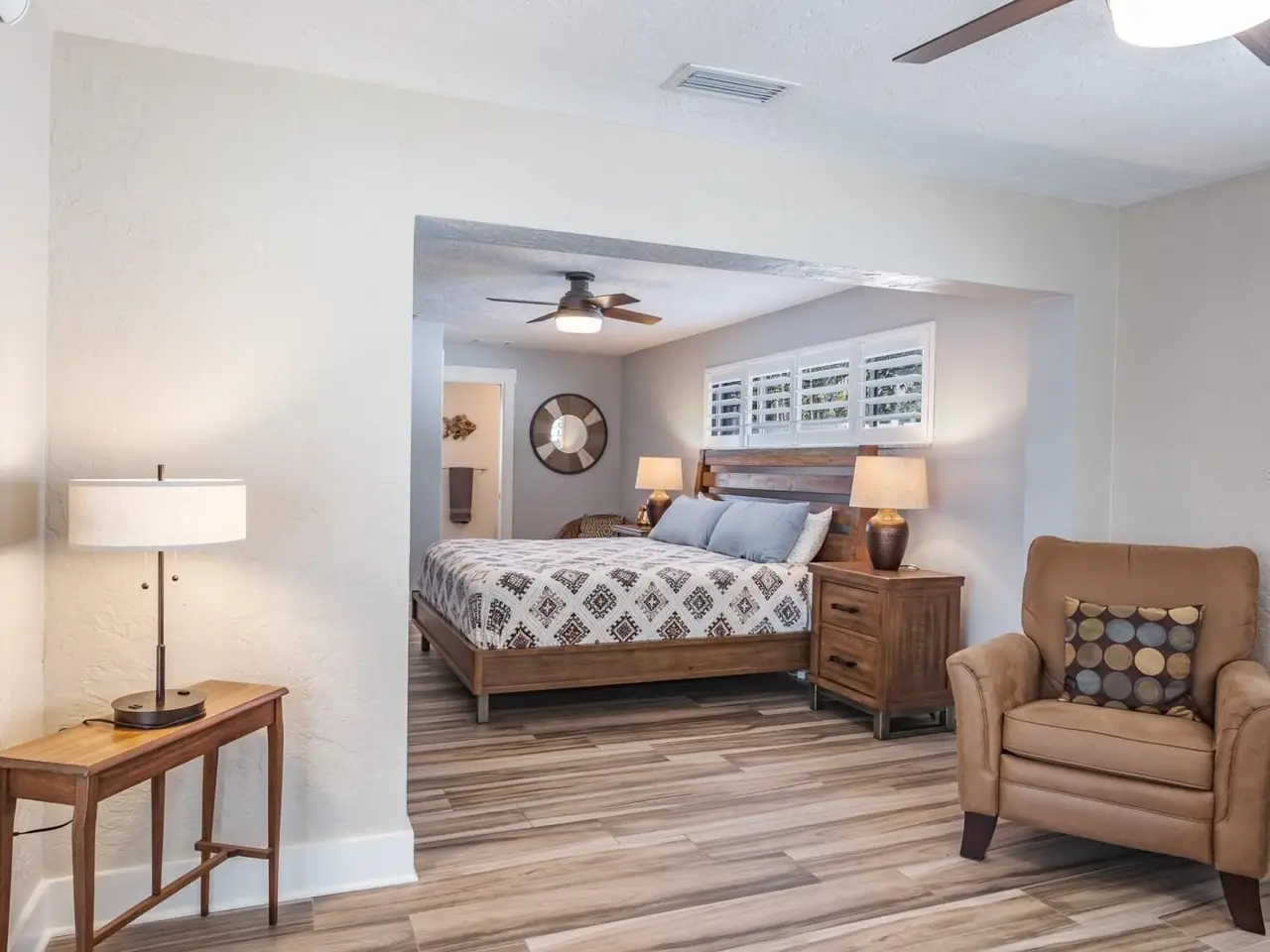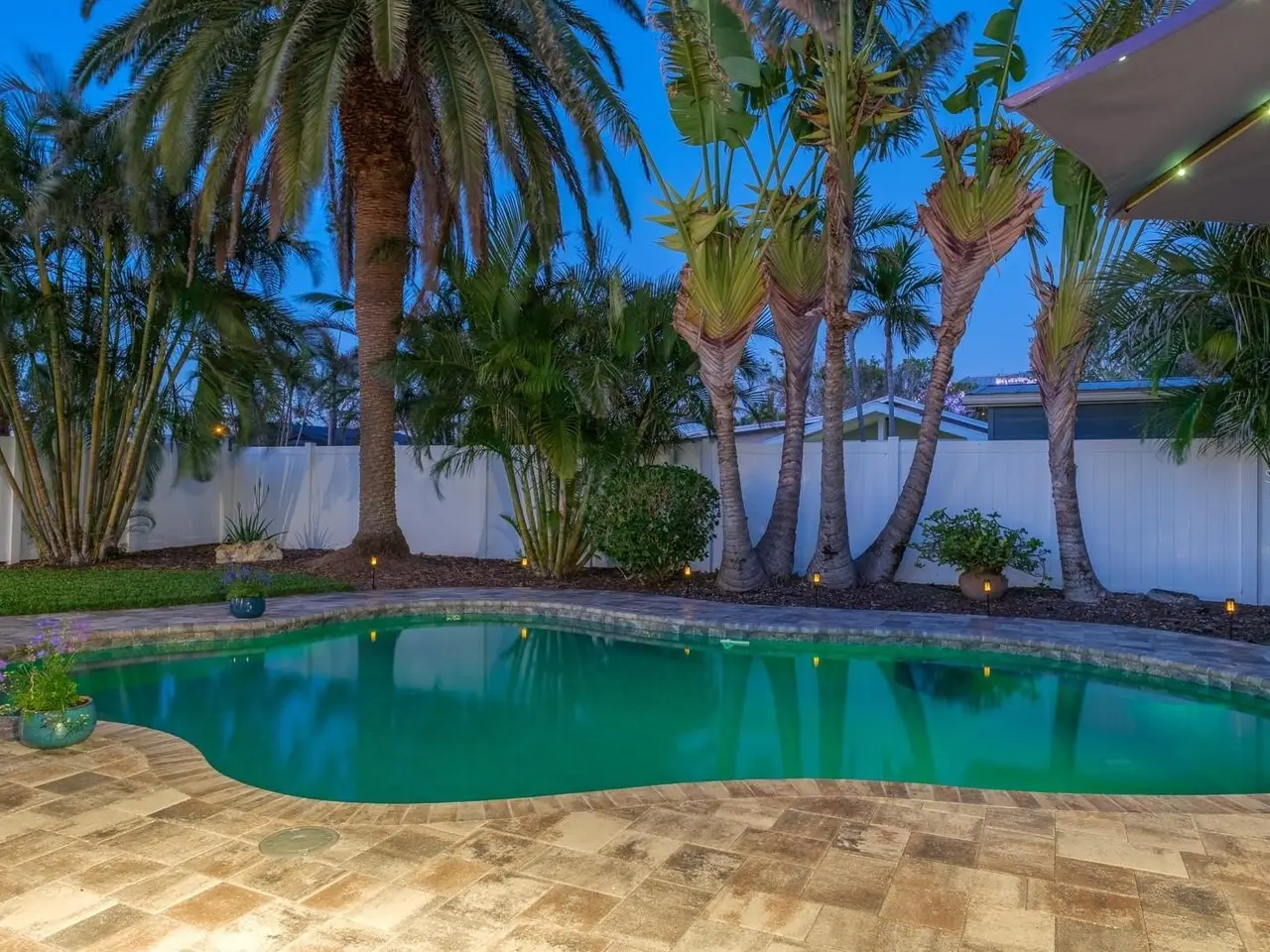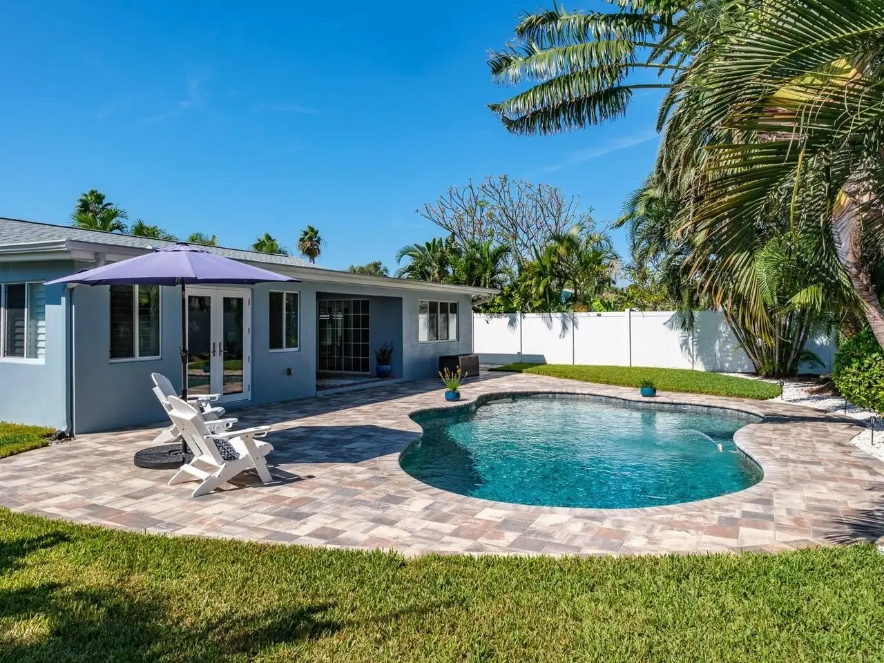 Welcome to the secluded Island of Vina Del Mar! This 2BR/2BA coastal-inspired home in the coveted Vina Del Mar neighborhood offers light-filled, open-concept living with views of the landscaped backyard and saltwater pool. The updated kitchen features custom quartz countertops, all-wood cabinetry & pantry with soft-close drawers, and a striking 100-year-old cypress beam with matching accent trim. The split floor plan includes a spacious primary suite with an en suite bath, a walk-in closet with custom shelving, and a versatile office/den/nursery space with pool access. The guest suite offers a built-in closet and adjacent bath, with a custom pocket door for added privacy. Two distinct living areas provide flexibility—one for larger gatherings, the other is open to the kitchen with direct pool access. The covered lanai offers shade while overlooking the private backyard, with an adjacent lounge area ideal for cooling off indoors. Meticulously upgraded and kept, the home features a new roof (2025), pool pump (2024), water purification & filtration system (2022), water heater (2020), Air Knight purification system (2017), custom Pebble-finish saltwater pool (2017), wood plank-style porcelain flooring, plantation shutters, Nest smart thermostat & smoke/CO detectors, updated electrical panel, newer windows and doors, fresh paint, and more. The two-car garage provides additional storage, while underground power lines preserve unobstructed views. Nearby Vina Del Mar Park offers a playground, dog park, pickleball, tennis, and basketball courts. Cruise down to the beach, restaurants, shops and entertainment in famous Pass-A-Grille or even a short drive to the vibrant Downtown St Pete for nightlife and the St Pete Pier. Don’t miss your chance to live the Salt Life!