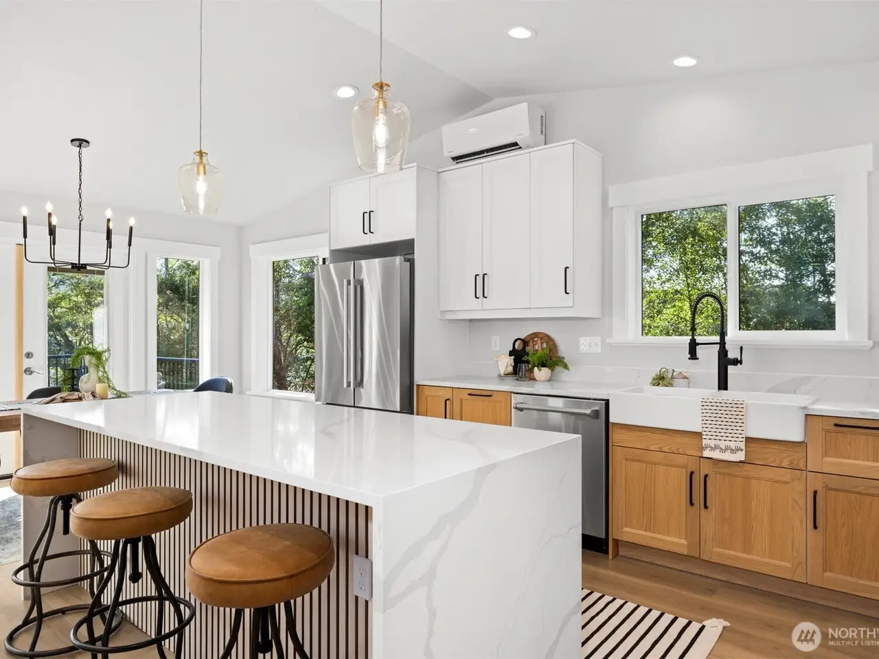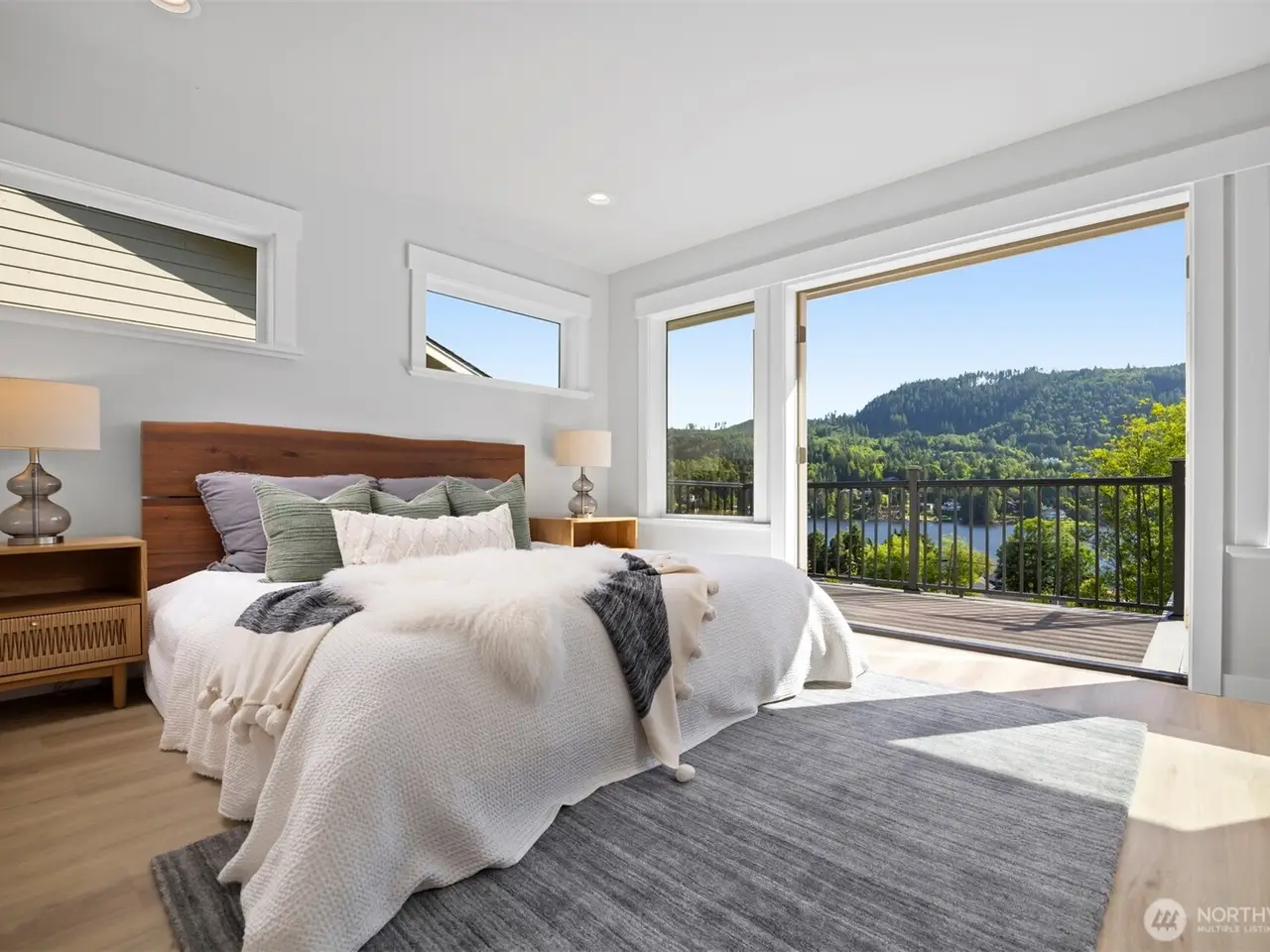 Stunning brand-new custom home with nearly 4,200 sq ft, perched above Big Lake with breathtaking views! Quality finishes throughout. Walk in to the expansive living room with soaring vaulted ceilings & huge windows showcasing the views. Impressive kitchen w/ quartz waterfall countertops, walk-in pantry, eating bar + dining area, & high-end appliances. Enjoy outdoor living on the full-length deck overlooking the lake & hillsides. Spacious upstairs loft, perfect for an office or extra living space. Downstairs offers a 2nd kitchen, living room, private suite, additional bedroom + extra hobby room or storage, perfect for guests or multigen living. High-efficiency heating & A/C.