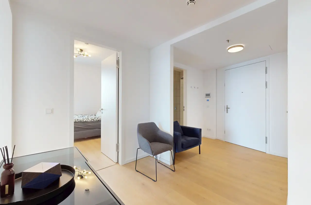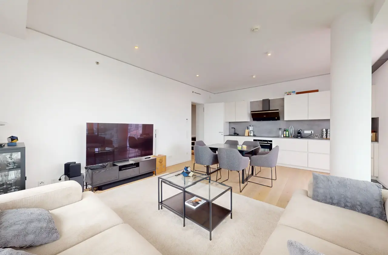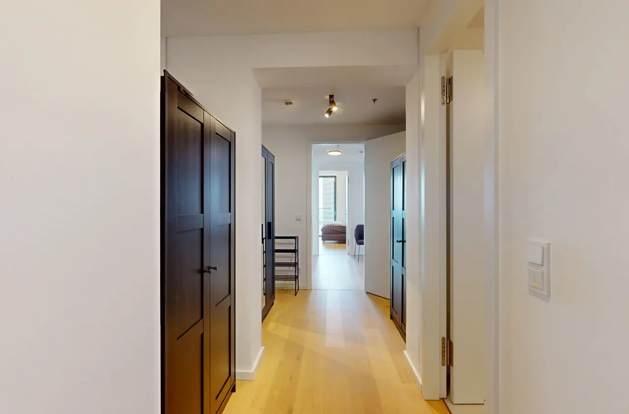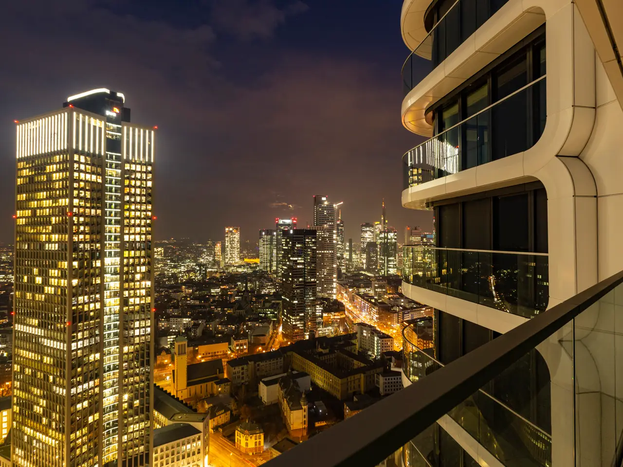This absolute premium apartment is located on the fortieth floor of the Grand Tower, currently Germany's tallest residential tower at 180 meters - the most sought-after landmark building in Frankfurt. The transparent architecture, reminiscent of honeycombs, and the floor-to-ceiling windows offer airy living and magnificent views. The living/dining area is flooded with light and features curved glass fronts. From here, you have access to the balcony with all-round glass balustrade and views of Frankfurt and its skyline, as well as the Taunus and the entire surrounding area. The three bedrooms, one of which has its own balcony, offer great and practical living space. The communal Grand Garden on the seventh floor with lounge areas and herb garden and the Sunset Terrace on the 43rd floor invite you to relax and provide a communicative, urban atmosphere and magnificent views of the sunsets. The 24-hour concierge service and the Club Kitchen on the seventh floor are further highlights of this exceptional apartment. An underground parking space is included in the purchase price. The apartment is ideal for singles, couples or small families with up to one child who appreciate urban living in the Grandtower, combined with a high level of living comfort and communal areas for relaxing.