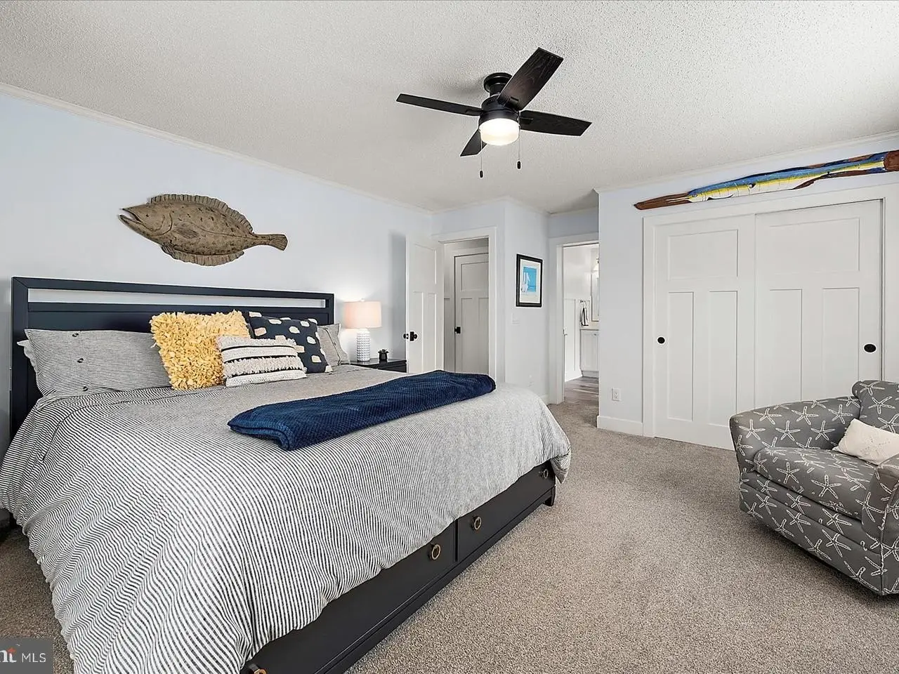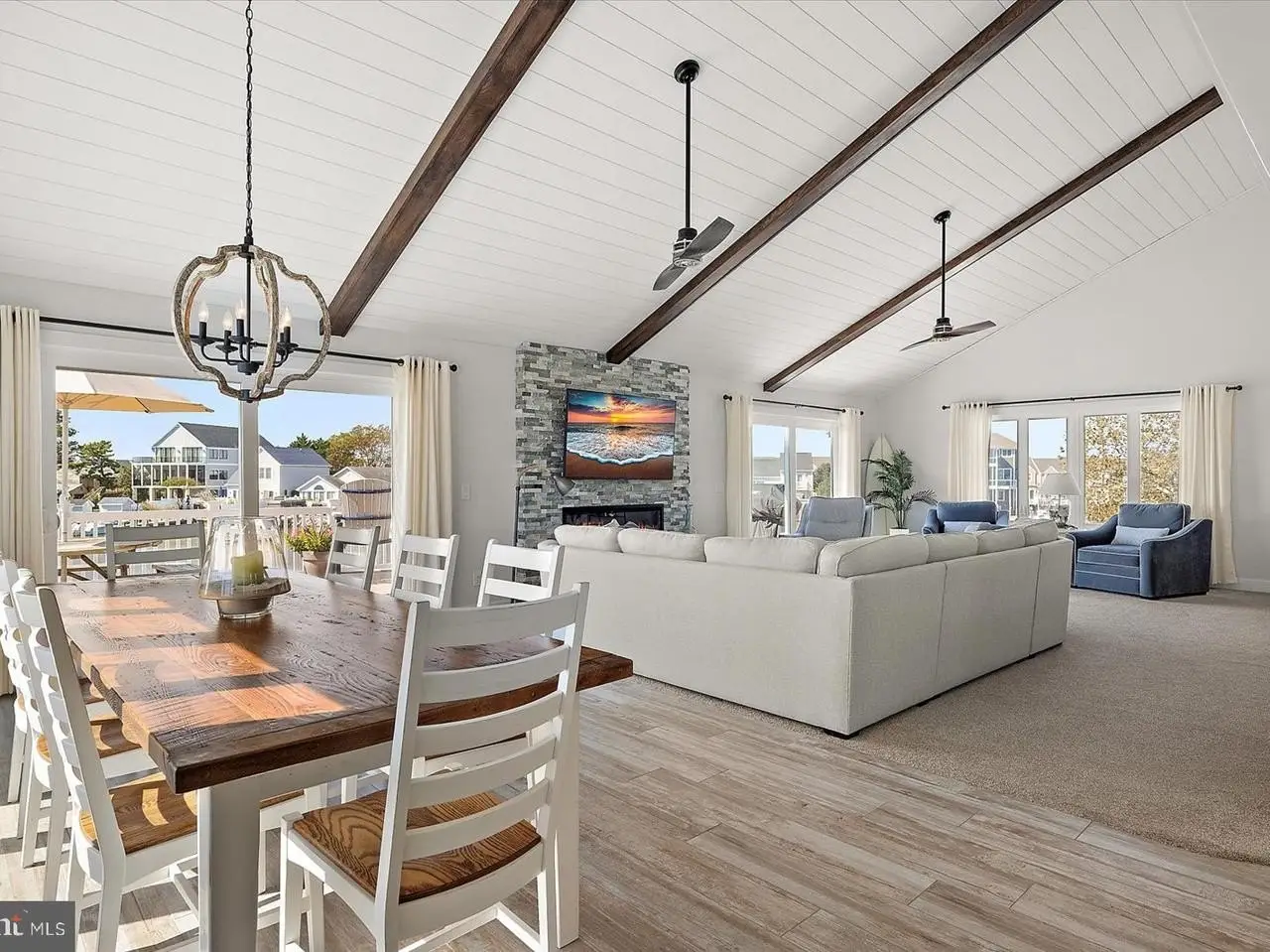 • Large windows framing bay vistas