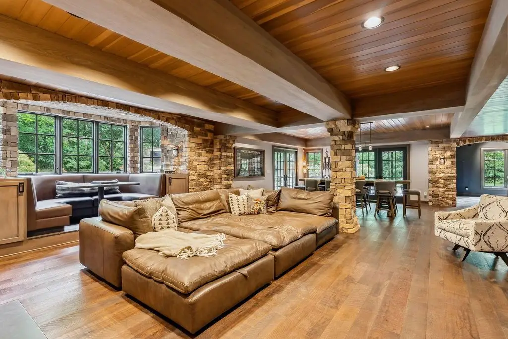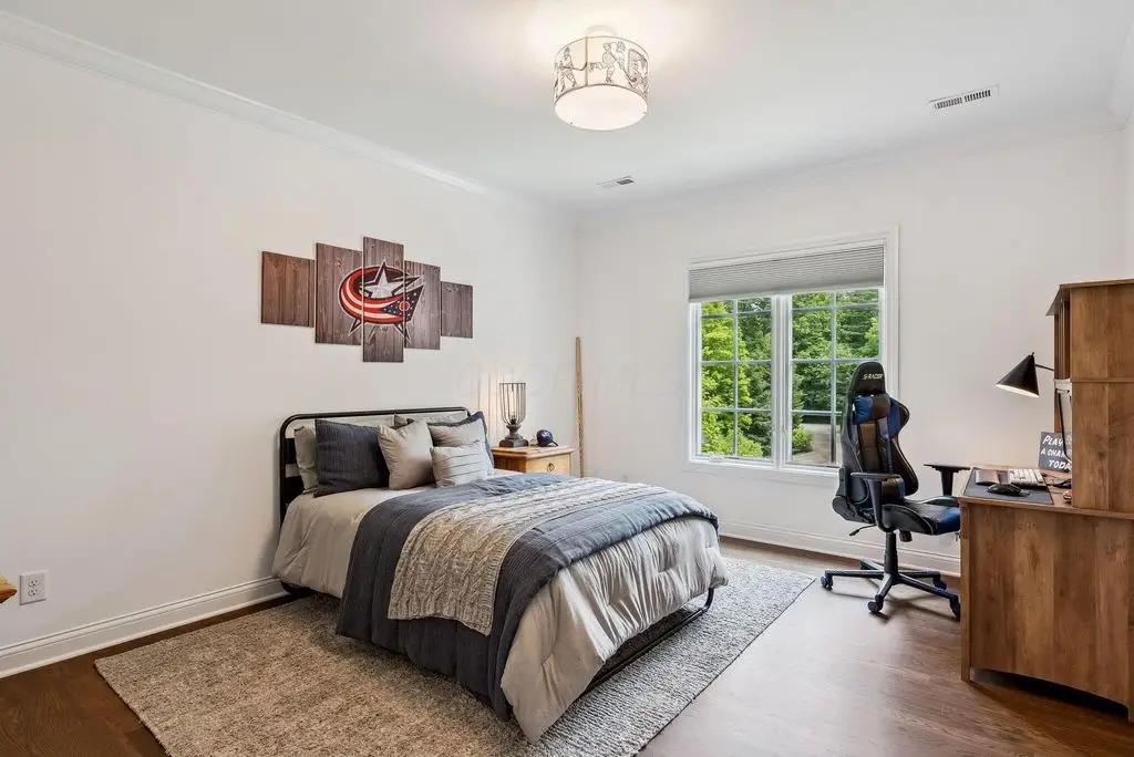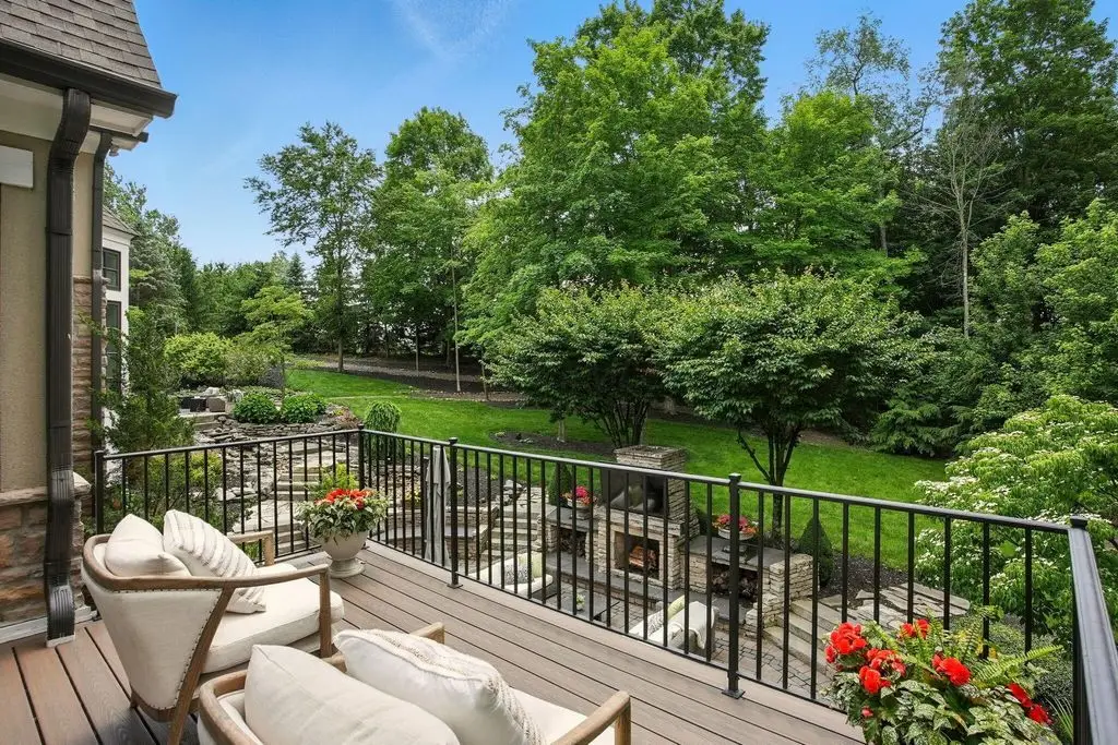 Welcome to 4960 Hawthorne Valley Drive, a captivating estate tucked away in one of Westerville's most coveted wooded enclaves. Backing directly to Highland Lakes, a private wooded path leads from your backyard to the serene beauty of The Lakes - a rare and seamless connection to this exclusive community. Built in 2006 and extensively renovated in 2022, this custom home blends luxury and privacy on a lush 1.99-acre lot. From the moment you arrive, you'll be captivated by the timeless design and meticulous attention to detail. The expansive floor plan features 5 bedrooms and 8 bathrooms, perfect for both everyday comfort and refined entertaining. The gourmet kitchen is a showpiece, with high-end appliances, custom cabinetry, and dual islands - ideal for hosting and culinary creations. Soaring ceilings, rich moldings, and sunlit spaces define the elegant living and dining areas, while a cozy family room with fireplace offers a welcoming retreat. The primary suite is a true sanctuary, complete with a spa-like bath, dream-worthy walk-in closet, and private deck overlooking the peaceful outdoor setting. Each additional bedroom includes its own en-suite bath for comfort and privacy. The finished walk-out lower level is a refined and inviting extension of the home, designed with both functionality and wow-factor in mind. Flooded with natural light and crafted with high-end finishes, this expansive space offers multiple zones for entertaining, recreation, or everyday living, all with walk-out access to the private, wooded backyard. A professional-grade bar is perfect for gatherings, while the unique indoor skateable hockey rink provides year-round fun. Outdoors, the landscaped grounds, expansive patio, and large, tree-lined yard provide a serene backdrop for entertaining or relaxing. An attached 3-car garage and a large outbuilding offer space for hobbies, vehicles, or storage. This extraordinary home offers a rare blend of elegance, recreation, and privacy!