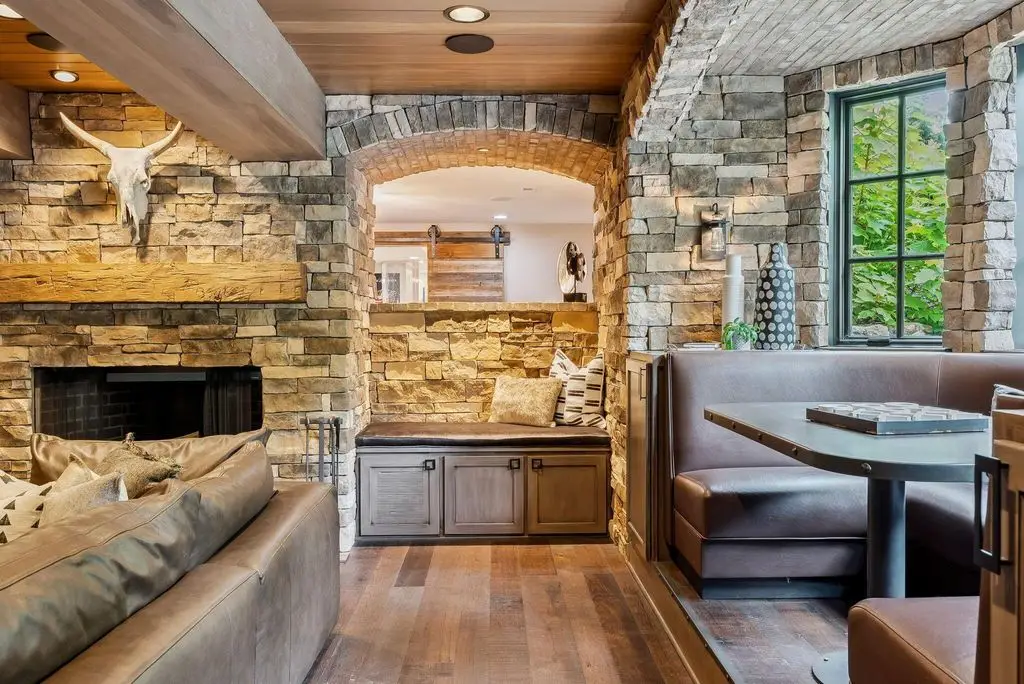 • Cozy family room fireplace