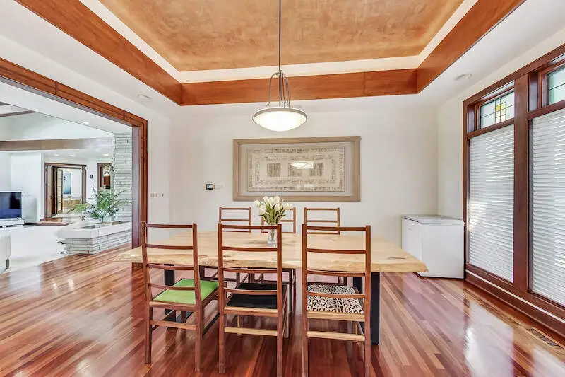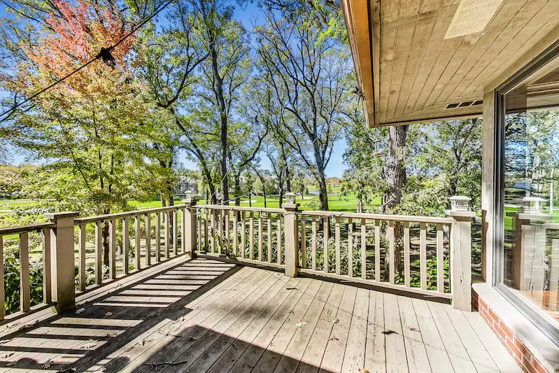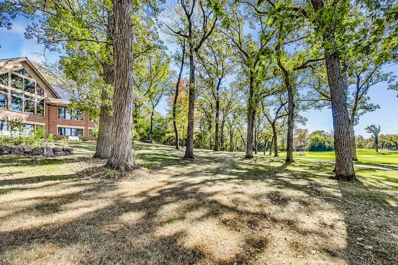 Designed by the talented and highly acclaimed architect, Ron McCormick. Iconic home situated on approximately 1.3 acres and overlooking the sweeping views of 16th fairway of Wynstone Golf Course. For those discriminating buyers desiring the finest of a unique custom built home with features including stone and woods incorporating the gorgeous oaks of outside and the contemporary oasis of the inside. One is welcomed by a dramatic entrance to almost 4000 square feet on the first floor! The layout and style of the home captures every aspect of the property. Ideal home for those seeking multi generational situation or more elegant and private guest space. Expansive primary suite on main level, blend of mid century and Frank Lloyd Wright tones in the kitchen, dining area, and great room with expensive flooring and wood touches. Upstairs provides the perfect guest quarters with living space, bedroom, and separate kitchenette area. The finished walkout emphasizes the openness of the home and highlights the floating staircase. Incredible spaciousness to entertain, enjoy the fine elements of the home, and the impressive property with towering trees. Recent HVAC replaced and one year new roof.