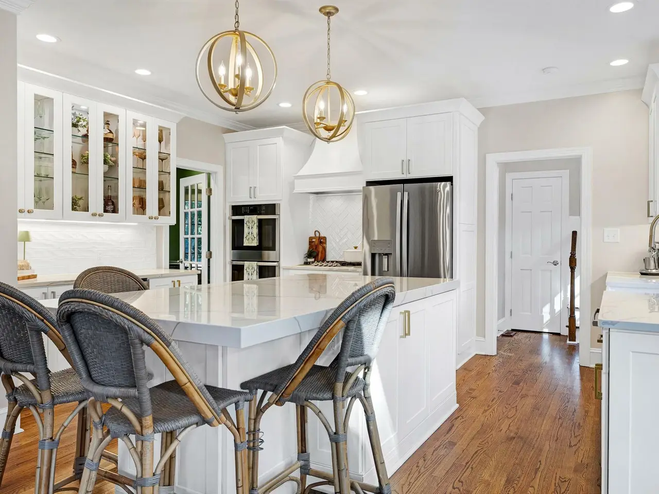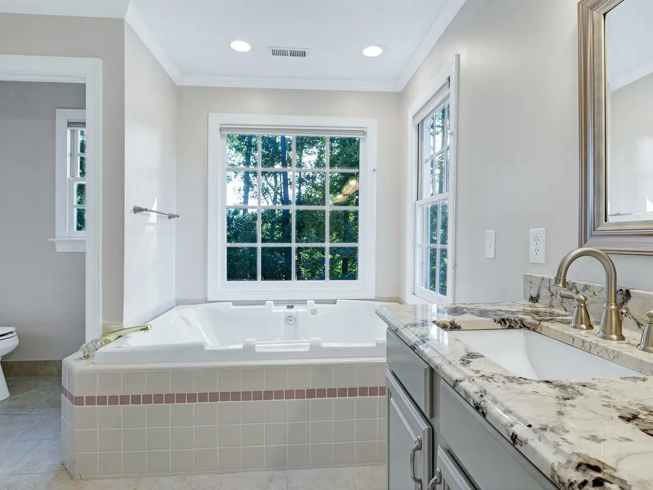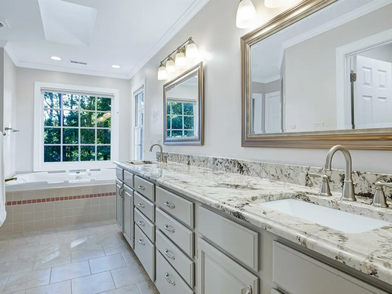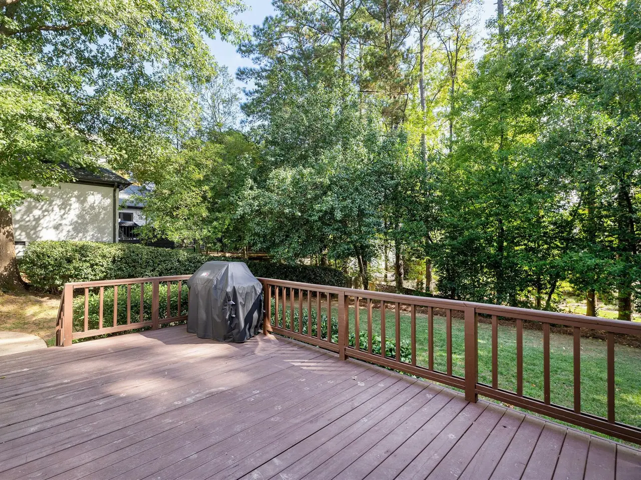 North Ridge classic at its best! This beautiful home was made for easy entertaining with formal areas. Enjoy memorable dinners in the dining room which features a trey ceiling and wainscoting. The living room is perfect for quiet conversations. The updated kitchen is appointed with quartz counters, center island, SS appliances, tile backsplash, gas cooktop, glass front cabinets and a large pantry. It opens to the sunny breakfast room and family room with cozy fireplace There is a rear staircase leading to the second floor bonus room. The primary suite has a huge bedroom, office area, luxury bath with double vanities, whirlpool bath, separate shower and walk in closet. Three additional bedrooms are on the second floor. The walk up attic will meet your storage needs or can be used for future expansion. Enjoy the view of the private backyard from the two decks or the playset . You are minutes from North Ridge Country Club, shopping and dining. It's an easy commute to I-540, downtown Raleigh, North Hills and the airport. This home is waiting for you!