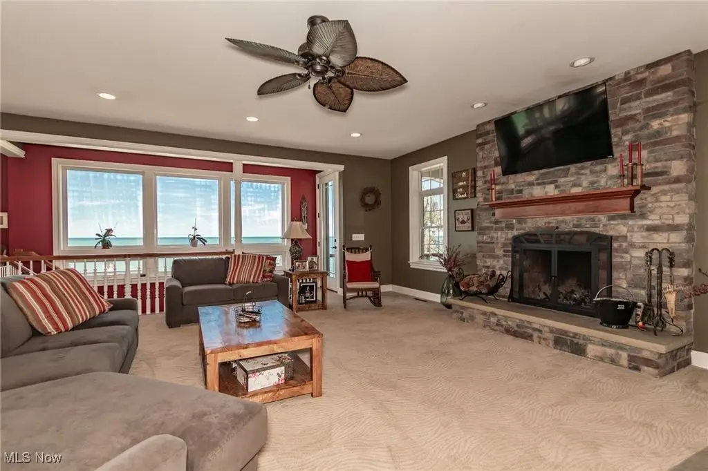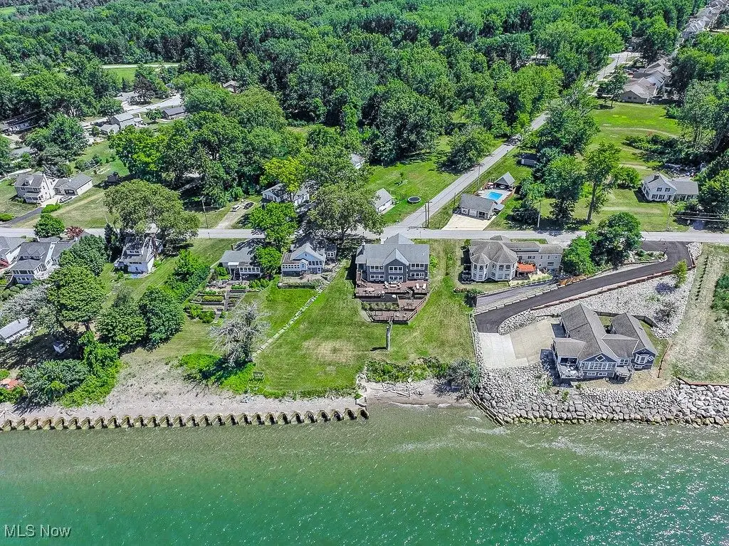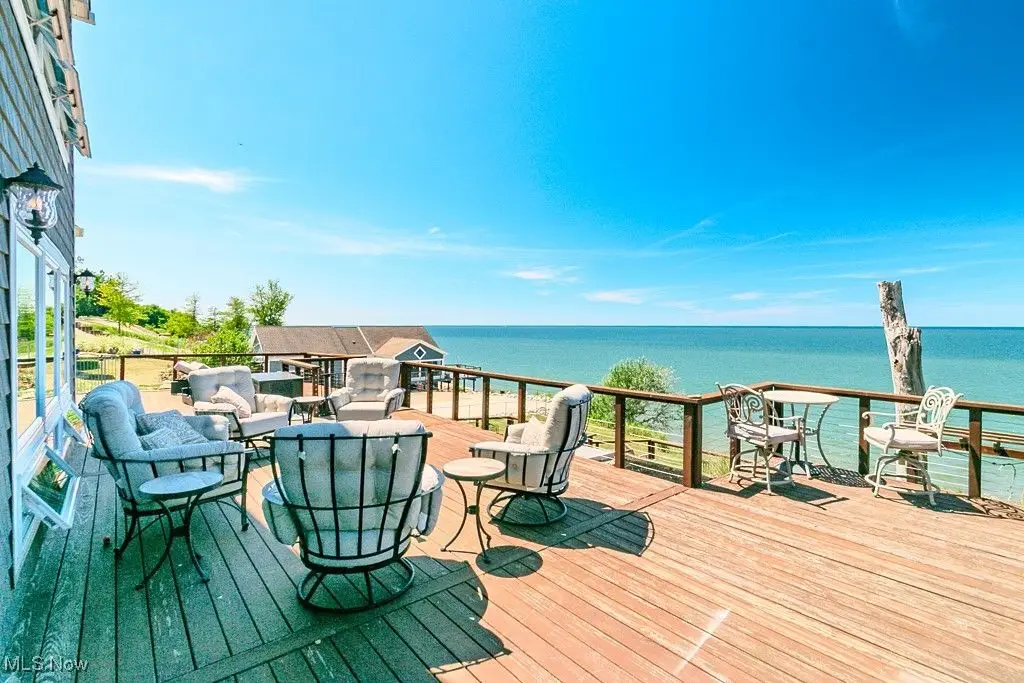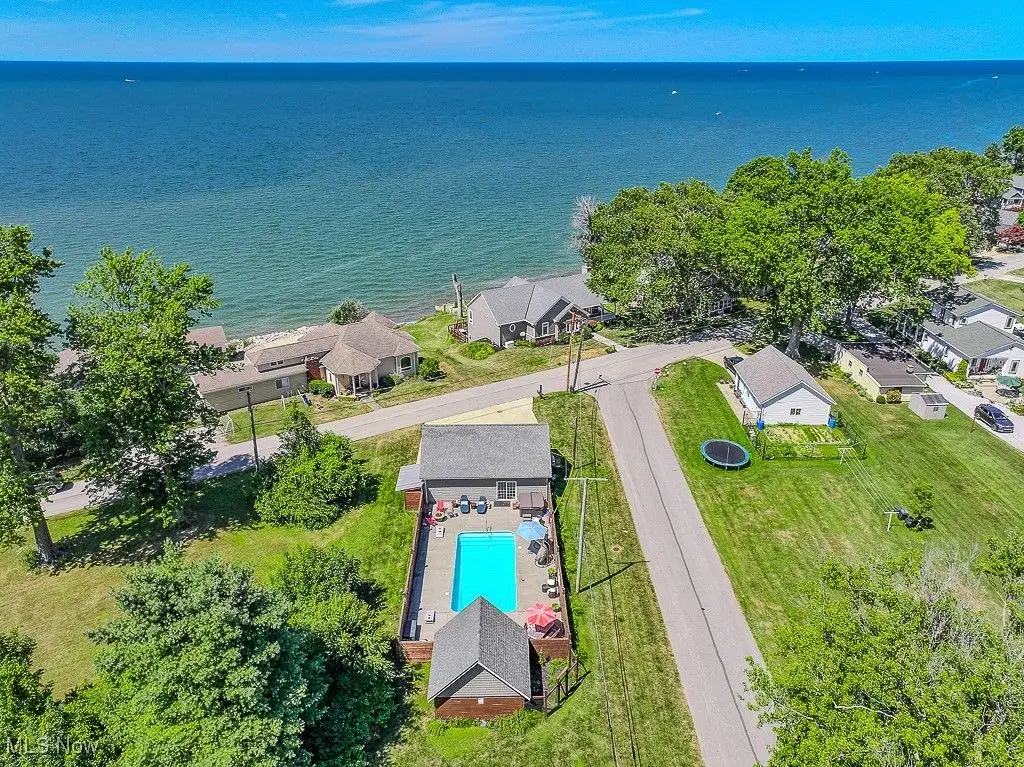 Welcome to your dream lakefront retreat on highly desirable Headland Road Beach! Built to last in 2012, this stunning ranch home sits on 1.4 acres of paradise with 104 feet of Lake Erie frontage. The house is built on a superstructure constructed of a series of 36 Caison's piers, 36" in diameter on perimeter points of the house, which extend 24 feet below the surface to the bedrock which then is tied to the surface in a 3' x 4' feet grade beam which the structure is built upon. It was designed by structural engineer Isaac Lewin one of Cleveland's top structural engineers, and then Built by JLJI Specialty contractors which is one of the top leading contractors in the Cleveland area. Elevated for panoramic water views, the home offers a perfect blend of luxury and comfort. Step onto the charming wraparound porch and take in the view from the expansive three-level deck. Inside, the gourmet granite kitchen with island flows seamlessly into the great room, highlighted by a dramatic stone fireplaceC/B?B=ideal for entertaining or cozy nights in. The owner's suite is perfectly positioned to capture breathtaking sunsets, while two additional spacious bedrooms and a full bath complete the main level. The finished walkout lower level expands your living space with a family room, recreation room, and a 4th bedroom that also enjoys lake views. There's even a large deck-side storage room for all your wakeboards and water toys. The 3-car garage opens to a resort-style pool with a hot tub and cabana - your private staycation oasis. A separate storage shed adds extra convenience. Lake life doesn't get better than this!