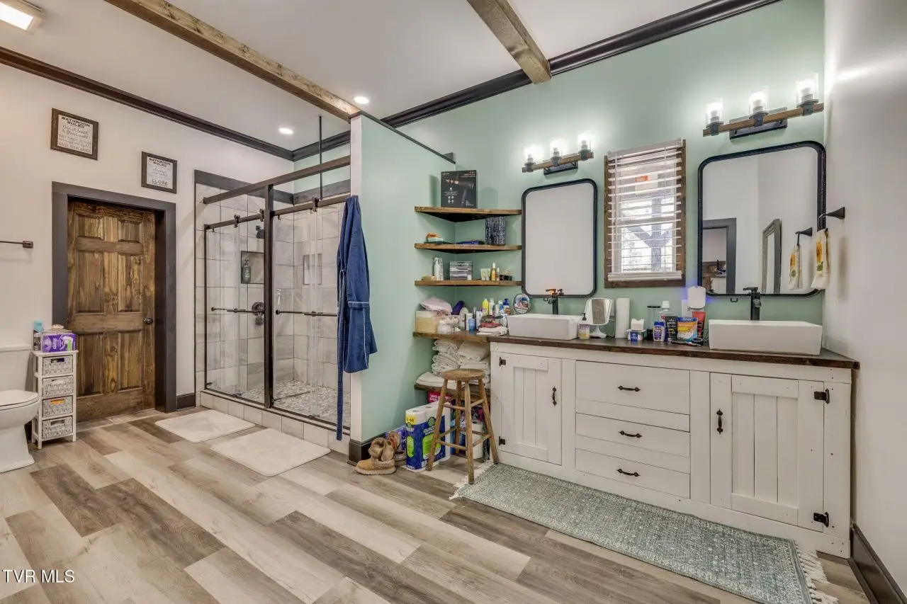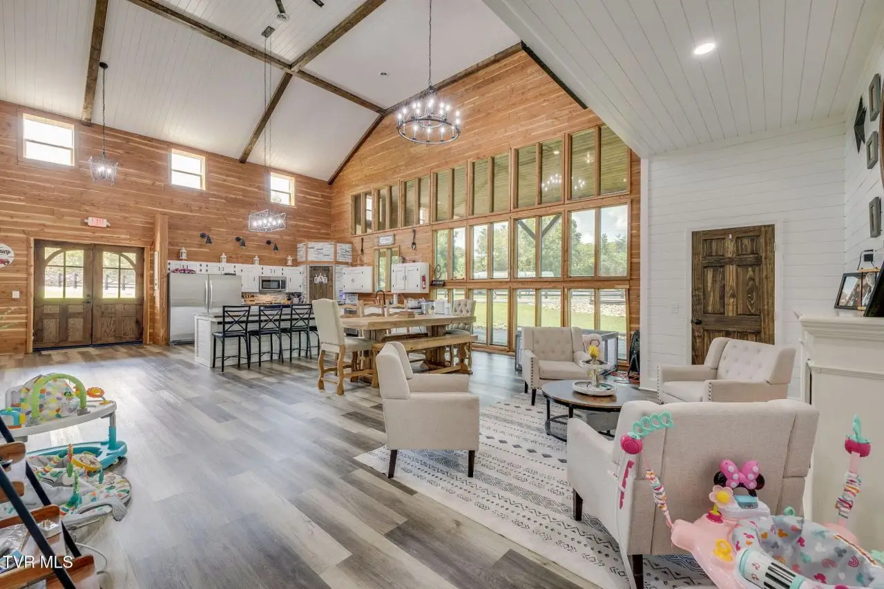 This one-of-a-kind Airbnb offers a 6600 sq ft custom-built barndominium with 2 car garage sitting on nearly 3 acres in the scenic Tennessee countryside. Plus, a 60x40 detached 3-bay garage/shop. This 5-bedroom, 3-bath layout showcases 32-foot cathedral ceilings and expansive windows that fill the space with natural lighting. A cozy fireplace adds warmth and charm to the main living area, creating an inviting atmosphere for gatherings throughout the year. The master suite is conveniently located on the main level featuring a spacious master bedroom, a full bath with double vanities, a beautifully tiled shower, and a large walk-in closet. Upstairs, you will find two additional bedrooms, a full bath, a large bonus room, and a movie room perfect for movie nights, game days, or relaxed hangouts with friends and family. Completely Furnished! Take a refreshing splash in the in-ground pool, the perfect spot for sunny afternoons and evening swims. Enjoy the screened-in porch with an outdoor kitchen featuring a fridge, sink, and Blackstone grill, where cookouts and brunches with family and friends are always a good time. The porch also includes two large TVs, perfect for football season and game nights. Whether you're planning a wedding party, birthday celebration, vacay getaway or weekend retreat, this property provides a striking setting and plenty of room to bring people and celebrations together. The outdoor space is well-suited for event setups tents, tables, dance floors, photo stations, and more. Also included is a 60x40 metal garage with three garage bays, currently leased out month to month by a local trucking company. Offering two offices and a full bathroom with shower, generating consistent monthly income from a long-term tenant.This is a commercial listing with an active rental and lease income.