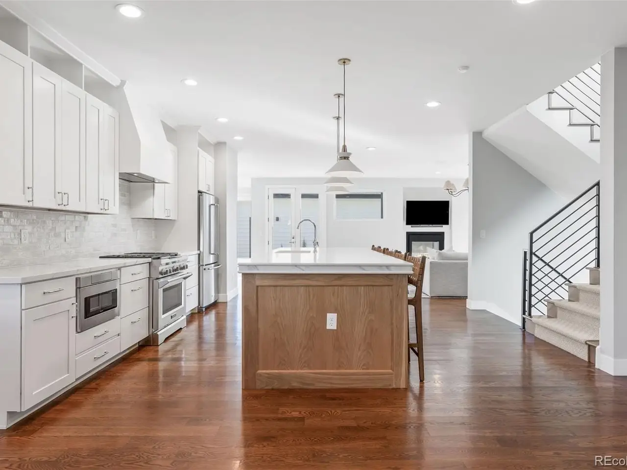 Warm and welcoming, this modern Cory-Merrill home features an expansive open floor plan flooded with natural light throughout. With high ceilings and hardwood floors that carry throughout the main floor, youre welcomed into the dining room and spacious new kitchen, located at the heart of the home. Renovated in 2025, the kitchen features new Moroccan Zellige tile backsplash, quartz countertops, and new lighting, as well as KitchenAid range, dishwasher and refrigerator, creating a sophisticated space ready for any cook. With room for many, the white oak 10-foot island provides enough counter space for socializing or meal time. Just off the kitchen is a cozy breakfast nook with built-in banquette seating, as well as a walk-in pantry and a separate mini bar area for entertaining. The great room features a 2-way fireplace that looks over the backyard patio, perfect for summer nights out or warm nights in. A generous mudroom with built-ins provides catch-all space for shoes and jackets, and a private main floor office is perfect for any work-from-home days. Upstairs, a large primary suite with a private deck, fireplace and luxurious 5-piece bathroom looks over the backyard. Three additional bedrooms upstairs offer flexible living space, a full bathroom and separate laundry room with washer, dryer and storage. The well-appointed lower level includes an additional bedroom and bath, large gym, and a grand rec/media room flex space with an L-shaped bar, dishwasher, and fridge perfect for game days or movie nights. With four bedrooms upstairs, this centrally located property is a unique gem just minutes to both Cory Elementary, C3 and Merrill Middle schools and a quick drive to Cherry Creek North or I-25. This home wonderfully marries clean, modern living with warm, inviting design.