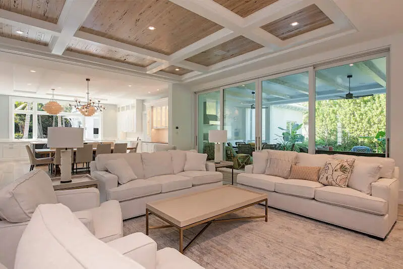 H7972 - Idyllic, private–and certainly no shortage of luxurious. This uniquely rare double-lot offering provides a true "estate like" setting, is nestled a mere four doors from the beach, and was designed by Kukk Architecture & Design while having been perfectly executed by The Williams Group. A main residence located on the eastern portion of the parcel contains 5 bedrooms, 5 full and 1 half bathroom, a loft with wet bar & 2 outdoor living areas. The gourmet kitchen offers numerous top-tier features including two-tone Ruffino custom cabinetry, quartz counters, a sprawling pantry, and Sub-Zero / Wolf appliances. The exterior living environs leave nothing to be desired and include a gas fire pit, sprawling wood deck, pool with sun shelf, bocce ball court, outdoor kitchen, and multiple uncovered/covered congregating spaces. Located off of the western portion of the parcel, a detached guest house offers 1 ensuite bedroom and fitness room. Additional features include Savant Smart Home Technology System, lift and slide doors, three sets of washer/dryers, 2 outdoor summer kitchens, 2 two-car climate-controlled garages off of the alley, wine room, full-house generator, and so much more.