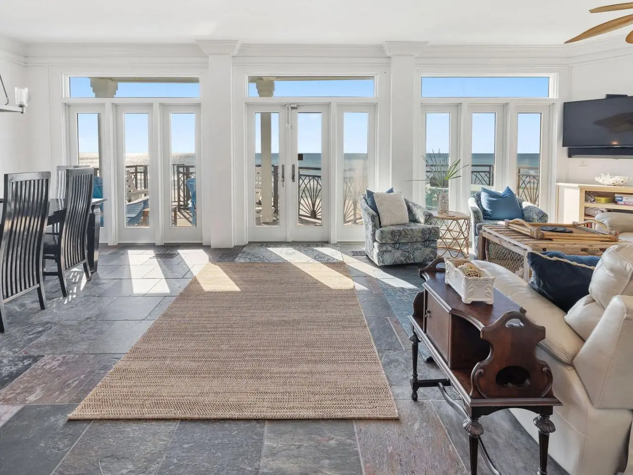 Beautiful, DIRECT GULF FRONT beach home. NO HOA. Must-see PHENOMENAL gulf & beach VIEWS. 2 decks, 3 stories. Primary suite, w/direct beach & gulf views, & balcony access. Primary ensuite bath area has wrap around windows looking out over the beach and gulf. 2 custom cabinets in primary suite. Property features 4 beds, 4 baths. One of these bedrooms is set up as a bunkroom. On the very top, is a small area with another bed. This area is in addition to the 4/4 count. Each floor has an owner's closet except 4th floor. Kitchen has owner cabinets, Sun deck-bottom floor w/access to 1st floor bath. 2-car garage, & parking pad for 3 vehicles. House is currently in a rental program - see Documents Tab for rental projections, survey info., etc. Buyer to verify any information deemed necessary.