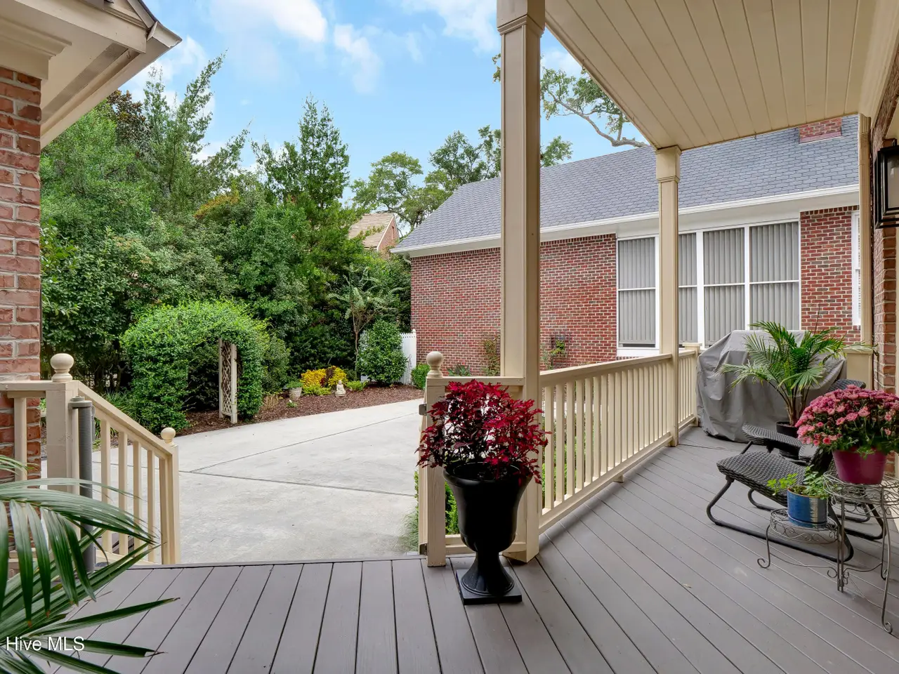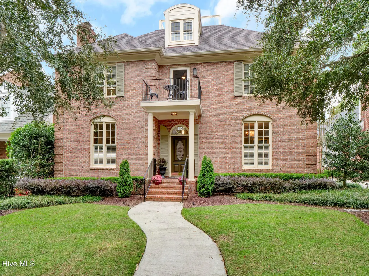 Nothing Could Be Finer... experience the most prestigious drive to your exceptional home as you meander down a tree lined street with views of the ICWW and Dye Golf course. Once you arrive you will experience a well maintained, beautiful Georgian style home located on a peaceful cul de sac street in the Villas of Landfall. This amazing home is in a perfect location to walk to the updated Dye clubhouse or Overlook Park, where you can sit peacefully overlooking the ICWW. Not only is the lifestyle of this home extraordinary, but the home is as well, boasting a craftsman style with soaring high ceilings, 9-foot door openings and attention to detail with extensive crown moldings, chair rail, built ins, butler's pantry, hardwood floors, and so much more! The floor plan is light and airy and offers space for any occasion. Enjoy a white kitchen with all stainless Kitchen Aide appliances, quartz counter tops, marble backsplash, paneled dishwasher and paneled subzero refrigerator. You may retreat to the great room after dinner to enjoy the warmth of the gas fireplace or the entertainment of a movie on your large built in 70'' HDTV, while having a cocktail from the wet bar. Built-in-cabinets and shelves are ideal for showcasing books and family photos. Entertaining is a snap with large dining room flowing into the keeping room with adjoining Butlers Pantry. Then, if you need to get away from everyone, you may escape to the peaceful screened porch, or one of the balconies, or upper sunning deck. The primary suite is spacious featuring dual closets, sitting area and opens to a cozy balcony. Then there is a detached suite over the garage with full bath that is ideal for guests, office or 4th bedroom. There is an abundance of storage in the 700 sq ft unfinished walk-in attic and oversized 2 car garage. This home is truly a pleasure, and the yard is maintained by the HOA to allow you time to enjoy!!!! Stones throw to Wrightsville Beach, Restaurants and Mayfaire.