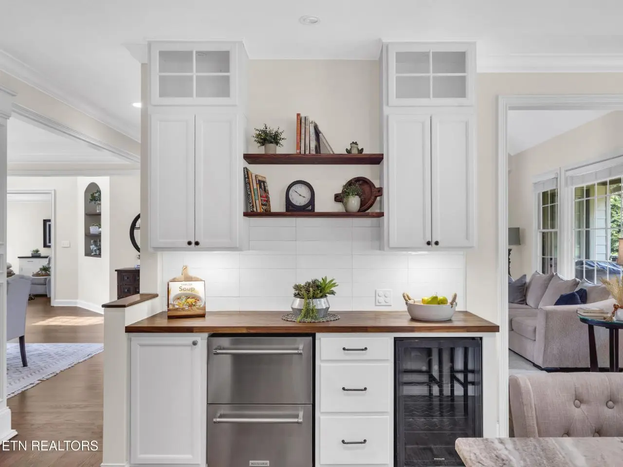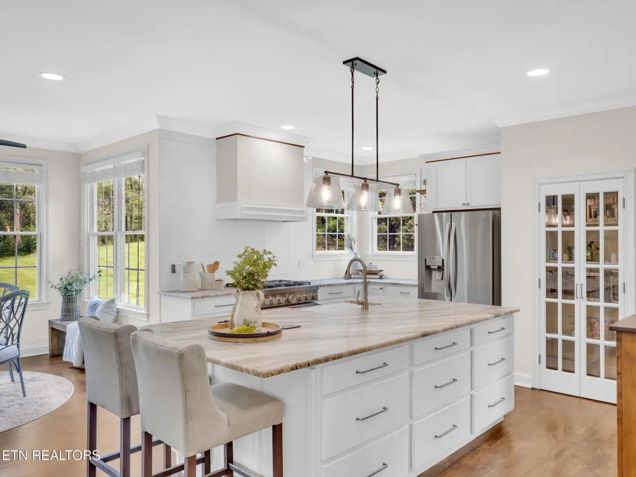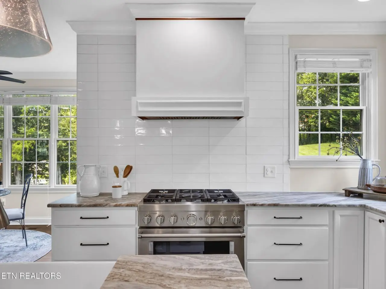 Welcome to Covered Bridge - one of Hardin Valley's most sought-after neighborhoods. This beautifully updated home offers over 3,600 sq ft of thoughtfully designed living space with 4 bedrooms, 3.5 baths, and upgrades throughout. At the heart of the home is a fully redesigned chef's kitchen built for entertaining, featuring an oversized island, farmhouse sink, 6-burner gas range, abundant custom cabinetry, stainless steel appliances, beverage center with refrigerator/freezer drawers, and a wine fridge. The open floor plan flows seamlessly from kitchen to living and dining areas, extending outdoors to a brand-new deck - perfect for gatherings. The main level includes a spacious primary suite with a spa-like bath showcasing a tiled shower and soaking tub, plus a versatile office/den with a cozy fireplace. Upstairs you'll find additional bedrooms, a reading nook with built-ins, and hidden storage that adds charm and functionality. This home truly has it all - modern design, luxury finishes, and a layout that fits every lifestyle. All within minutes of Hardin Valley schools, shopping, and just 30 minutes to Downtown Knoxville or McGhee Tyson Airport. Don't miss the chance to make this Covered Bridge gem yours.