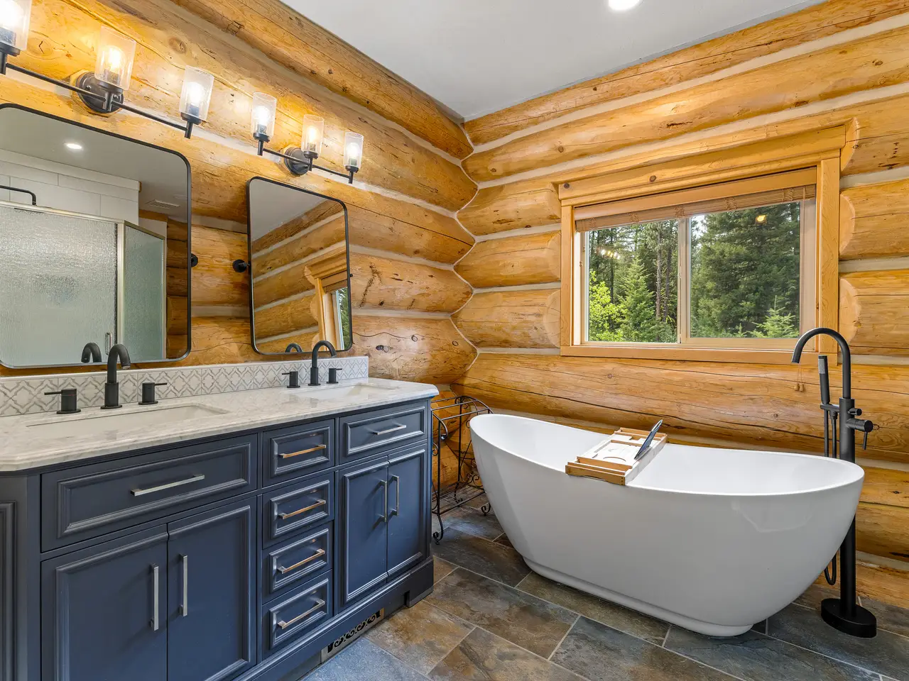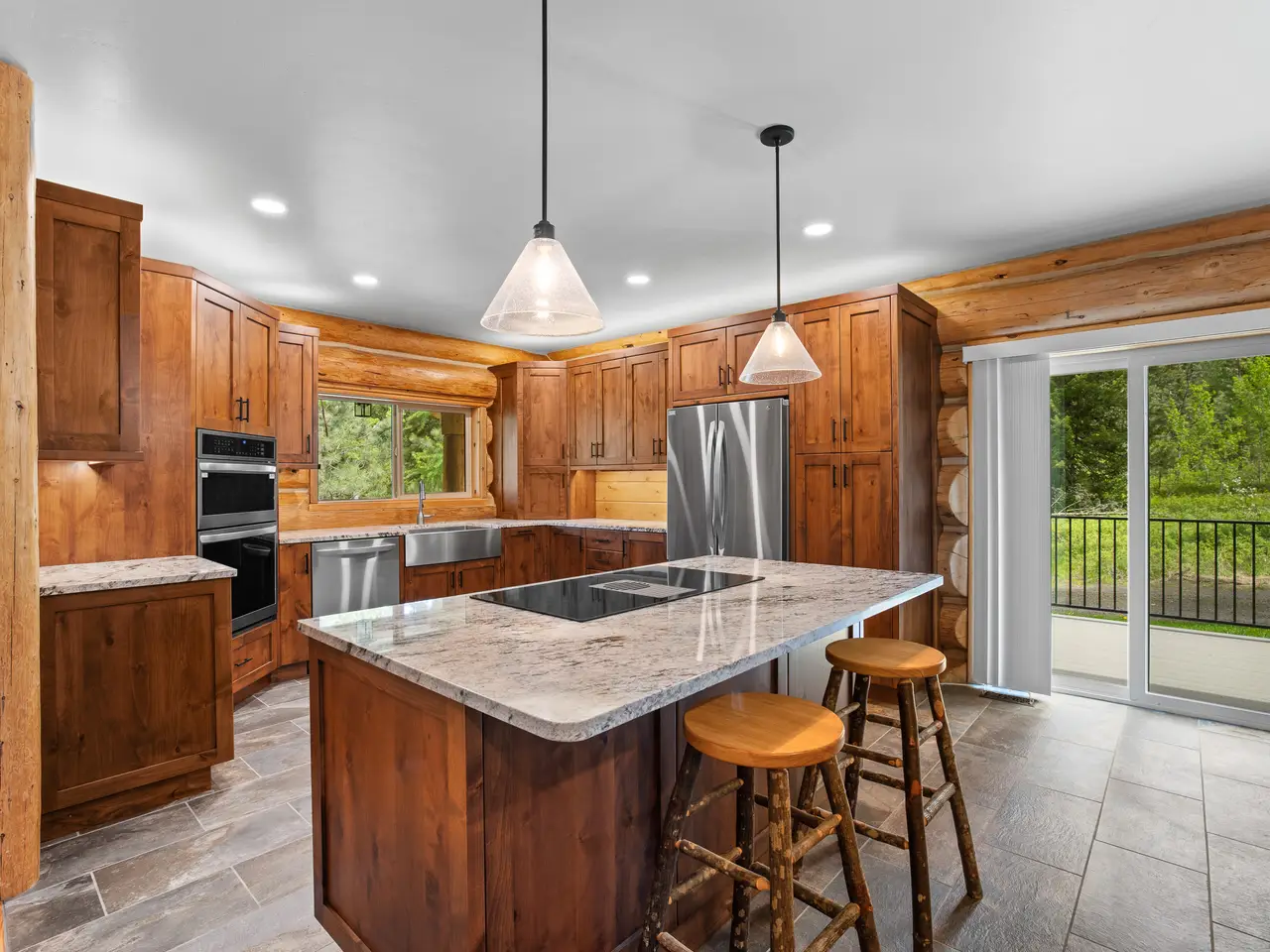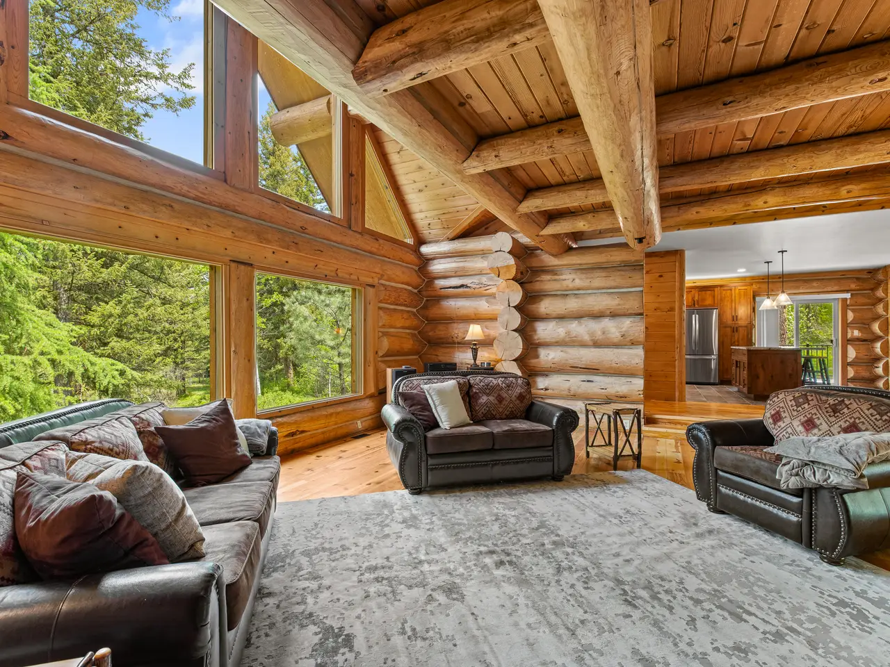 Welcome to this charming log home nestled on a serene four-acre lot, just minutes from Downtown McCall. A meandering drive through a pine forest leads you to this private retreat. The wrap-around deck ushers you into a bright living area with a stunning vaulted ceiling, polished wood floors and rustic log beams. The kitchen serves as the heart of the home, featuring new cabinets and appliances that beautifully combine functionality and style. The main level boasts two full bathrooms and one half bath, all recently remodeled with modern touches and radiant floor heating. You will find three bedrooms, including a luxurious primary suite equipped with an en-suite bath that offers a soaking tub for your relaxation. Upstairs is an open loft.