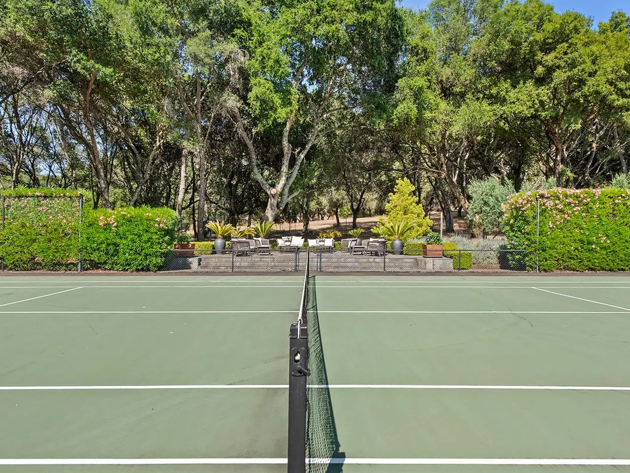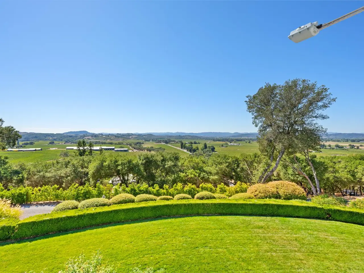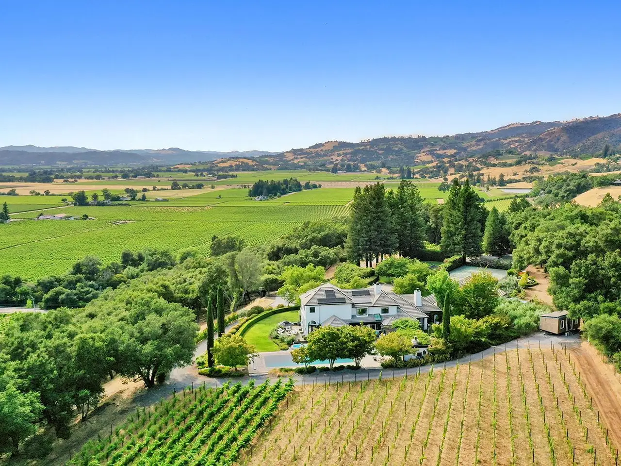 Welcome to 4395 Pine Flat Road, an elegant Healdsburg estate offering some of the most breathtaking views in Sonoma County. Just minutes from downtown yet worlds away, this extraordinary property blends luxury, comfort, and resort-style amenities on 10-plus mostly usable acres. The main residence consists of a four-bedroom, five-bathroom home is designed for both entertaining and everyday living. High ceilings, rich wood floors, and expansive windows frame vineyard and mountain vistas at every turn. Highlights include a Chef's kitchen with bar seating and seamless flow to the outdoor dining pavilion, formal dining room and multiple living spaces including a family room, library/office, gym, and wine cellar, main-level suite perfect for guests or multi-generational living, upstairs primary suite with private balcony, sitting area, and generous storage. A spacious detached studio offers flexible use for guests or extended family. Its outdoor entertainment area, complete with fireplace, is ideal for gatherings under the stars. This estate was made for relaxation and play, featuring a sparkling pool and hot tub, tennis court and bocce court, outdoor kitchen and vineyard-view dining, orchard, rose gardens, and raised garden beds, serene spots for birdwatching or simply doing nothing at all.