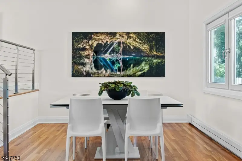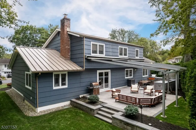 Beautifully updated and thoughtfully designed, this home blends modern style with everyday comfort. Manicured landscaping and a welcoming front porch lead to a spacious interior featuring Porcelanosa tile flooring, recessed lighting, and richly toned hardwoods. Highlights include European tilt-and-turn windows with built-in shades, sleek stainless-steel railings, Metrie modern doors and moldings, a wood-burning fireplace in the family room, a dedicated office, a newly finished lower level, and many automated systems. The open Porcelanosa kitchen is enhanced with designer finishes and flows seamlessly into the living and dining spaces. The primary suite offers custom closets and a private ensuite, while additional bedrooms share an elegant hall bath.The private outdoor oasis is complete with porcelain hardscaping, a retractable awning, and a full outdoor kitchen with pizza oven, Argentinian grill, Heston gas grill, refrigerator, sink, and wood storage. Ideally located near Shepard Kollock Park, walking trails, dog park, and just a short walk to the train.