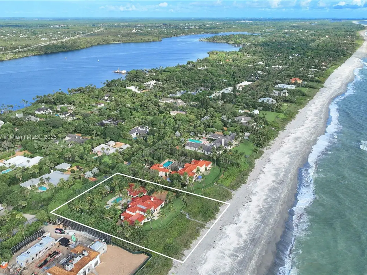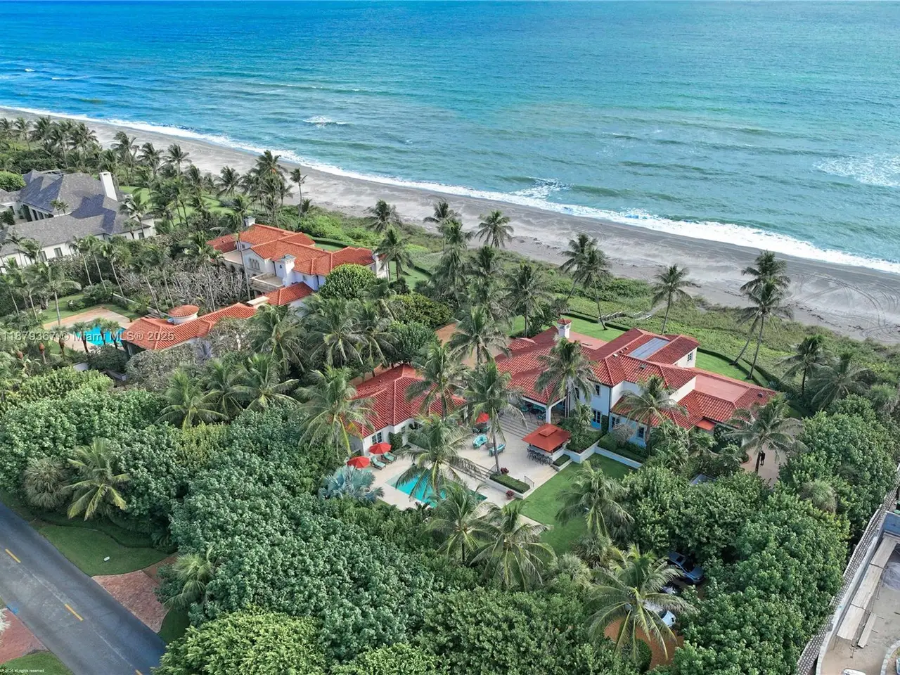 A rare opportunity to own a legacy estate on prestigious Jupiter Island, where timeless Mediterranean architecture meets impeccable craftsmanship. Set on an expansive oceanfront lot, this residence has been thoughtfully designed to balance privacy, comfort, and sophistication, offering both intimate family living and grand-scale entertaining. The main house features a luxurious primary suite complete with dual full bathrooms and a private office, creating a retreat that blends comfort and elegance. Downstairs offers an en-suite guest bedroom and an additional office, along with two half bathrooms for convenience. The lower level includes a rare basement, a versatile and highly desirable feature in South Florida.