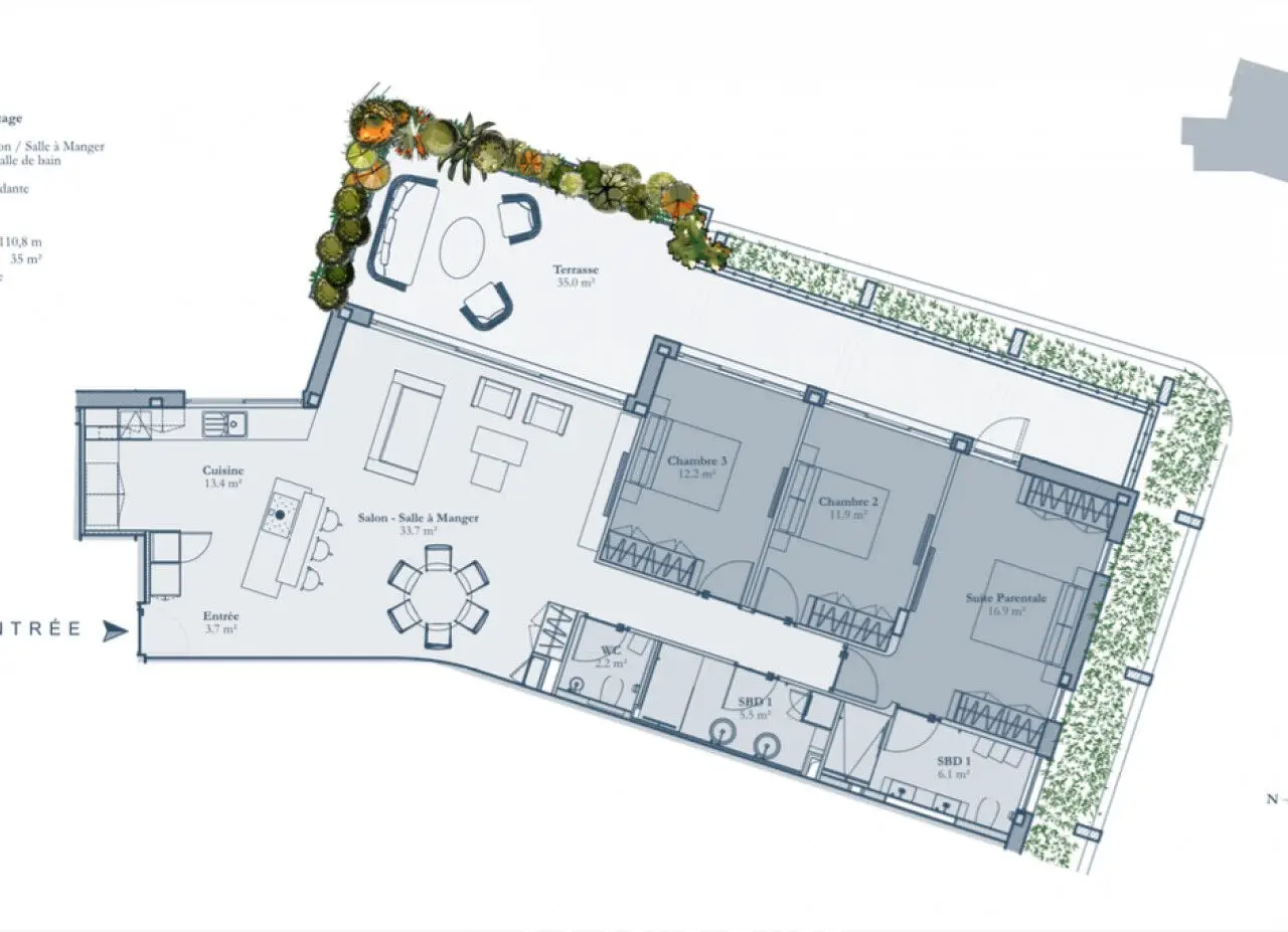 Hikari, an atypical architectural cocoon, a new sensitive and living art of living. We have created a residence which combines traditions and modernity, nature and technology, placing humans and their physical and psychological health at the heart of our concerns. The Sakura collection apartments are distinguished by a vast 35 m2 green terrace. Omnipresent in the home, this sensation of diffuse nature is illustrated in the wall work of Keisuke Noda, Japanese artist and master plasterer, a true living painting of striking beauty, revealing the aesthetic qualities of the earth. Scalable, you can adjust the rooms and furnish them to your liking, or let yourself be seduced by a living space designed for you, turnkey, with its excellent craftsmanship, its Italian interior architecture and its choice of manufacturers. high-end kitchen, storage and bathroom furniture. Household appliances worthy of a professional kitchen, heirs of German know-how in quality and durability, complete the whole. Hikari promotes a peaceful living environment, promoting health and well-being thanks to healthy and renewed air, pure and invigorating water, ideal natural and artificial lighting conditions, heating and cooling solutions inspired by nature. nature, protection against all forms of pollution including electromagnetic. Welcome to Hikari! REF. 6597-D Additional information * 4 rooms * 3 bedrooms * 1 bathroom * 1 bathroom * Floor : 1 * 3 floors in the building * Parking : 1 parking space * 11 co-ownership lots