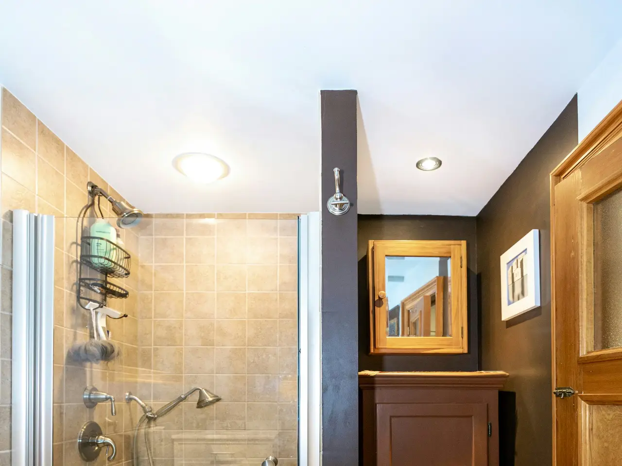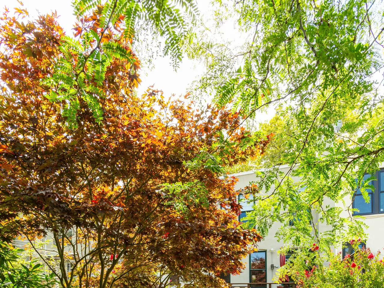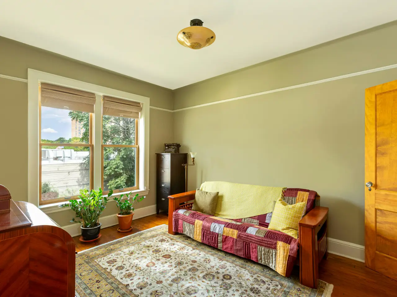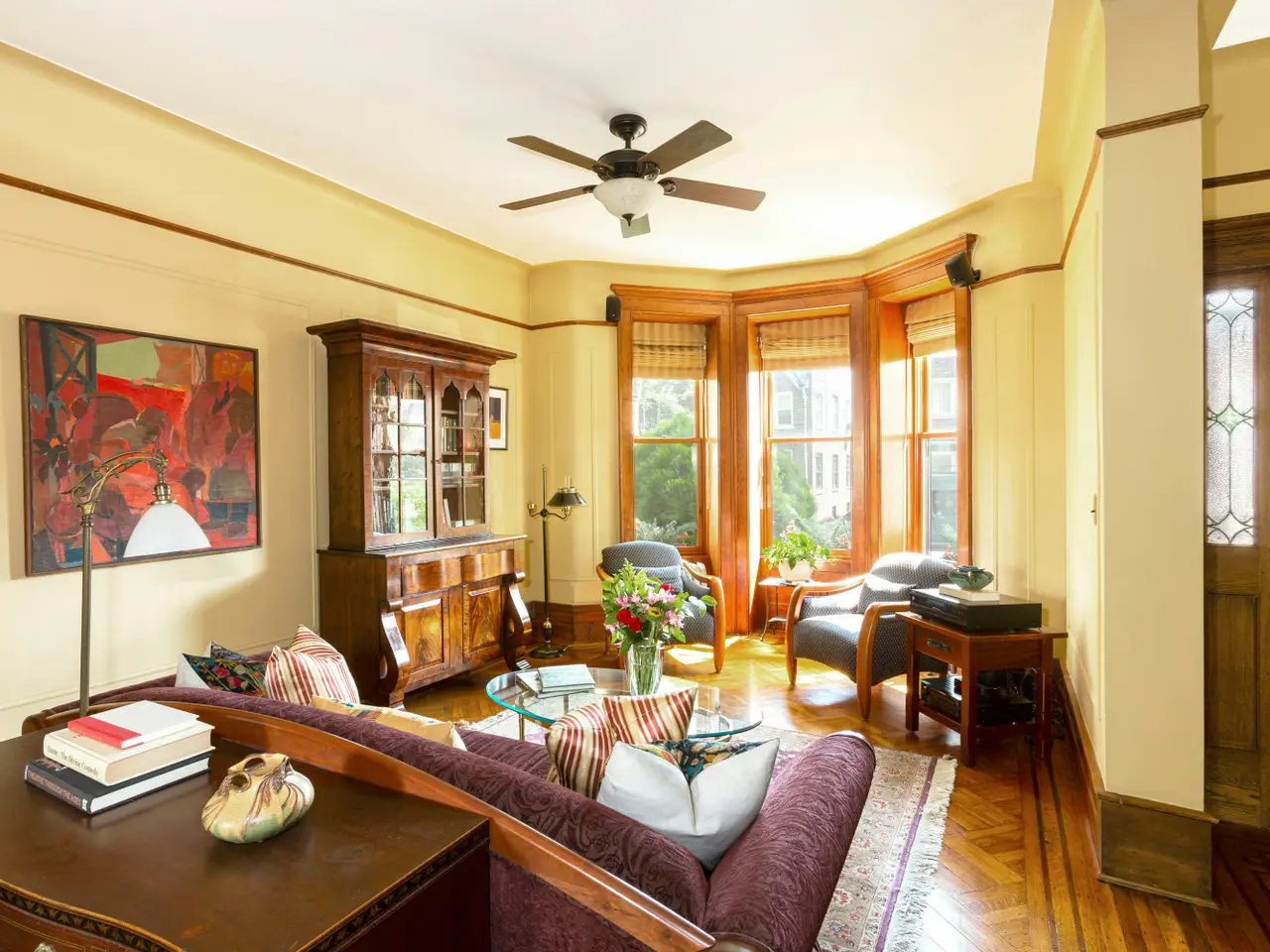 Gorgeous inside and out, this 1910 single-family townhouse is a winner! Lovingly cared for by the current owners over the last 20 years, it's small wonder that it has been included in the PLG House Tour. With its pretty limestone facade, the 1910 home is nestled on a leafy, tree-lined block. Beautifully maintained and preserved, the home retains its pre-war details: all wood moldings, doors, and window surrounds have been stripped and varnished. There are lovely glass-front built-in cabinets in the both the living room and formal dining room. The home's parlor vestibule welcomes you into the large south-facing front living room with its 11-foot-high ceilings and a bay window. There you'll find a handsome mantled decorative fireplace with twin arts and crafts glass-fronted cabinets on each side. Through this room's pocket door arch is the formal dining room with its coffered ceiling. Also on this floor is a split system for cooling in summer, with compressor cleverly hidden beneath the Trex and Ipe wood rear deck, accessed directly through the rear kitchen door.  The renovated double-galley kitchen includes stainless steel appliances: Electrolux stove/oven, Samsung refrigerator and a dishwasher. On the corresponding island peninsula/pass-through counter is a small cocktail sink and plentiful storage in the cabinets beneath. The adjacent windowed dining room has views onto the landscaped rear garden and its two decks, one near and the other at the back of the property.  On the second floor, you will find three bedrooms and a handsome renovated bath with soaking tub and shower, glass-tiled walls and marble accents, floor, and tub surround. There is also covered walls, an electric towel warmer and a pretty vintage-style porcelain pedestal sink. This floor has a stained-glass skylight above the staircase stairwell and three bedrooms, each with closets and a dressing passage with cabinetry between the two larger bedrooms.  The finished basement level functions as a multi-use room, with a washer and dryer; a full second tiled bathroom with shower; a work area and slop sink; a closet and room for storage; multiple cupboards; and a separate entrance under the front stoop entrance. A door at the rear of the basement provides access to the rear garden.  The property boasts mature, well-established gardens in the front and back, all on automated drip systems to minimize your time watering.