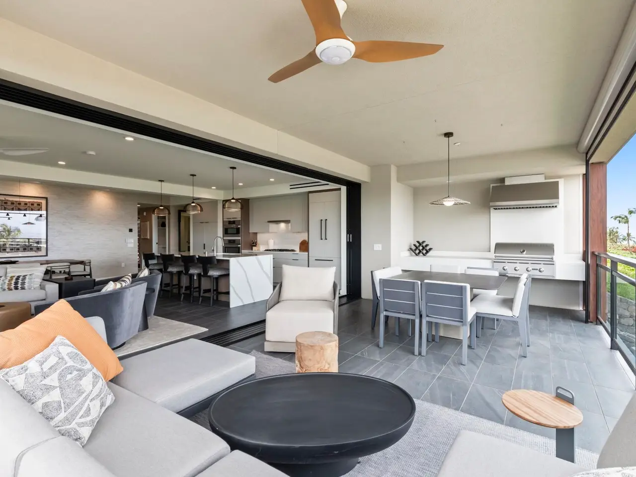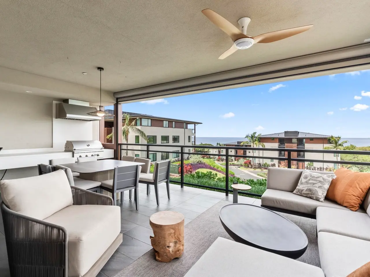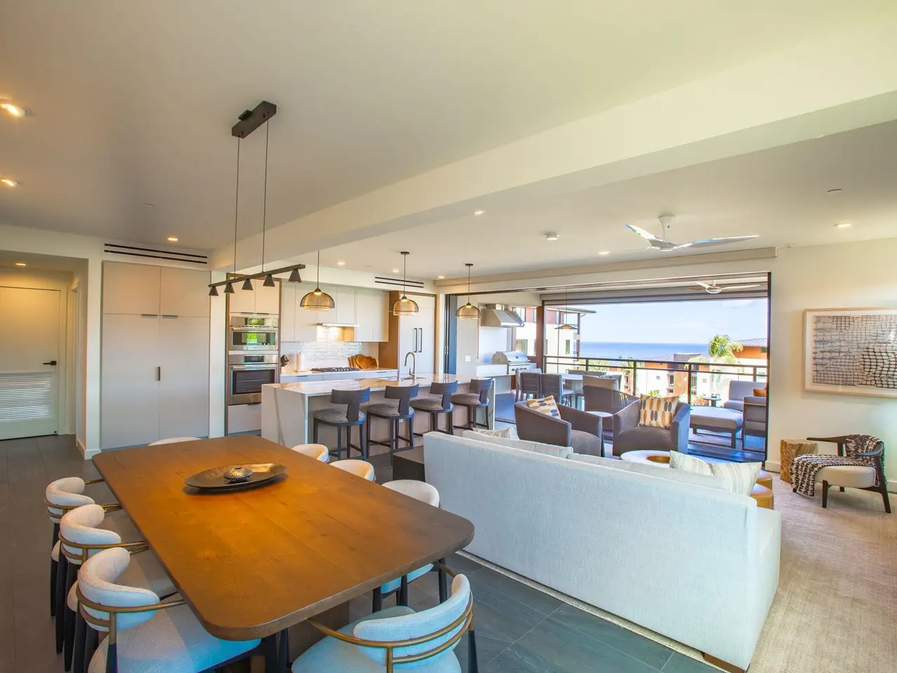 La’i Loa Luxury with Outstanding Ocean View! Wailea’s Newest Development and your golden opportunity to have it all is here! This gorgeous Turnkey Residence in La’i Loa comes with over $400K in luxury furnishings and decor - everything you need to begin the Maui life you’ve earned. Perfectly situated within the community, you will enjoy the pinnacle of island luxury in this exquisite turnkey residence. Upon entry, you can see how thoughtfully designed and lavishly appointed your new Maui home is, all courtesy of Philpotts Interiors. This masterpiece comes fully furnished with high end designer pieces, elegant wallpaper selections, and tasteful, refined finishes throughout. This amazing home is serene yet sophisticated, and the floor plan sits wide to the view, which offers views from all the living areas and the primary suite, which has it’s own dedicated lanai for privacy. A standout feature of this exquisite residence is the seamless indoor outdoor living feel. The wall to wall sliding glass doors retract fully into the wall and open to the oversized main lanai to maximize your Maui lifestyle where you’ll enjoy the built in Coyote gas grill, plus the motorized sunshades on both sides of the huge lanai. The incredible gourmet kitchen features top of the line Bosch Benchmark appliances including refrigerator, cooktop, range, microwave, and built in wine refrigerator, plus Fisher and Paykel two drawer dishwasher - everything you need for day to day living or upscale entertaining. Perfectly positioned near the world class amenities center, you will enjoy effortless access to the huge resort style pool with infinity edge and an additional dedicated lap area to one side, state of the art fitness center, steam and sauna in the facilities, plus beautiful covered and uncovered entertaining areas. Additional highlights include a giant storage room for the home, underground garage parking plus an additional dedicated parking space ground level, and elevator convenience on every level. Your new Maui home awaits with luxurious finishes and thoughtful design throughout - this home is truly move in ready - and offering the very best of the Wailea Resort Lifestyle and access to the best of the world class beaches, restaurants, and shopping in Hawaii. It is time to live the life you’ve earned!
