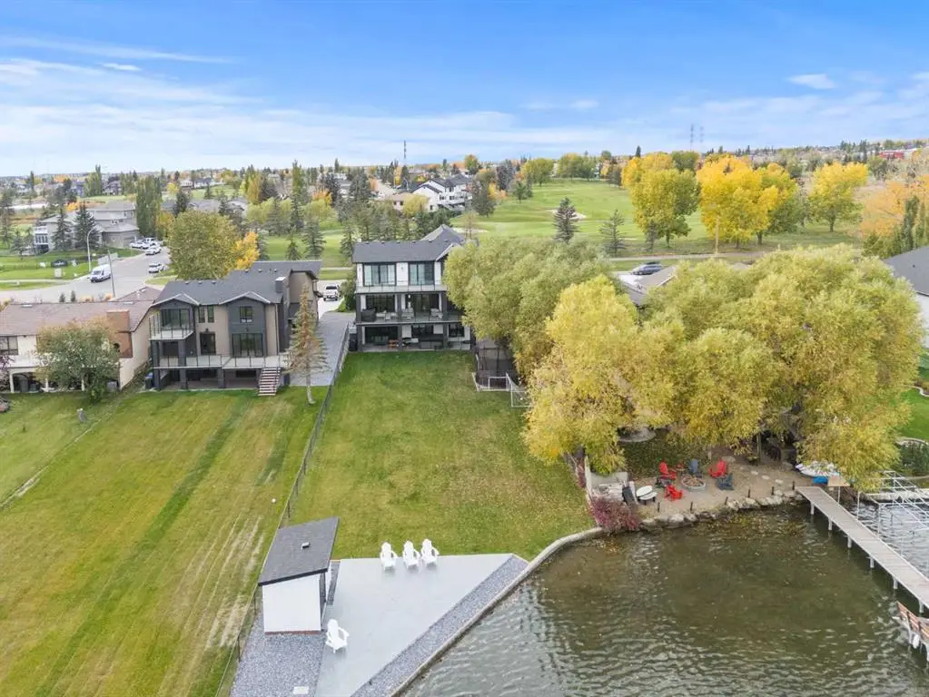 Discover the perfect blend of luxury and lakeside living at 336 West Chestermere Drive. This lakeside gem offers the ultimate retreat with stunning lake views and an array of premium upgrades throughout. Perfectly designed one of a kind home for those who love to entertain or simply savor serene lake living on one of the largest lots on the lake. This home will WOW you from the moment you walk in offering 4200 sqft of luxurious finishing. The main floor plan offers an open concept with 10'0 ceilings that gives you an unobstructed view of the 750 acre lake. Gourmet kitchen equipped with state-of-the-art appliances, custom cabinetry ,10'0 Island and a massive pantry not to forget the pot filling faucet. The mud room comes with built in cabinetry and coat racks leading you to a 4 Car garage with epoxy flooring (23x42) with a mezzanine for additional storage. There is also room to park 4 vehicles in the driveway. Enjoy the views of the golf course while working from the main floor den. Upstairs you will find a total of 4 bedrooms, 2 of which are primary suites with 2 more in the basement. The Grand Primary suite has in floor heating, a free standing tub, steam shower and a heated towel holder. Custom walk in in closets for every bedroom. There is a collection of 4.5 elegantly appointed bathrooms in this home. You will definitely want to take advantage of the upper and lower East Facing wrap around decks with gas hookups for heaters and barbecues. Enjoy listening to music from both the interior and exterior speakers. Laundry is conveniently located upstairs along with a bonus room with access to upper balcony. Downstairs you will find another recreation room with wet bar , 2 more bedrooms and 9 foot ceilings. Enjoy the natural light from all the windows on all 3 levels. and the high end blinds throughout. The walkout basement takes you to the fully landscaped yard with an irrigation system with mature trees and a new hot tub. There is a brand new dock and boat lift with a storage shed with electricity to store your summer toys. This truly is one of the best walkout lots on the lake that is turn-key move in ready and enjoy lake living. There is both a sea doo lift and a boat lift with remote to accommodate larger boats and keep them covered from the elements. This home is still covered under New Home Warranty. Call your Favourite realtor to view this amazing lakefront property as this one will not last!