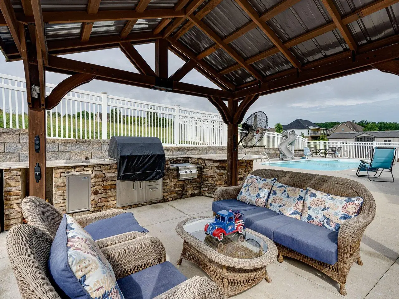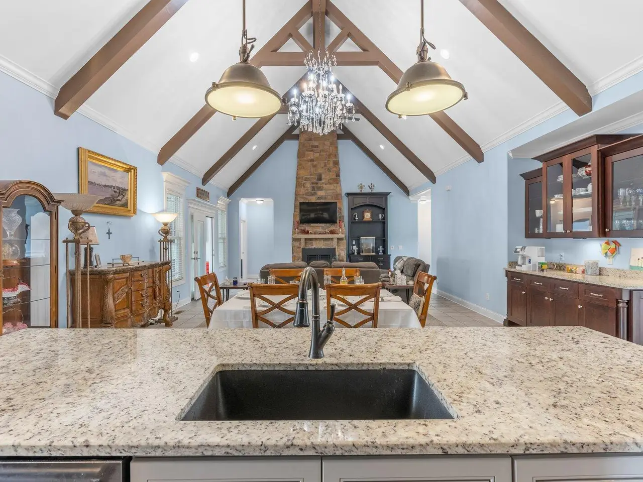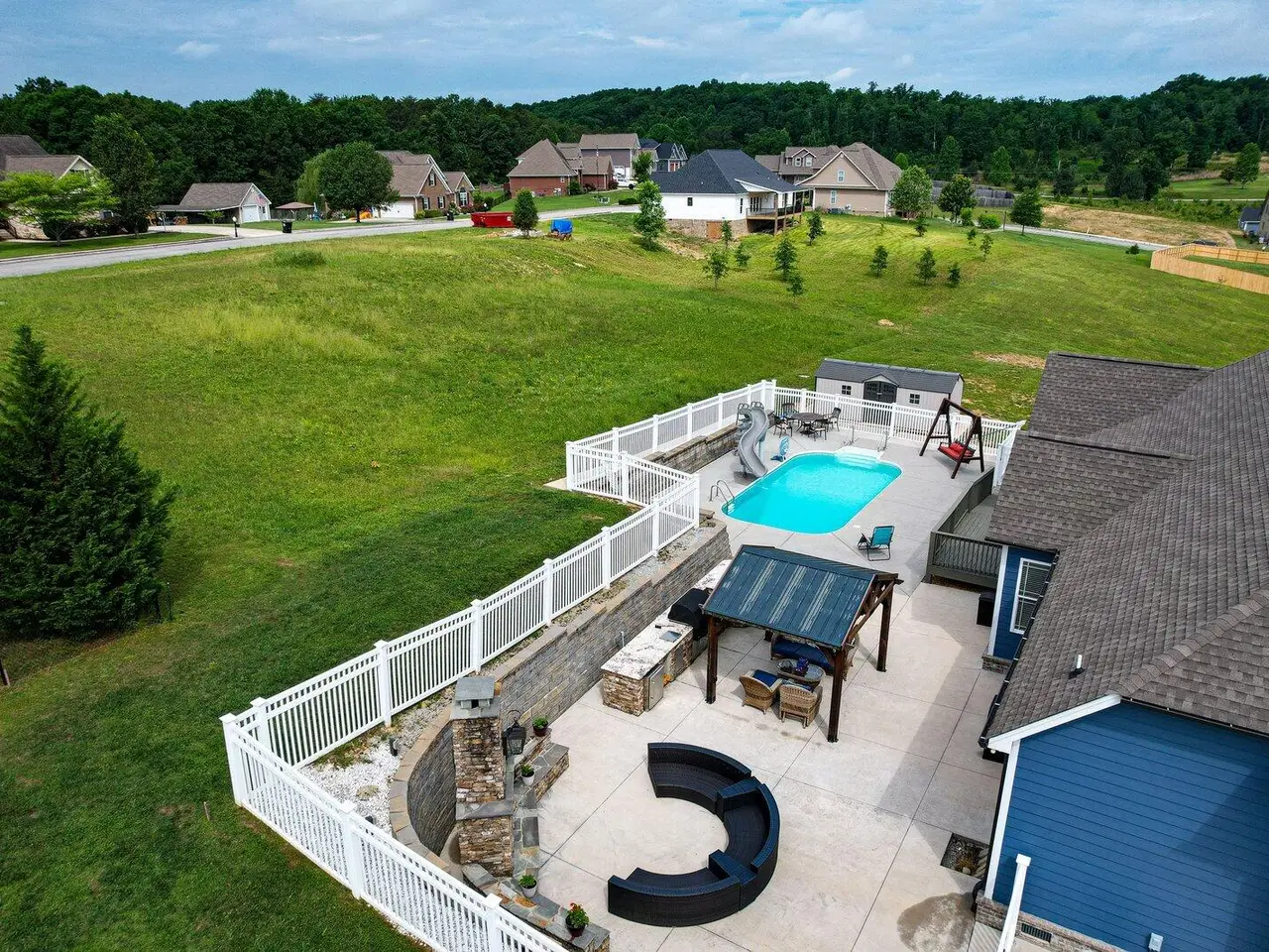 OPEN HOUSE JUNE 23RD 2:00-4:00 PM PRICE IMPROVEMENT!!! WELCOME to this stunning custom built, one owner home! From the impressive outdoor fountain with shrubs to the backyard that invites you to stay and play! This home has a space for all your wants and needs. Entering from the foyer you can't help notice the spacious open floor plan with a gathering room and soaring ceilings, floor to ceiling fireplace, built-in cabinetry, connecting dining area, adjoining kitchen with granite countertops, cabinetry galore, extra large island that allows you to be a part of everything while in your kitchen includes wall oven, microwave, refrigerator, dishwasher, breakfast nook, and beverage center. The office, 2 or 3 main level guest bedrooms (current owner utilizes one of the bedrooms as a game room), Jack n Jill bath,, hallway half bath, and a large laundry/pantry. The private owner's suite includes an oversized jetted tub, walk-in shower (rain shower), and walk-in closet. Before exiting to the backyard don't forget the activity room with a wet bar and refrigerator. Located on the second level is a bonus room/multi-purpose with a full bath. The walk out attic is located on this level also, so no climbing wobbly attic steps to store your items. Next to the backyard area...salt water pool, slide, full outdoor kitchen, fireplace -gas or wood, gas grill, storage building, and ornamental fence surround this outdoor space where you will want to spend those warm summer days. Additionally, in 2018 the owner's had a vapor barrier installed. The water heater is gas tank-less & continuous...so you never run out of hot water! The front and back doors ( West Shore Home) and several windows (Renewal by Anderson-lifetime transferable warranty) were recently upgraded. More of the custom features are 36'' doorways and several ramps. The garage will accommodate 2 vehicles, with parking in the driveway or side entrance to the home.. THIS IS A MUST SEE!! Buyer is responsible to do their due diligence to verify that all information that is pertinent to them.