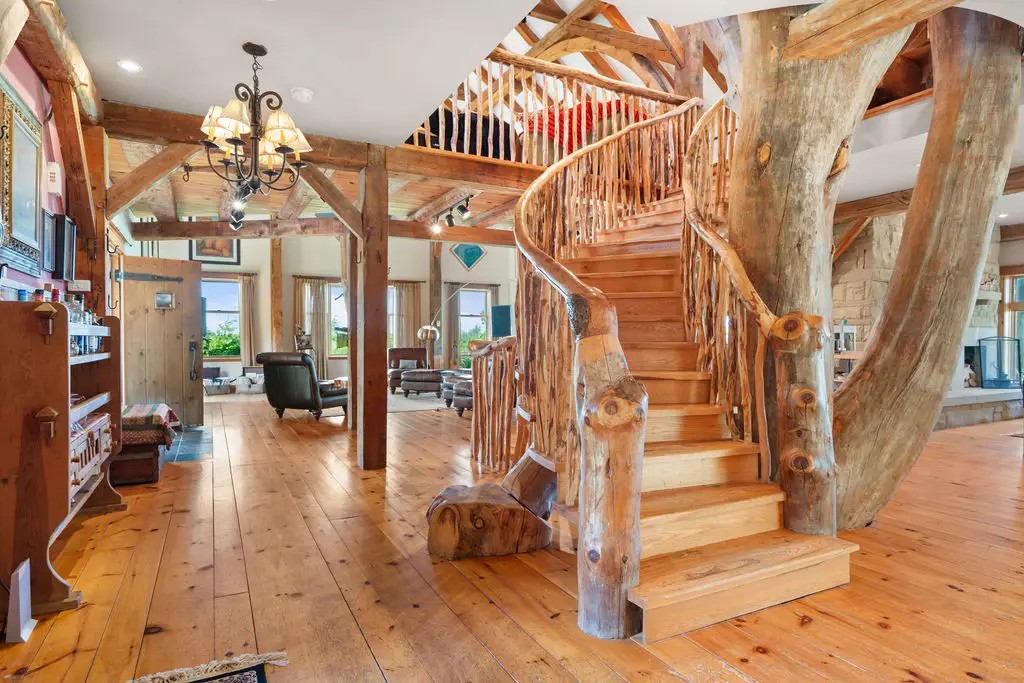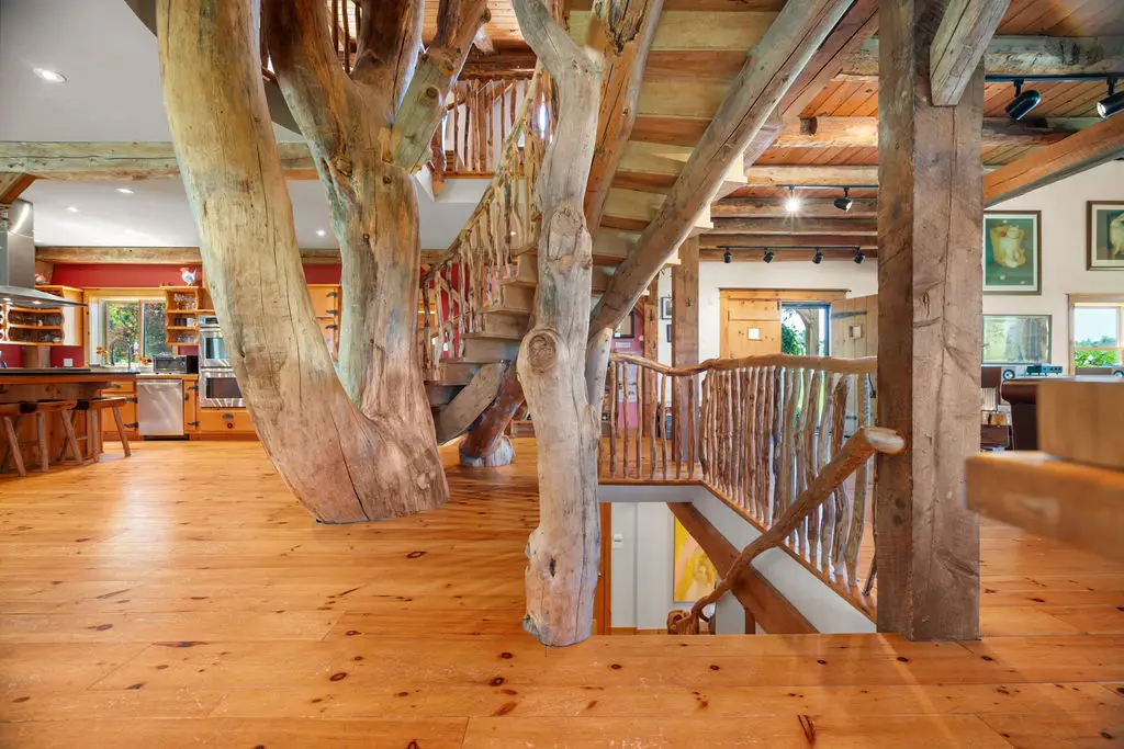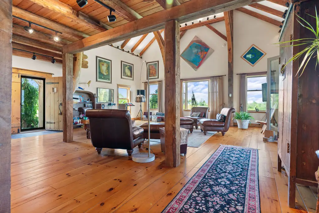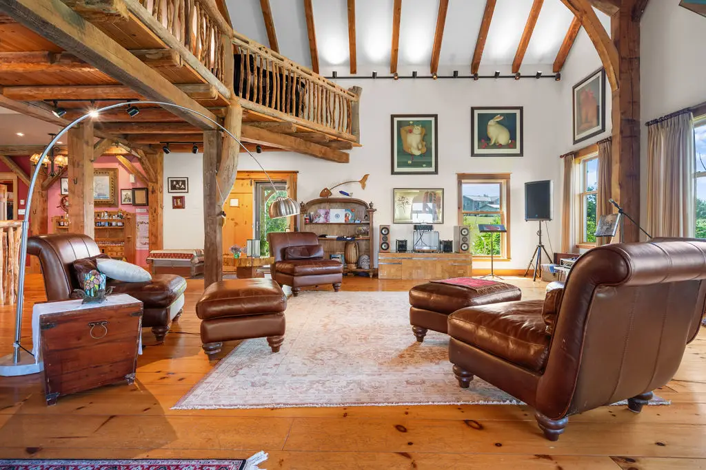 Uncover the unparalleled charm of this extraordinary five bedroom, five bath timber framed home, meticulously crafted from salvaged barn wood and adorned with beams from historic barns. Central to its design is a majestic white pine tree over a century old, adding a touch of heritage to this architectural gem spanning about 6,000 square feet. Currently serving as a family residence, this unique property also offers commercial potential. Located near Melmerby Beach and a short drive from Trenton airport, as well as within reach of the international airport and prestigious golf courses, this residence provides a serene escape with convenient access to amenities and attractions. The main level's open concept boasts cathedral ceilings, exposed beams, and exquisite wood floors. The kitchen features soapstone countertops, while a spacious dining room, office, and family room with a grand sandstone fireplace, offer stunning views of the Atlantic. The second floor includes a balcony overlooking the great room and the primary bedroom with a fireplace, walk-in closet, balcony, and lavish ensuite bathroom. The third floor offers another bedroom and sitting area. The lower level encompasses three bedrooms, two baths, a sauna, a games/exercise room, a theater, and multiple fireplaces. Each level's outdoor deck provides ample space for leisure and gatherings. The master bath showcases slate-tiled shower walls for added luxury. With its distinctive attributes, flexible layout, and prime location, this property offers a rare opportunity for those seeking a unique living or business environment. An outdoor fireplace on the main level enhances the property's appeal, creating a cozy setting for outdoor activities and relaxation. With almost 2.3 acres and access to a lovely beach to moor your boat and swim, enjoy East Coast living. Watch the fishers from your balcony and call them to have lobster delivered to your door. Explore the Walk-Thru (Matterport) here, or contact for private viewing.