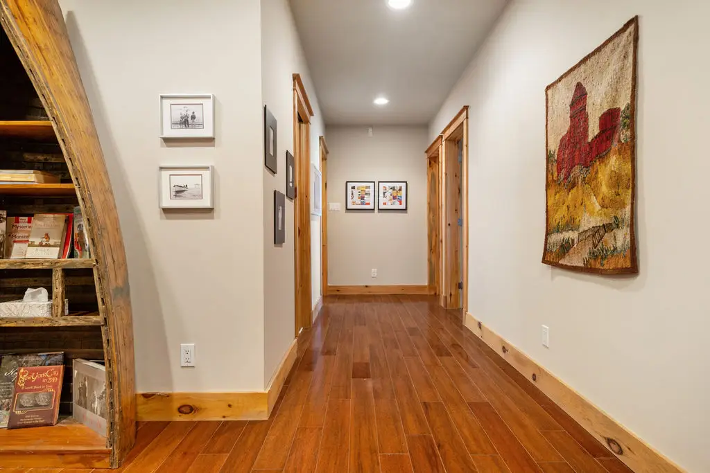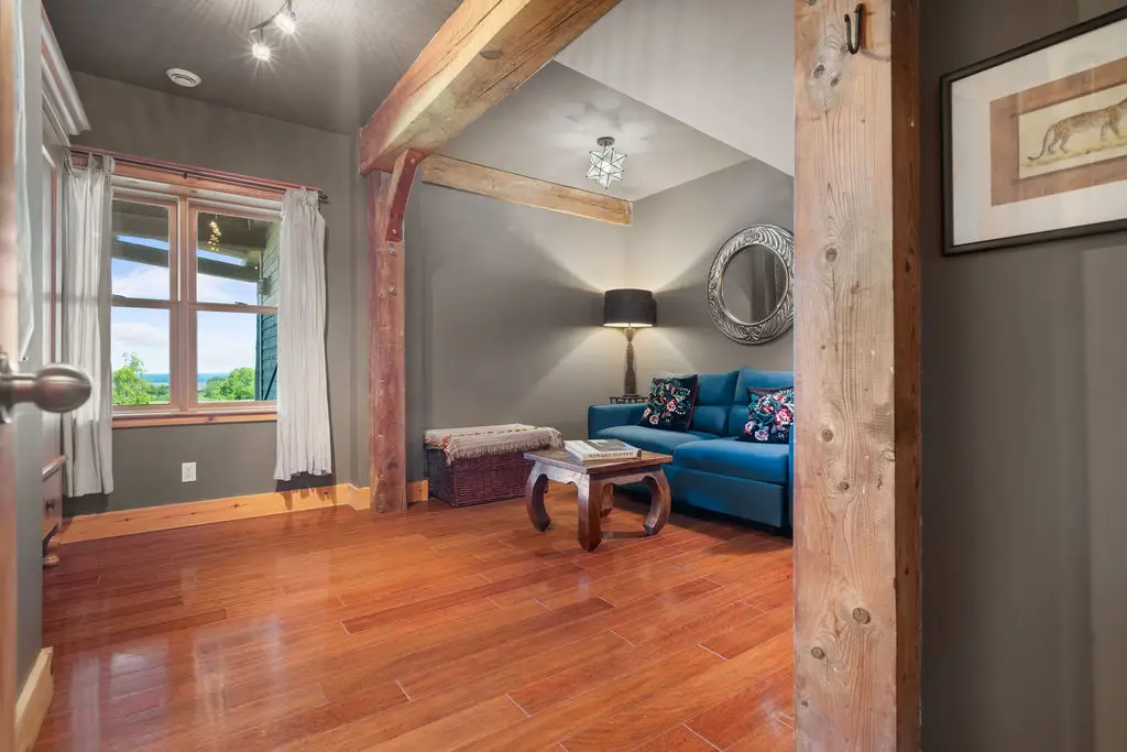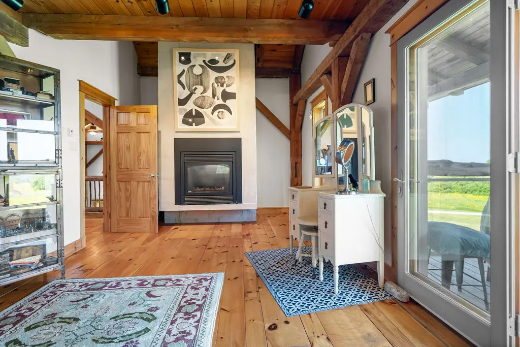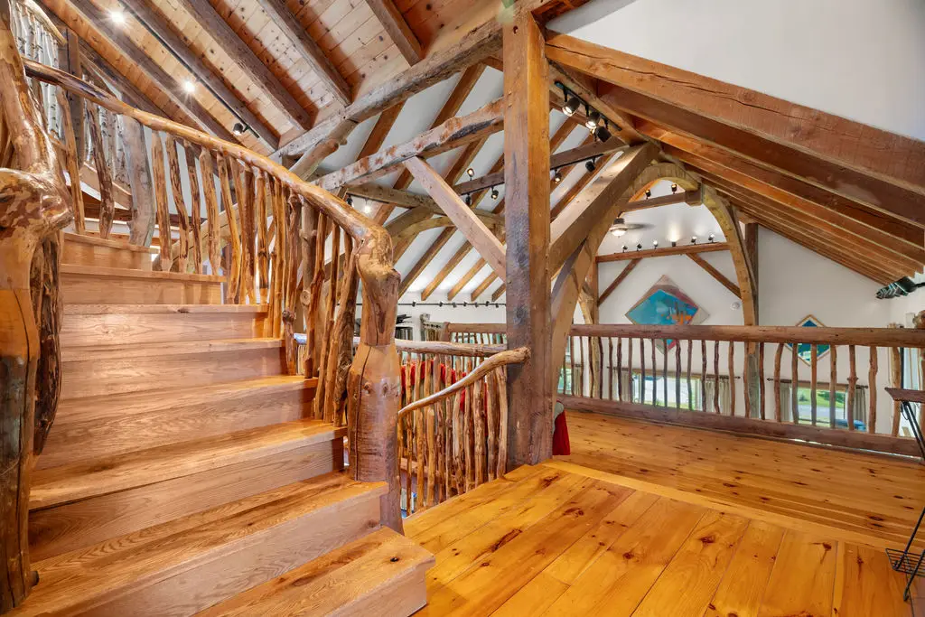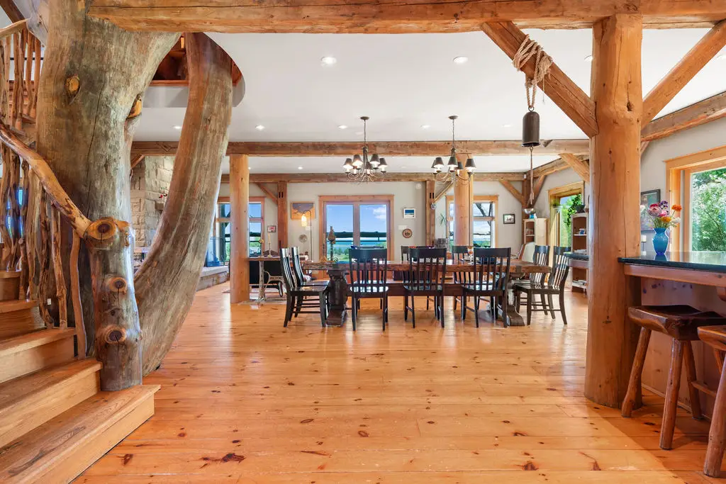 Uncover the unparalleled charm of this extraordinary five bedroom, five bath timber framed home, meticulously crafted from salvaged barn wood and adorned with beams from historic barns. Central to its design is a majestic white pine tree over a century old, adding a touch of heritage to this architectural gem spanning about 6,000 square feet. Currently serving as a family residence, this unique property also offers commercial potential. Located near Melmerby Beach and a short drive from Trenton airport, as well as within reach of the international airport and prestigious golf courses, this residence provides a serene escape with convenient access to amenities and attractions. The main level's open concept boasts cathedral ceilings, exposed beams, and exquisite wood floors. The kitchen features soapstone countertops, while a spacious dining room, office, and family room with a grand sandstone fireplace, offer stunning views of the Atlantic. The second floor includes a balcony overlooking the great room and the primary bedroom with a fireplace, walk-in closet, balcony, and lavish ensuite bathroom. The third floor offers another bedroom and sitting area. The lower level encompasses three bedrooms, two baths, a sauna, a games/exercise room, a theater, and multiple fireplaces. Each level's outdoor deck provides ample space for leisure and gatherings. The master bath showcases slate-tiled shower walls for added luxury. With its distinctive attributes, flexible layout, and prime location, this property offers a rare opportunity for those seeking a unique living or business environment. An outdoor fireplace on the main level enhances the property's appeal, creating a cozy setting for outdoor activities and relaxation. With almost 2.3 acres and access to a lovely beach to moor your boat and swim, enjoy East Coast living. Watch the fishers from your balcony and call them to have lobster delivered to your door. Explore the Walk-Thru (Matterport) here, or contact for private viewing.