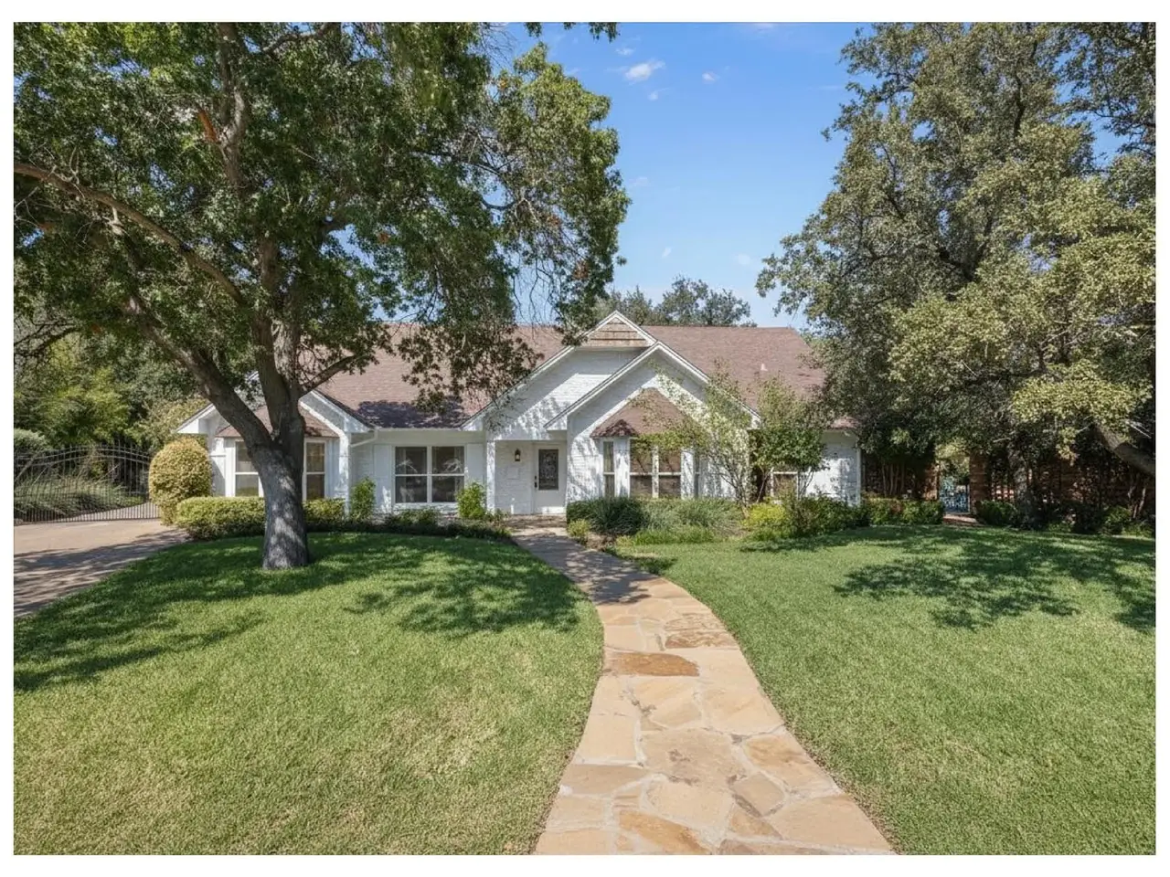 Nestled at the end of a quiet cul-de-sac in one of Fort Worth's most sought-after neighborhoods, this expansive residence offers almost 6,200 square feet of living space on nearly half an acre, zoned to acclaimed Overton Park Elementary. Designed for both grand entertaining and everyday living, the home features six bedrooms, five full and one half baths, and four spacious living areas. Enjoy multiple gathering spaces including a formal living, den with fireplace, family room with wet bar, and an oversized game room that easily accommodates a pool table and more. The formal dining and breakfast rooms provide flexibility for both casual and elegant meals. Upstairs, the primary suite is a true retreat with its own fireplace, four closets, a private office with abundant storage, and an adjacent bedroom with its own ensuite bathperfect for a nursery or private guest suite. There is hallway access to this guest room in addition to the primary suite. The backyard is an oasis with a sparkling pool, spa, lush landscaping, and three distinct outdoor areas for entertaining or relaxing. Mature palms, multiple bay windows, and generous natural light create a warm, inviting atmosphere. Additional highlights include a bathroom with pool access, a copper farmhouse sink, abundant parking behind the gated drive, as well as an attached two-car garage. With its remarkable square footage, flexible floor plan, impressive footprint in the center of the pie shaped lot, and prime location, this property presents an incredible opportunity to customize and create a dream home in the heart of Fort Worth.