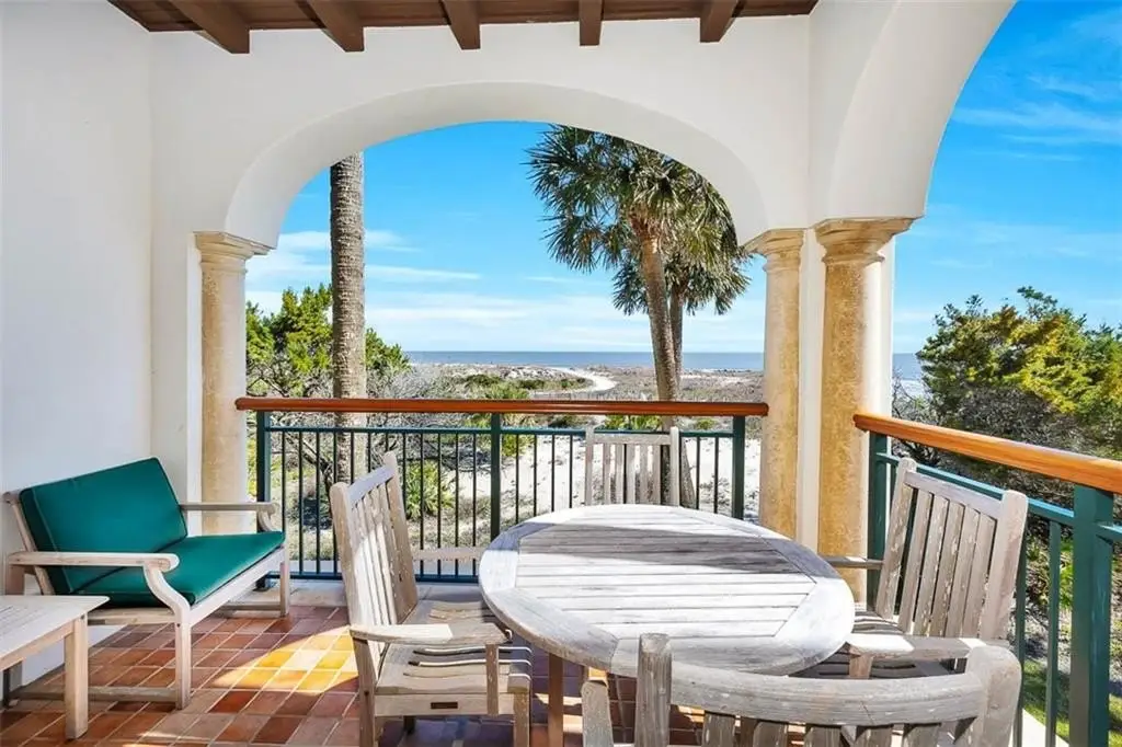 Breathtaking ocean and beach vistas from this only-one-of-its-kind Cloister Ocean Residence! Residence 17 is a corner second story residence with sweeping easterly AND southerly full oceanfront views, and is the largest one-bedroom residence at the gated Cloister Ocean Residences. In addition, it is the only one-bedroom residence that features a lockout bedroom with its own private entrance -- offering more rental versatility, as well as more space and privacy for you and your guests! Elegance meets charm with the timeless appeal of beamed ceilings, adding character and warmth to this beautifully furnished coastal haven. The spacious corner bedroom boasts a magnificent ocean and expansive beach panorama, a luxurious ensuite full bath and dressing area, and a private balcony offering gorgeous sunrise views. Enjoy the continuous unparalleled views from the adjacent separate living area that features a large living room with pullout sofa, full bath, fully equipped open kitchen with countertop dining, washer/dryer, and separate dining area. Al fresco oceanfront entertaining or dining awaits from the second private balcony complete with outdoor patio table and chairs. This residence provides the unique ability to privately access and lock the bedroom and adjoining living area separately. Not only does this allow you and your guests additional privacy, but it provides potentially greater rental opportunity because it can be rented out a standalone king bedroom or as a full bedroom suite with living area if you choose to participate in the Sea Island Rental Program. This residence includes access to private, climate-controlled owner storage, and is your turnkey opportunity to enjoy Sea Island beachfront living at its finest. Ownership includes a Full Sea Island Club Membership and Chairman's Club Membership in the Third Home Travel Club. Gated oceanfront private amenities include infinity-edge pool and spa pavilion overlooking the ocean, grilling area, Owner's lounge, and direct beach access to miles of private beach. Ownership also includes access to the Sea Islands' World-Class Golf, Sea Island Beach Club, Spa and Fitness Center, Yacht Club, Shooting School, Equestrian Activities, Dining and Children's Programs. DEEDED QUARTER OWNERSHIP. Optional Sea Island Rental Program.