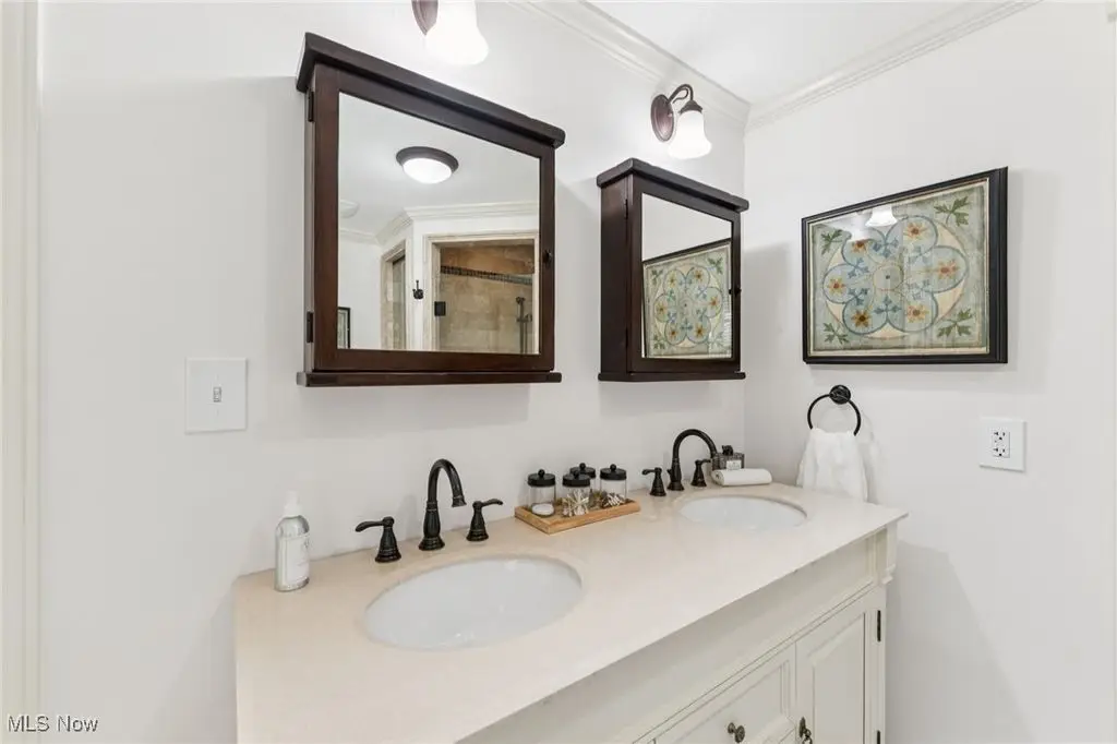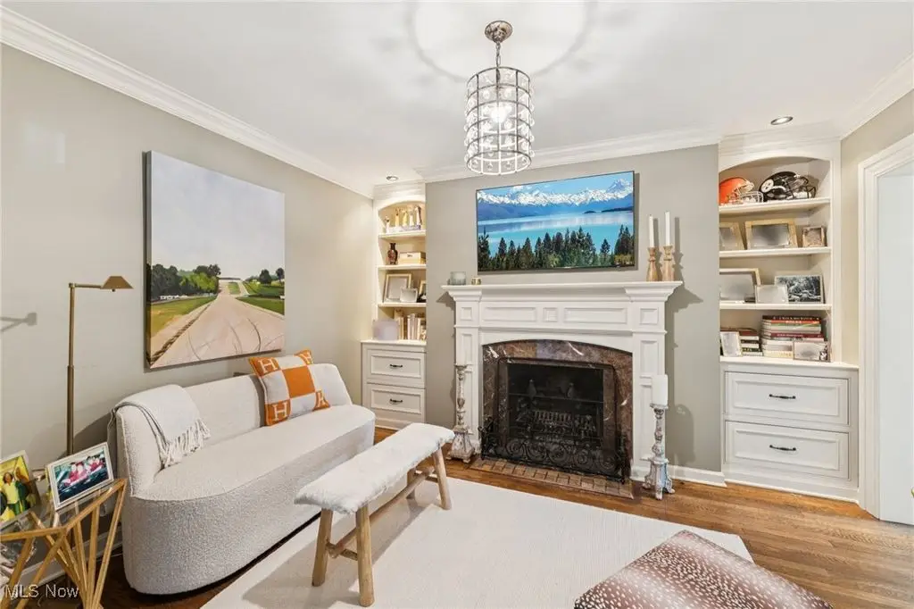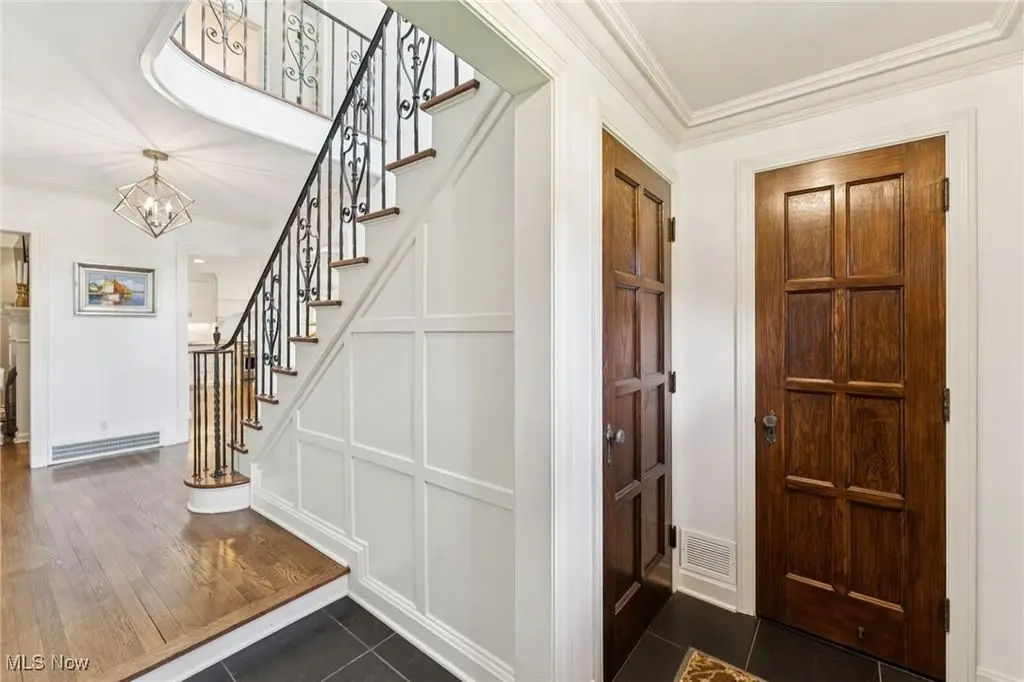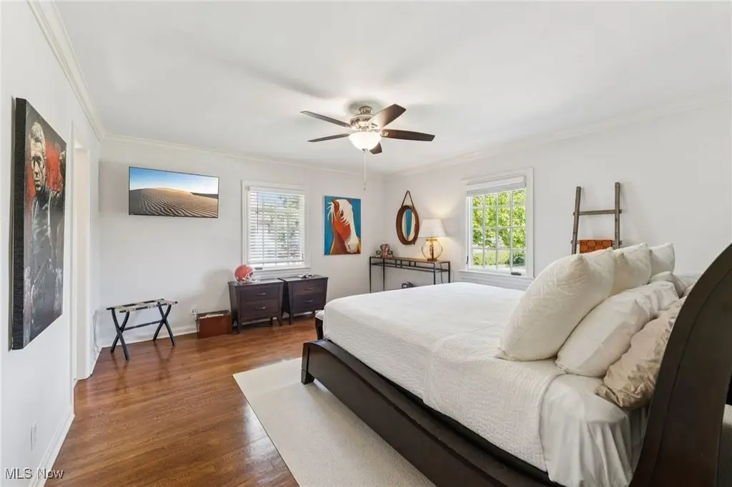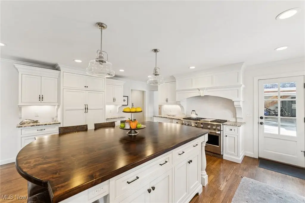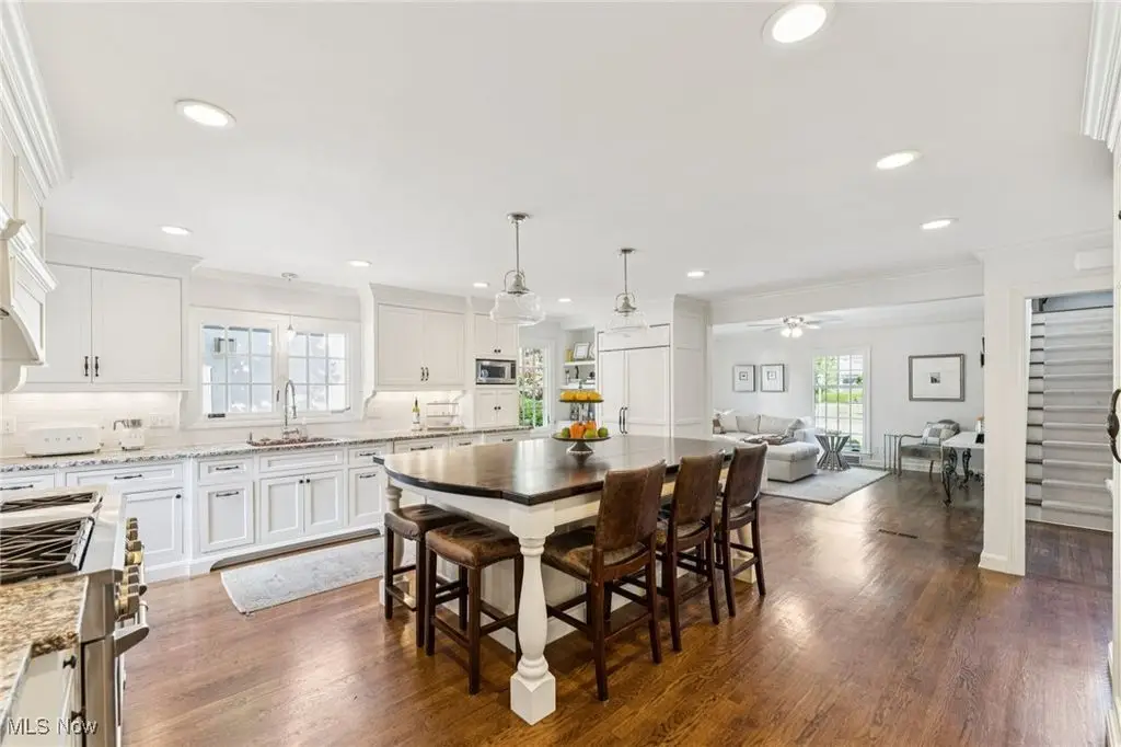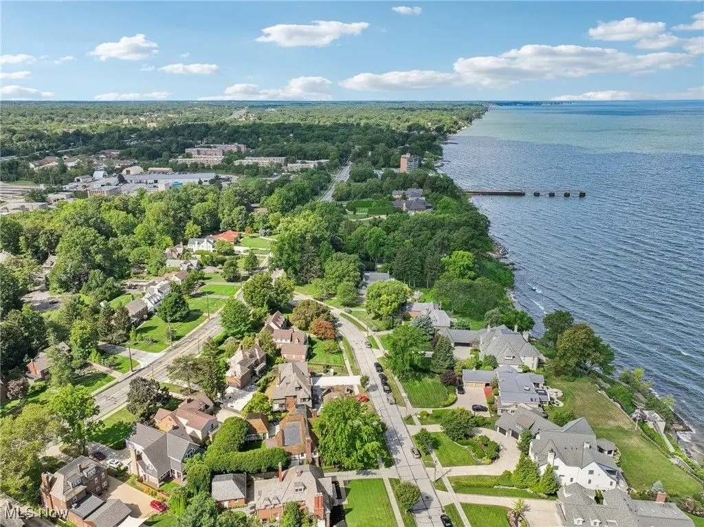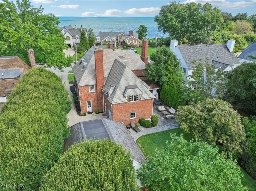 Welcome to a truly exceptional residence on one of Rocky River's most prestigious and sought-after streets. Recently refreshed with modern finishes, an open-concept floor plan, fresh paint, and new landscaping, this home effortlessly blends timeless architecture with today's style and comfort. What truly sets this property apart is its rare position on the coveted south side of the street a vantage point that offers unique sightlines and serene views of Lake Erie. Opportunities to own a home with this location and these views are seldom available, making it a truly special offering. Inside, rich hardwood floors, intricate millwork, and multiple fireplaces highlight the home's historic charm. Sun-filled formal living room and family room sets the stage for gatherings, while the office with French doors opening to a lovely patio offers a private spot to work. The outdoor space is complete with a built-in grill and cooking station, ideal for summer evenings. At the heart of the home is a stunning Amish-built kitchen, featuring a massive island that seats seven, state-of-the-art appliances, and custom baking/coffee stations. Just off the kitchen, a thoughtfully designed mudroom includes a walk-in pantry, wet bar, and plenty of space to stay organized. Upstairs, the serene primary suite is a true retreat with a domed ceiling, fireplace, spa-like bath, and tranquil lake views. Two additional bedrooms share a Jack and Jill bath, while a spacious office/media room offers flexibility. The third floor provides two charming bedrooms and a full bath perfect for teens or guests. The finished lower level adds another fireplace and large rec room for movie nights or casual entertaining. With its stately brick exterior, slate roof, meticulous landscaping, and its rare, highly desirable location offering elevated views, this residence combines old-world craftsmanship with modern updates appealing to the most discerning buyer who values both sophistication and exclusivity.