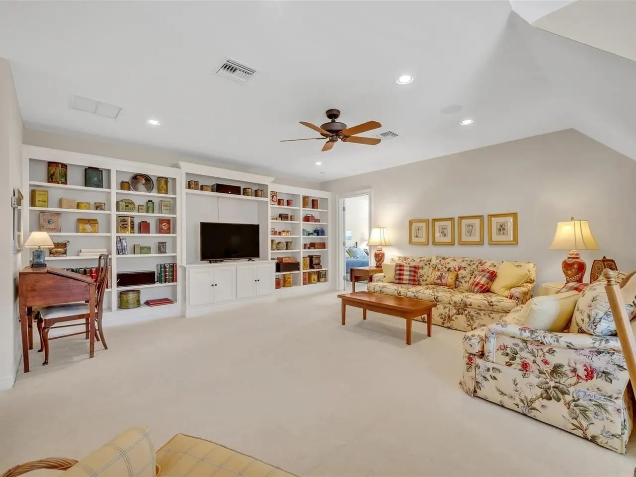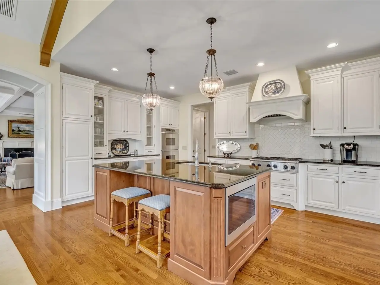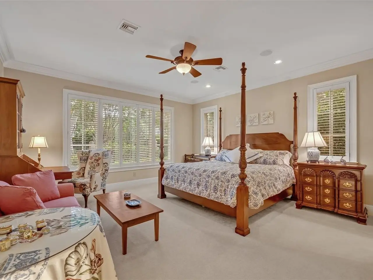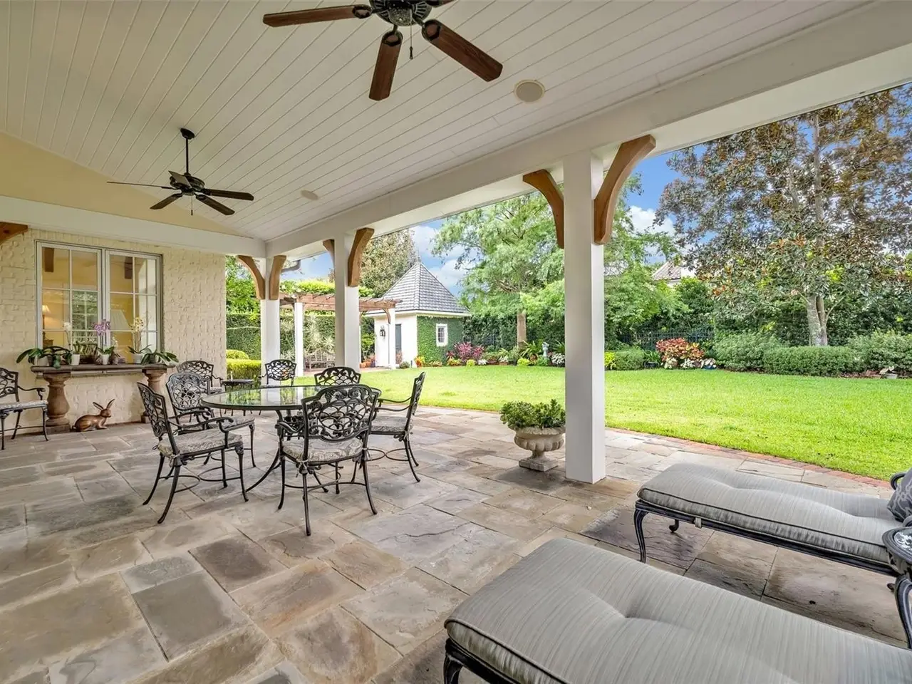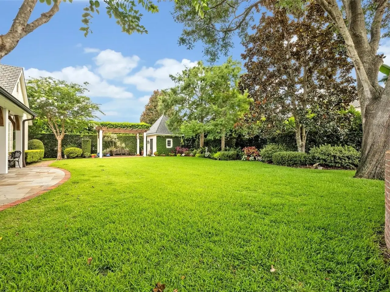 Stunning custom residence in the highly sought-after Windsong community, built by Hal George of Parkland Homes and designed by architect Steve Feller. This one-owner home blends timeless architecture with exceptional craftsmanship and thoughtful design. From the moment you arrive, the storybook curb appeal is undeniable—brick exterior and driveway, lush landscaping, and charming gardens create a warm welcome. Inside, luxury finishes abound: herringbone wood floors, crown molding, cased openings with arched doorways, custom built-ins and plantation shutters. The highly functional floor plan offers a downstairs owners’ suite plus a secondary bedroom (currently used as an office) with adjacent full bath. Upstairs, a spacious bonus room anchors two private bedroom suites. Soaring 10’ ceilings enhance the sense of space, with lots of natural light. The gourmet kitchen is a chef’s dream, featuring wood custom cabinetry, stainless steel appliances including a six-burner gas cooktop and Dacor double ovens, and an oversized island with sink. The kitchen flows seamlessly into the sunlit dining room with a dramatic vaulted 14’ beamed ceiling, comfortably seating 15. Set on a generous 0.38-acre lot, the outdoor living is equally impressive. The resort-style backyard showcases a covered patio with Pennsylvania Bluestone pavers, tongue-and-groove ceiling, and a charming detached garden house for storage. A serpentine wall winds gracefully through the landscaped grounds, offering privacy and charm. Additional highlights include an oversized two-car garage, indoor laundry with sink, and abundant storage throughout. A rare opportunity to own a meticulously maintained, beautifully appointed home in one of Winter Park’s most desirable communities.