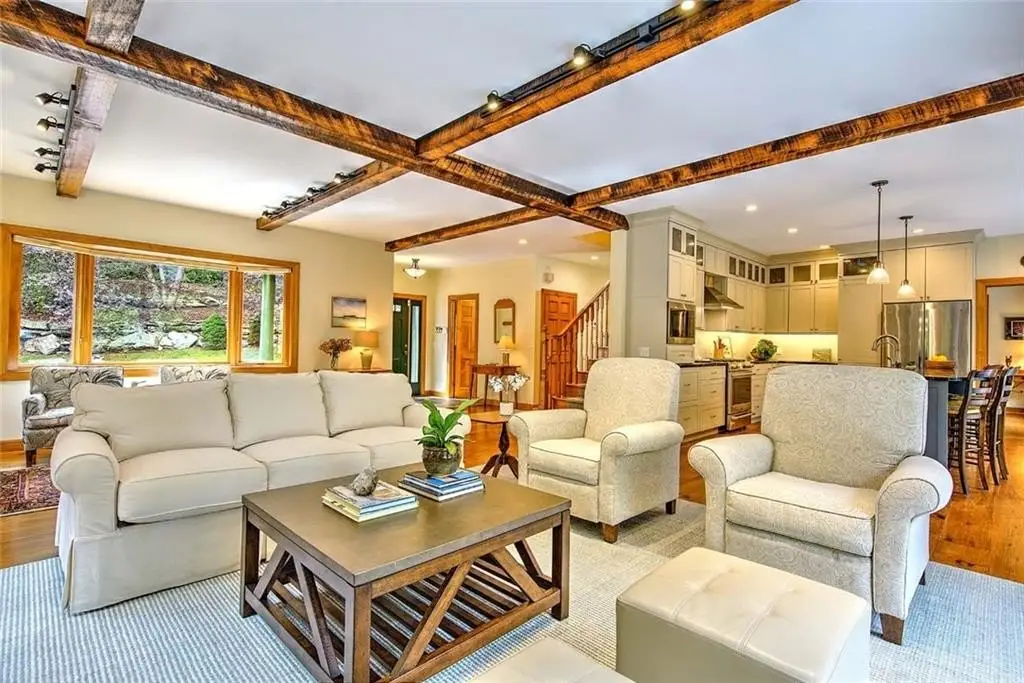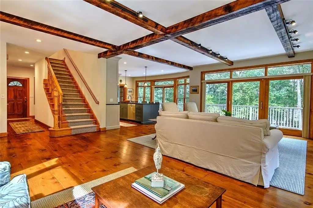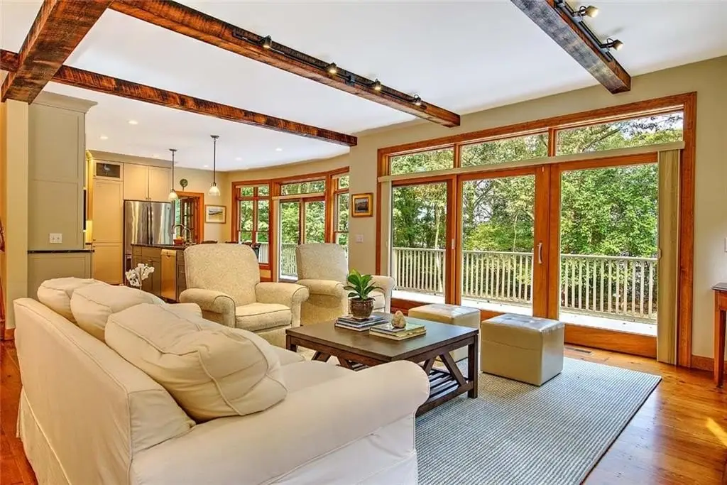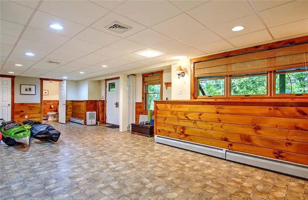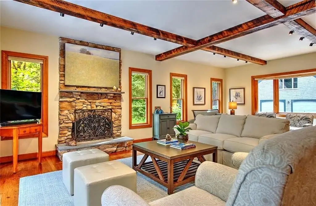 Adirondack inspired waterfront home on Narrow River in Saunderstown. Incredibly peaceful and serene spot nestled amid meandering stone walls and nature inspired landscape on 2.63 private acres. Wander down the wide path to enjoy a very special alcove beach at the waterfront. Have a daily swim in the refreshing water or have a late afternoon kayak trip around the river. The newly cedar shingled Colonial was built in 2000 but rebuilt in 2019. The light filled living room has a wood burning stone fireplace, lovely wood floors and a beamed ceiling. The kitchen has beautiful honed black marble counters, tile backsplash and stainless steel appliances. The center island has river views over the expansive waterside deck and private back yard. There is a first floor office off of the kitchen and a huge laundry room and half bath. Upstairs encompasses a large primary ensuite bedroom with a stunning bath with soaking rub, double sinks and a glassed in tiled shower. There are three more generous sized bedrooms and another full bath to complete the second floor. The walk out lower level has a finished media room and another full bath and utility room. The three car garage has a finished 864 sq. ft. loft with a mini split for heat and AC. The house has a whole house generator, and AC. Centrally located in the state, Saunderstown is a 1.5 hour drive from Boston and an easy 3 hour train ride from NYC. The famed South County beaches are just a short 5 minute drive down Route 1.