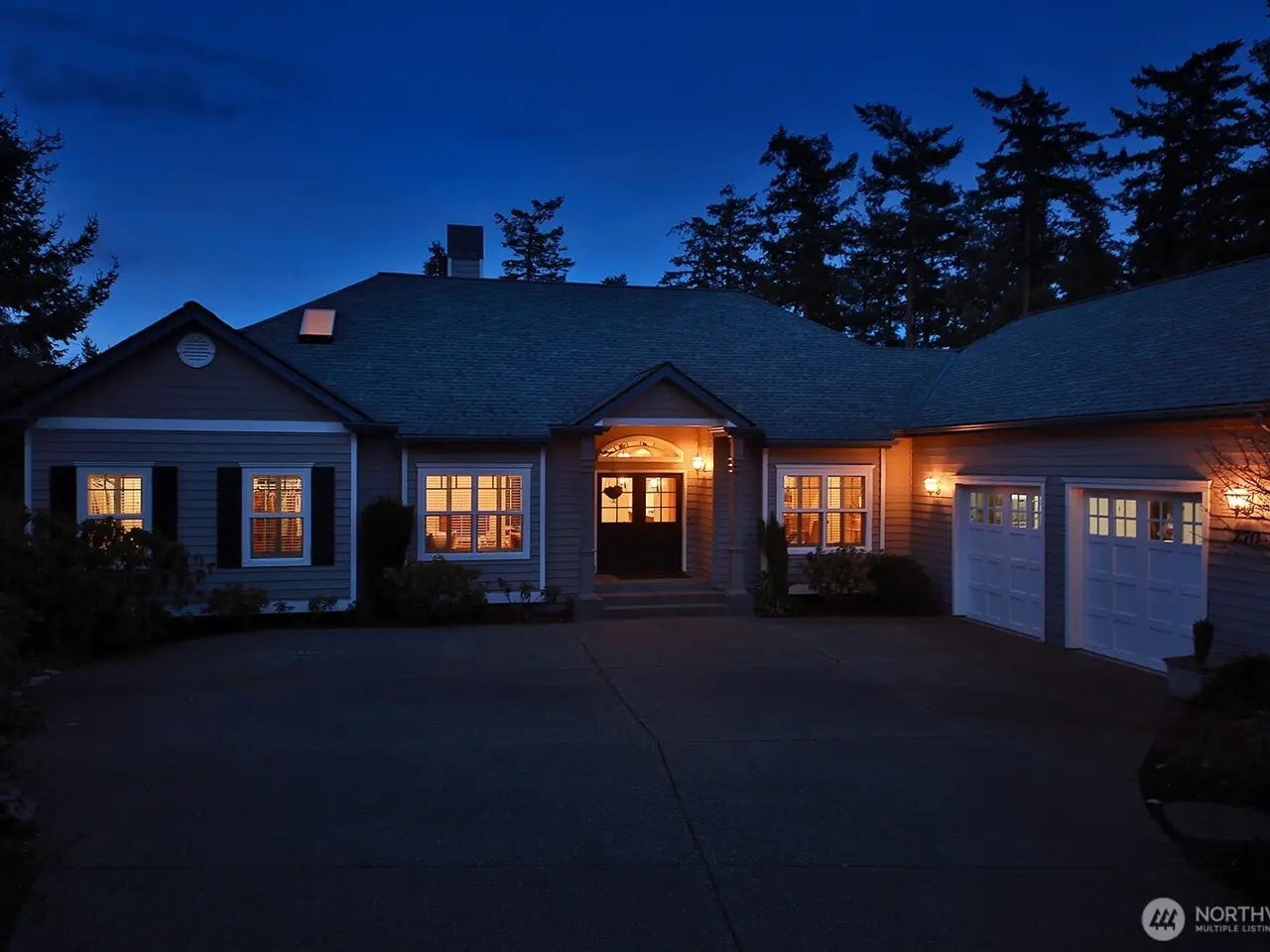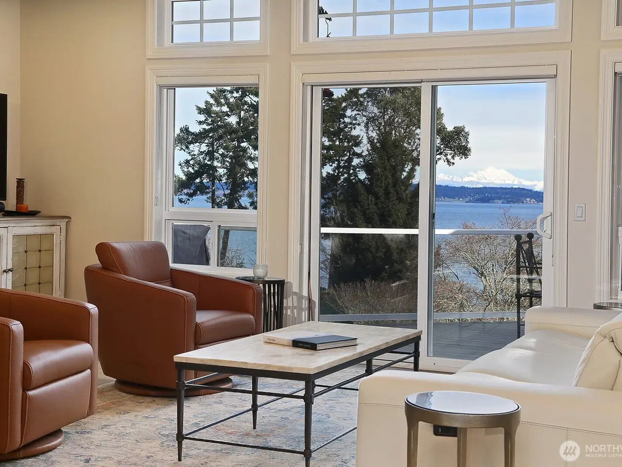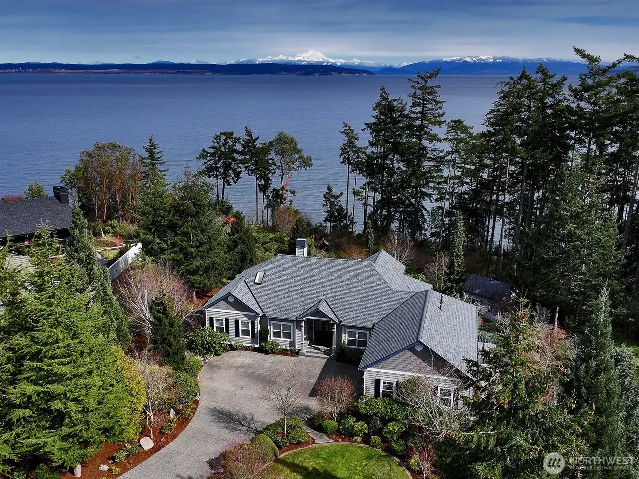 Experience the perfect blend of luxury and serenity in this stunning retreat. Greet each day with breathtaking views of lush gardens, sparkling water, and Mt. Baker's glow. Wander through vibrant blooms, fruit trees, an artist's studio, a totem pole, and inviting outdoor spaces. Expansive windows fill the open-concept living area with light, highlighting a double-sided travertine fireplace, custom cabinetry, and high-end appliances. The main floor was reimagined in 2023 by architect Stig Carlson and designer Lezlie Trujillo. New roof, exterior paint (2024), whole-house generator, Starlink, and a private lower-level apartment add versatility and peace of mind..